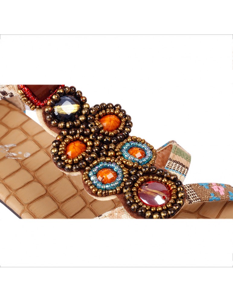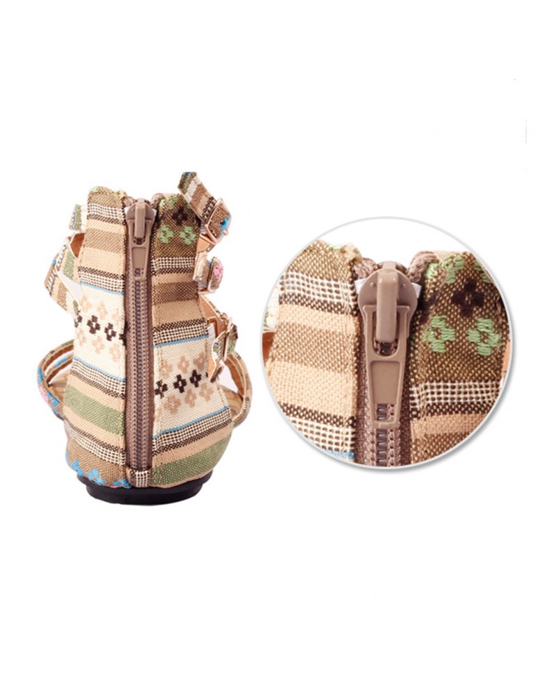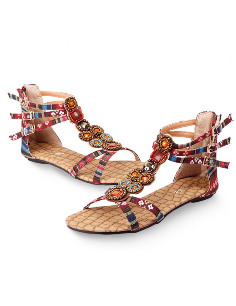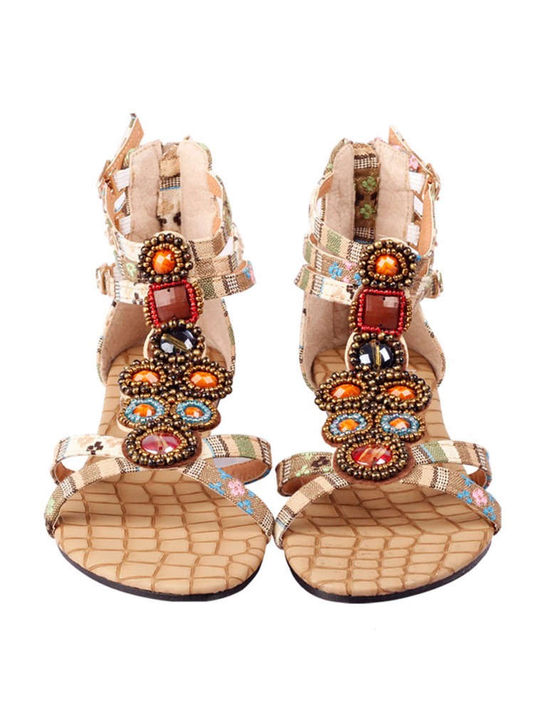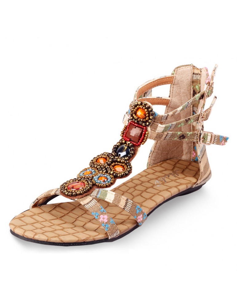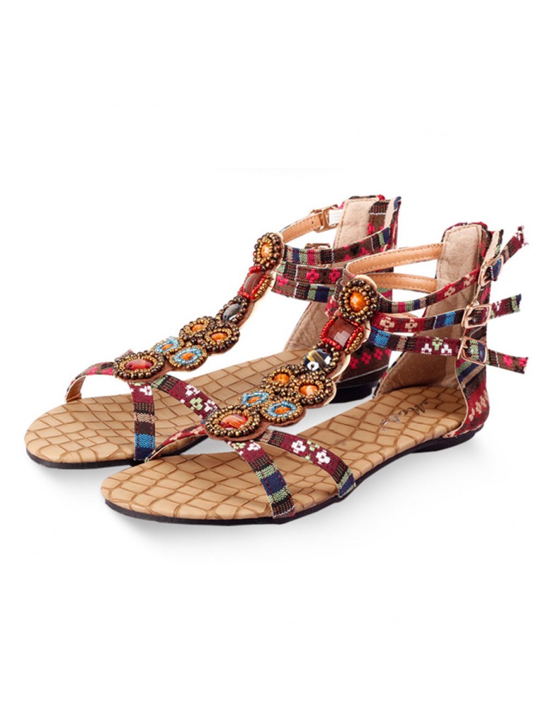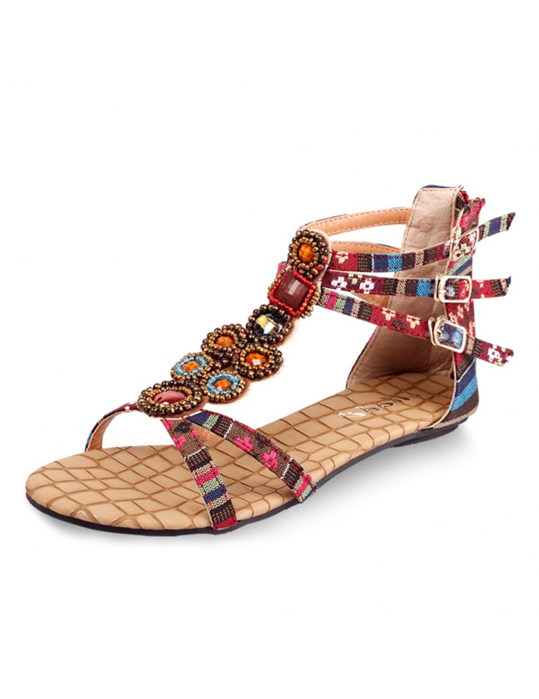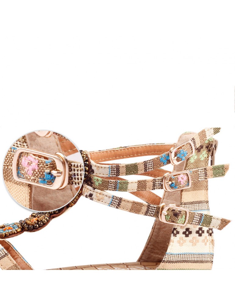 Women Shoes Bohemia Flat Bead Zipper Canvas Sandals
