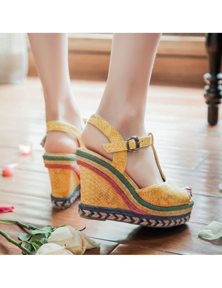 Extra Size Colorful Peep Toe Lady Platform Sandals
