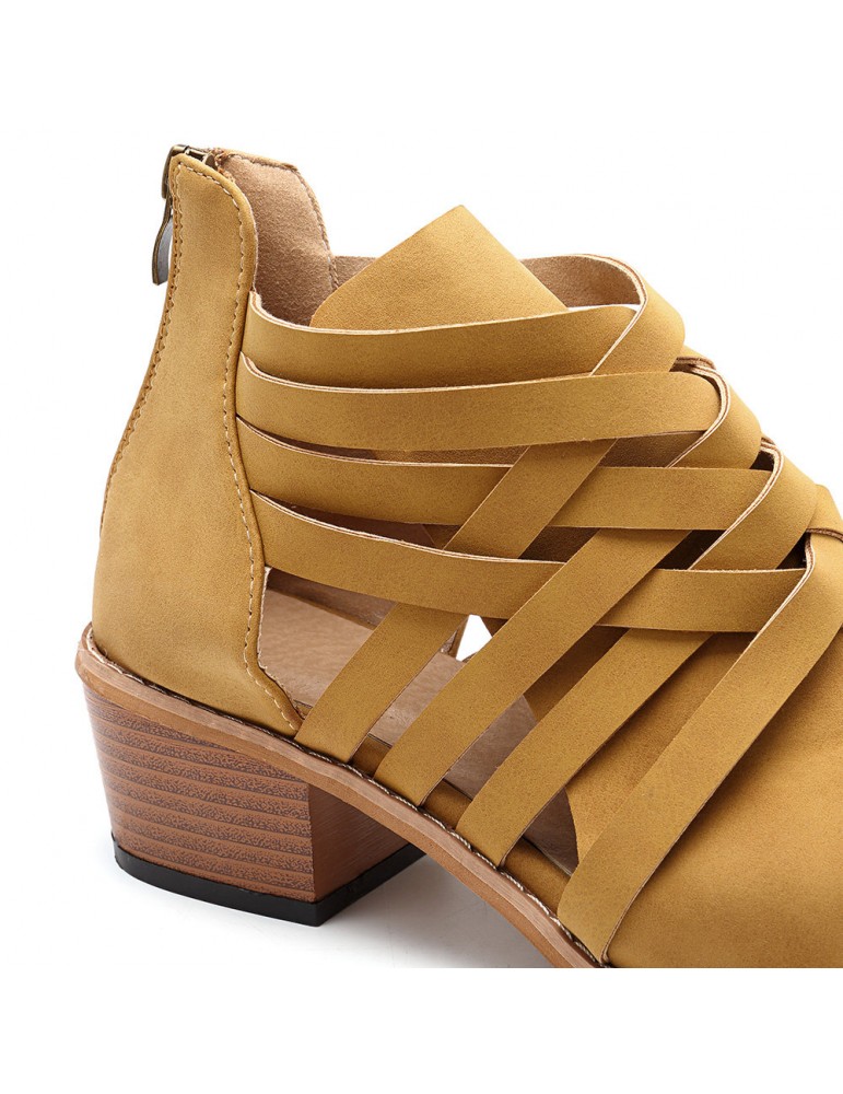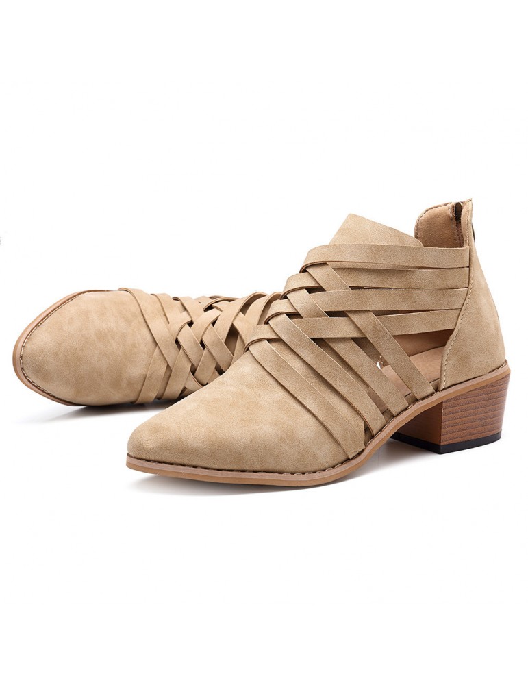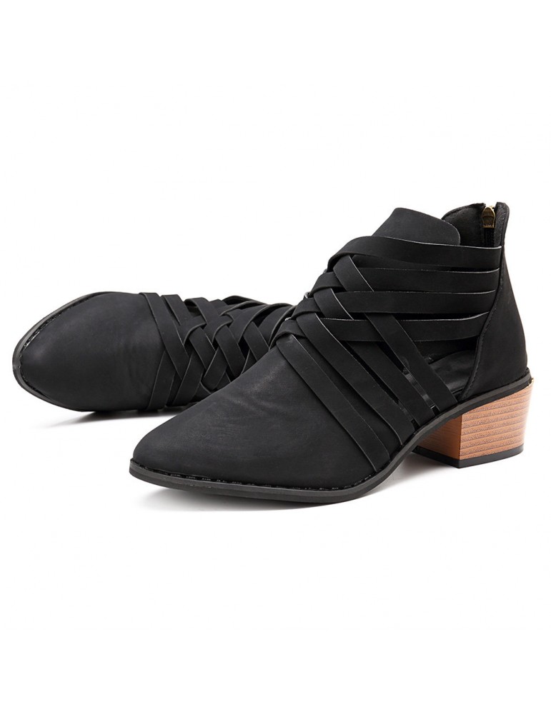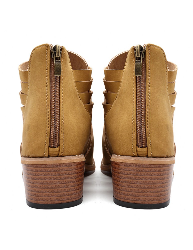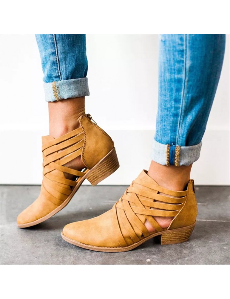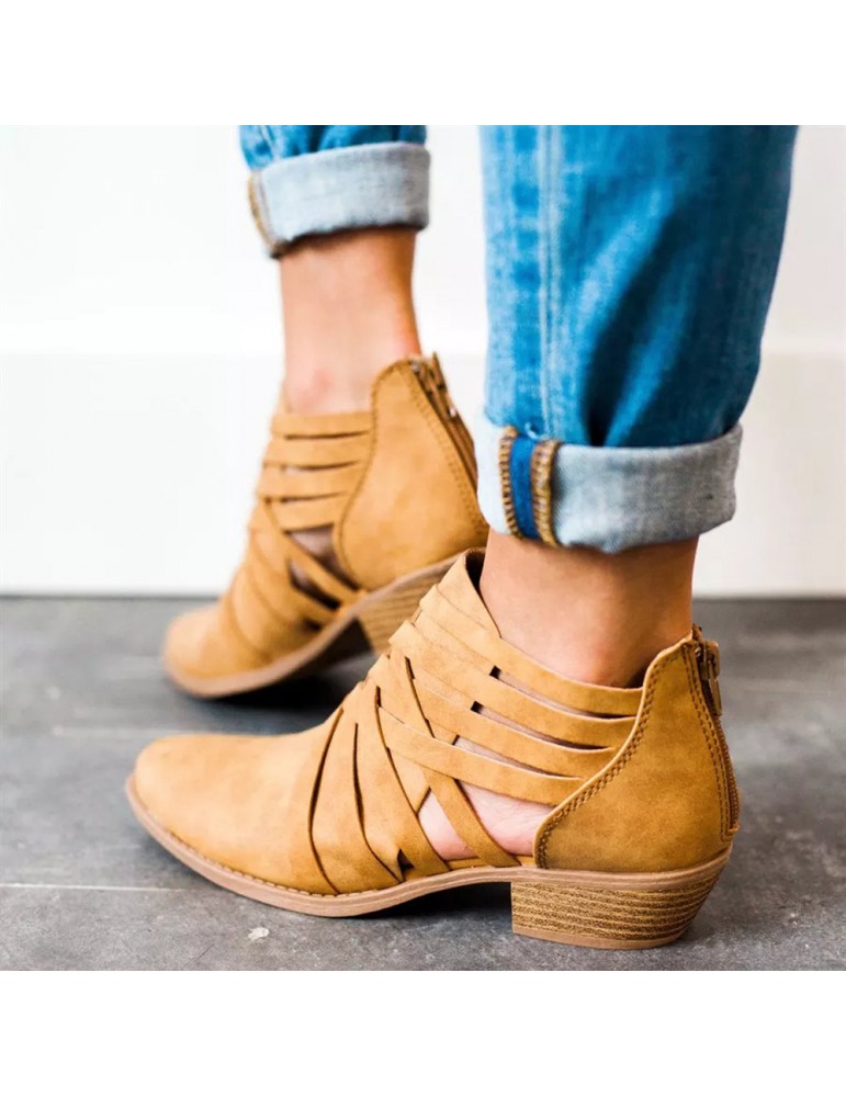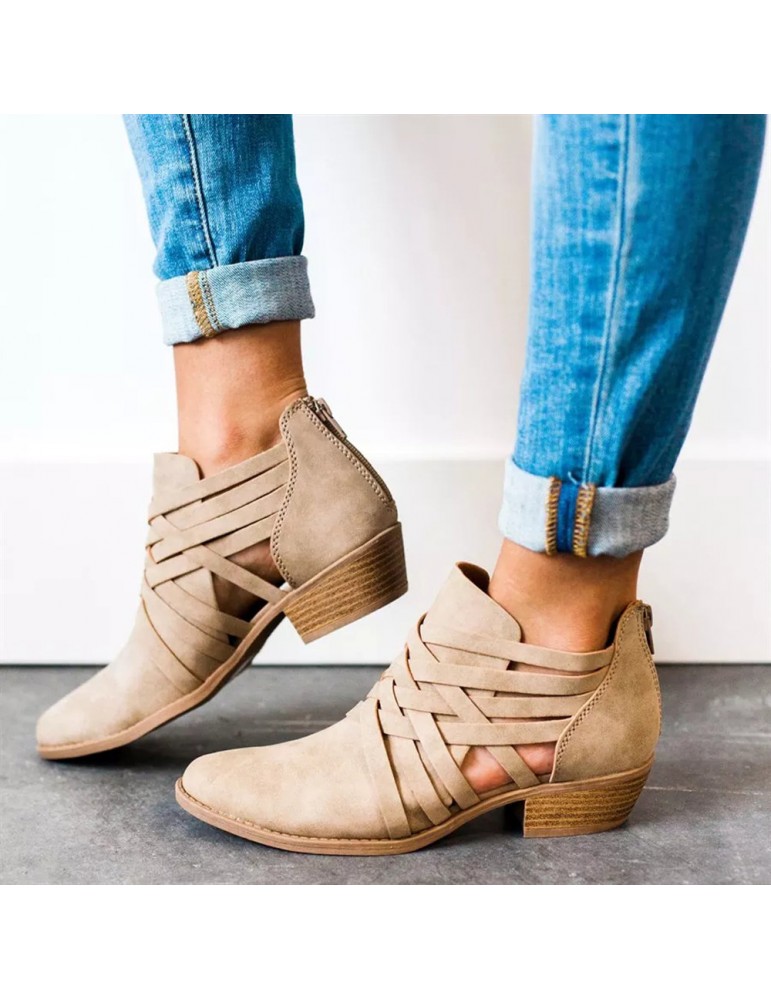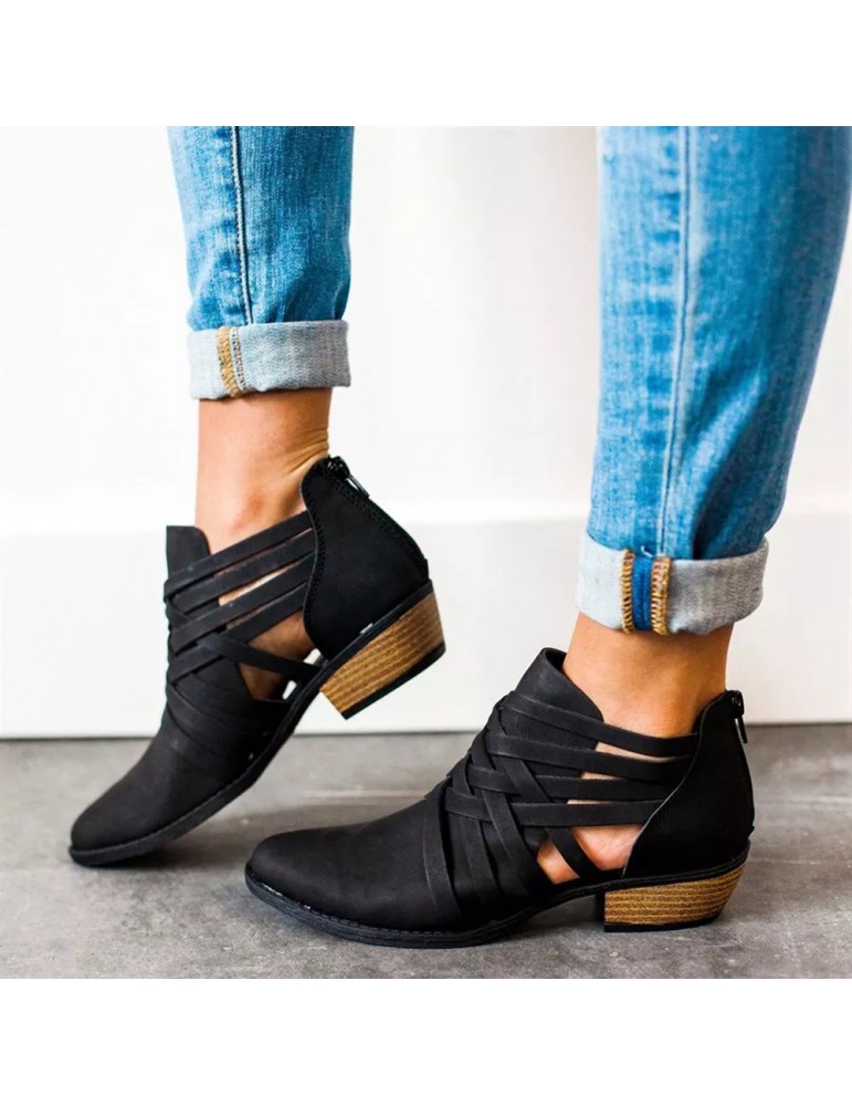Plus Size Women Comfy Hollow Zipper Thick Heels Footwear Ankle Boots