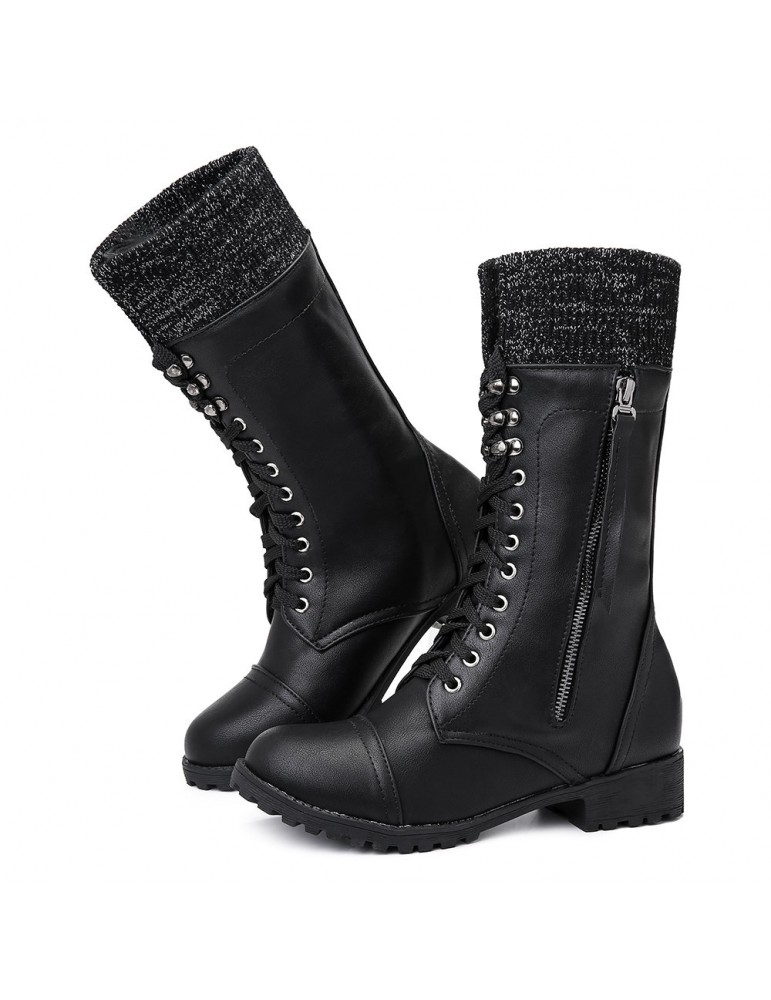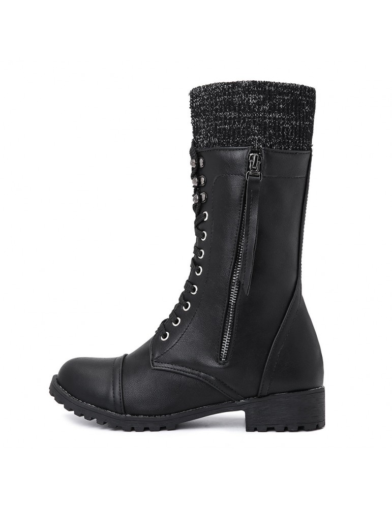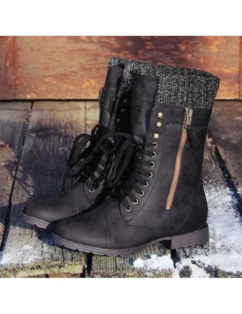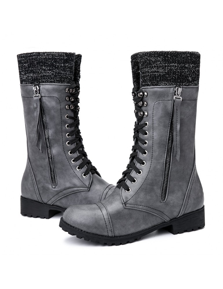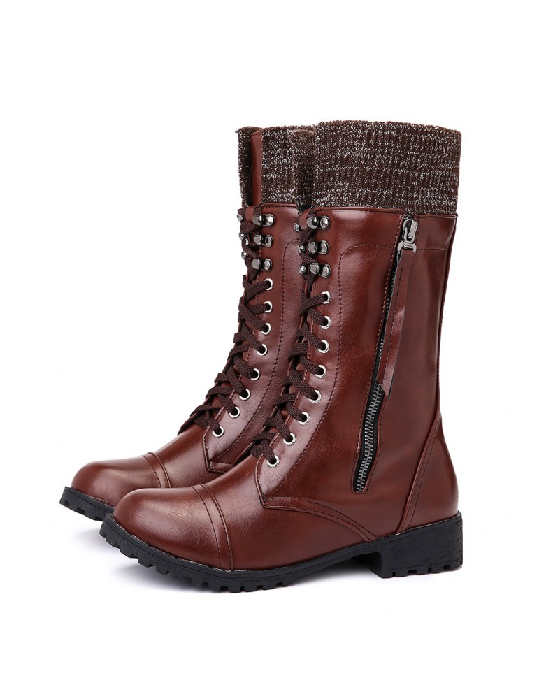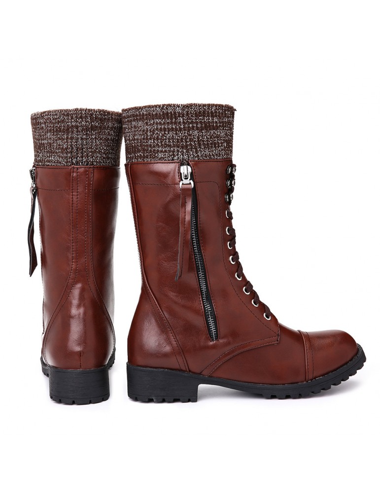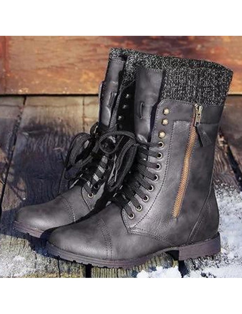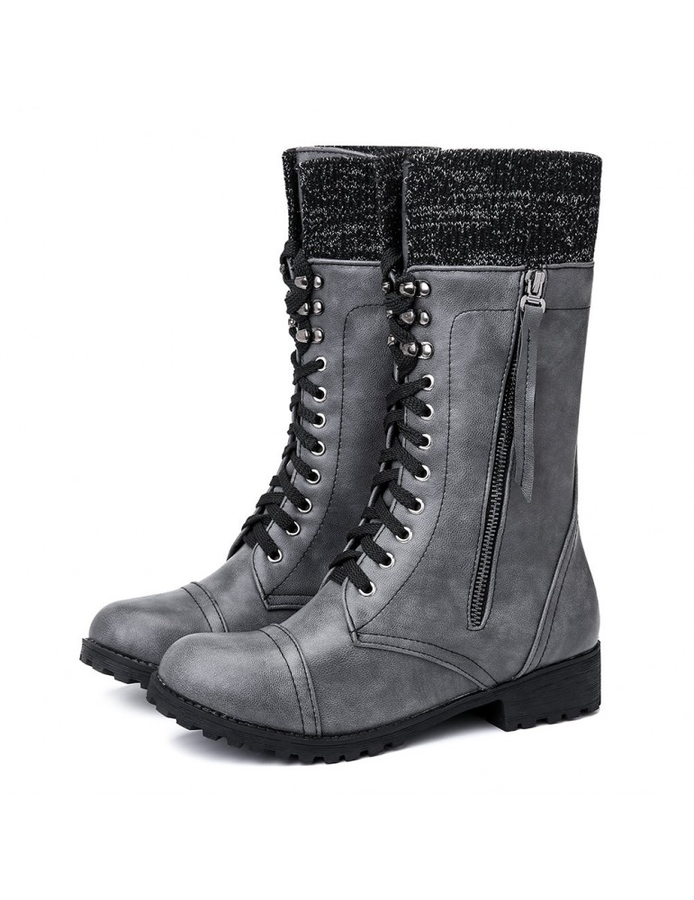 Vintage Wool Knitting Detailed Lace Up Zipper Boots