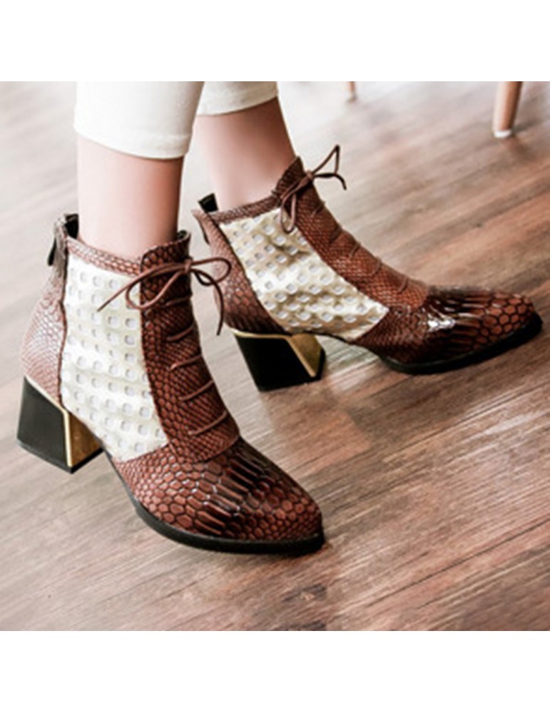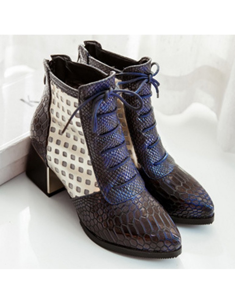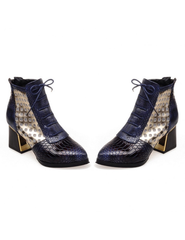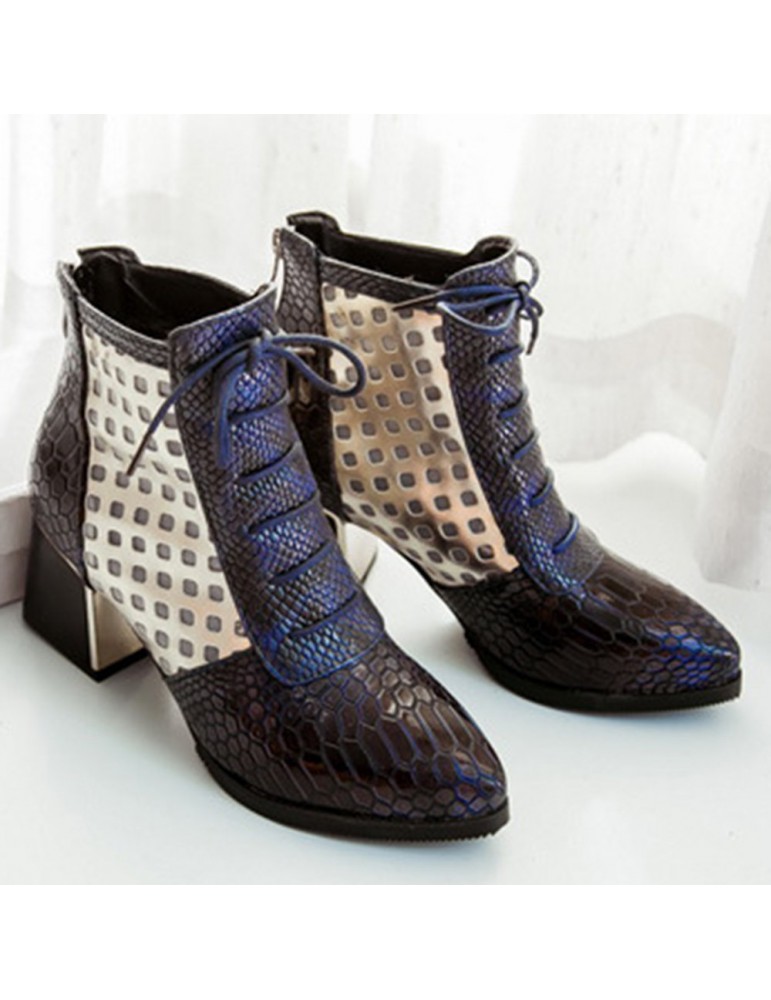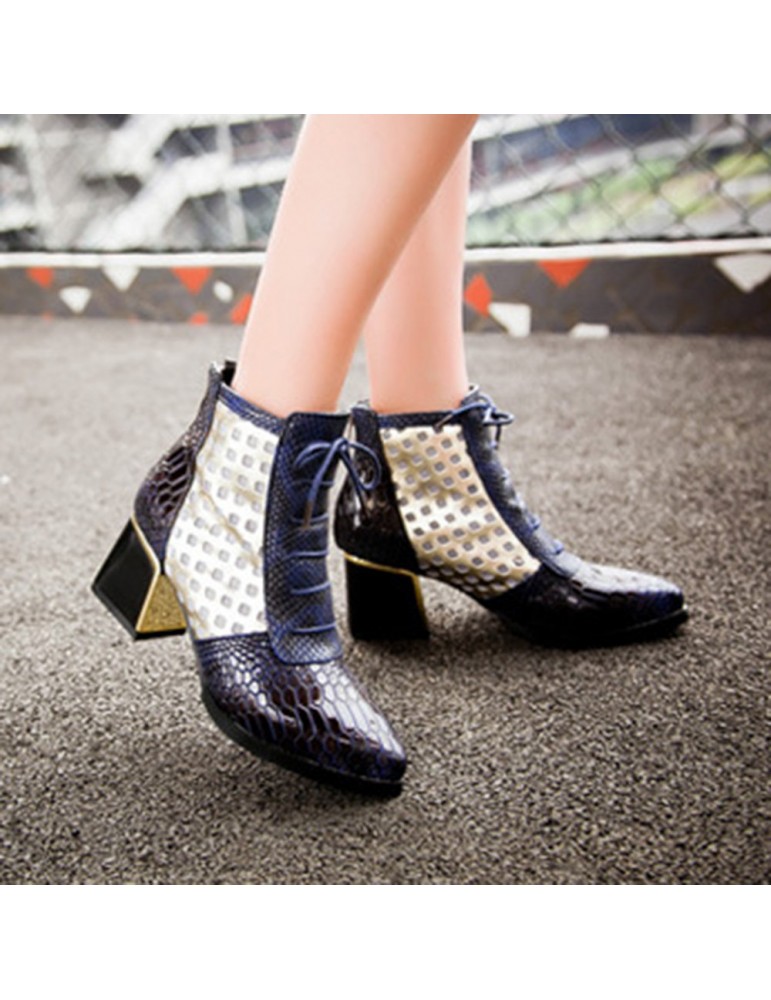 Snakeskin Patent Leather Hollow Square Heel Boots