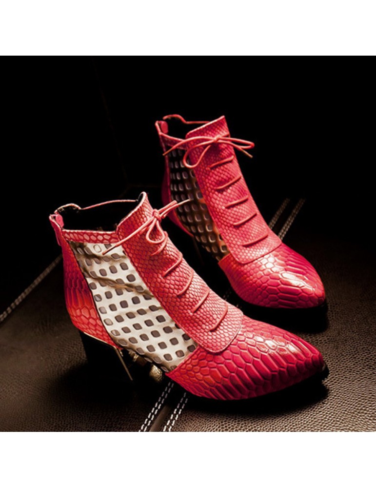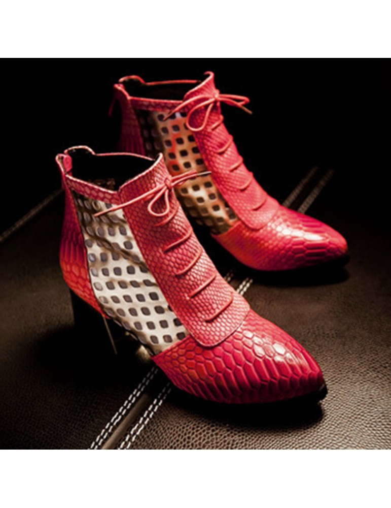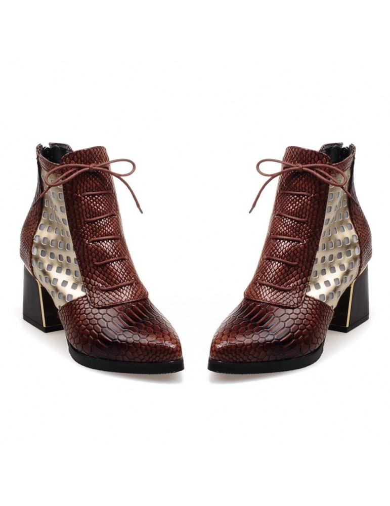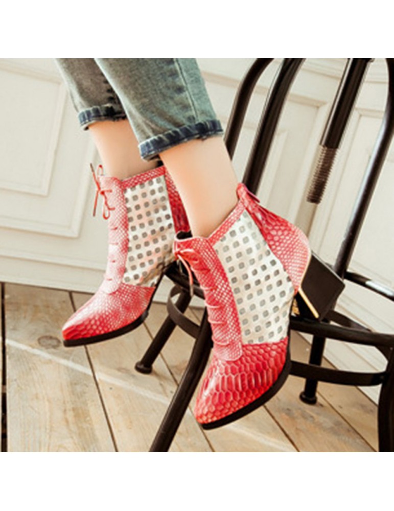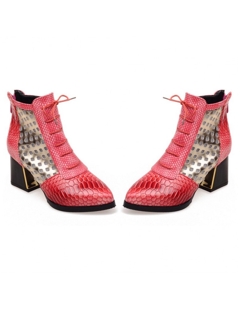 Snakeskin Patent Leather Hollow Square Heel Boots
