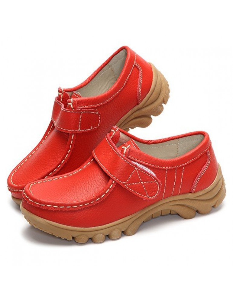 Big Size Hook Loop Casual Leather Flat Sport Soft Comfortable Shoes For Women