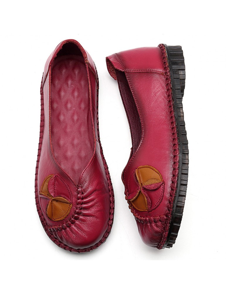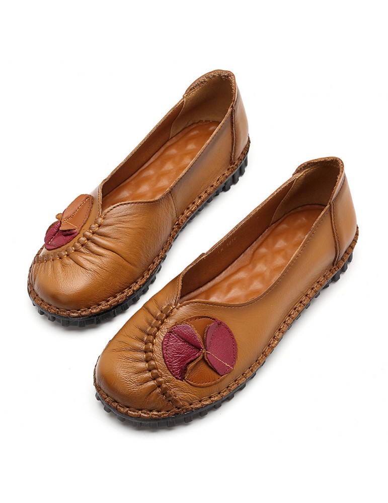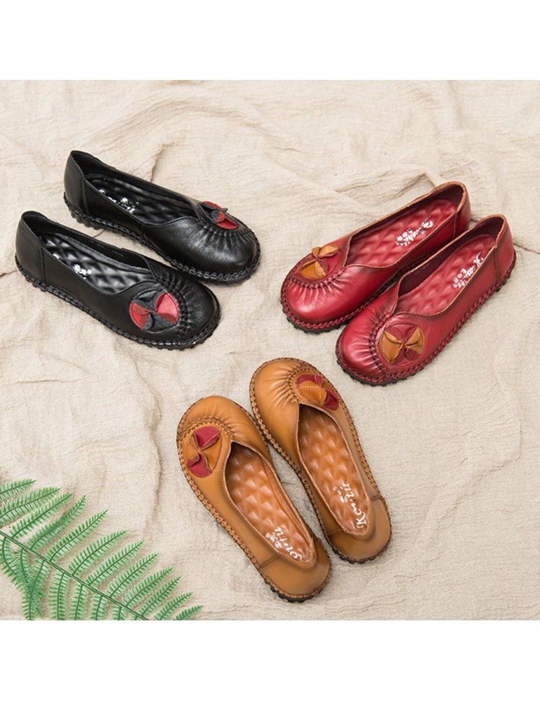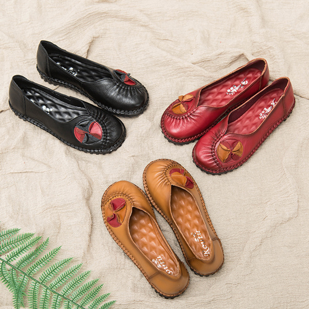 Big Size Women Soft Comfy Genuine Leather Flower Flats Shoes