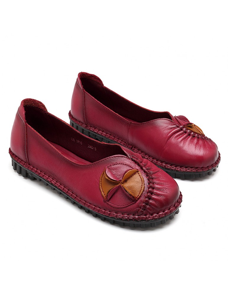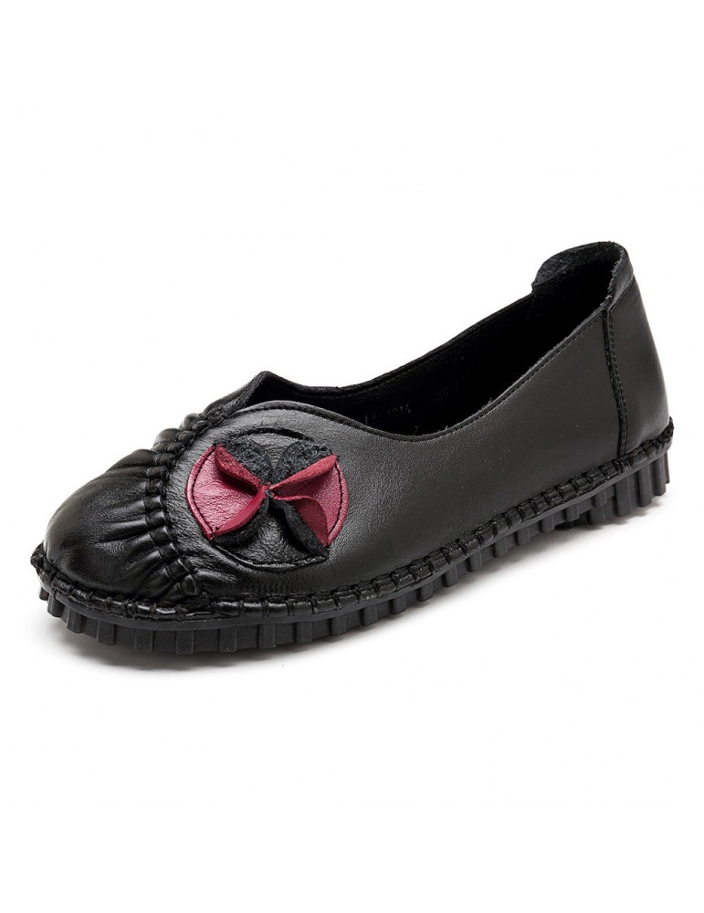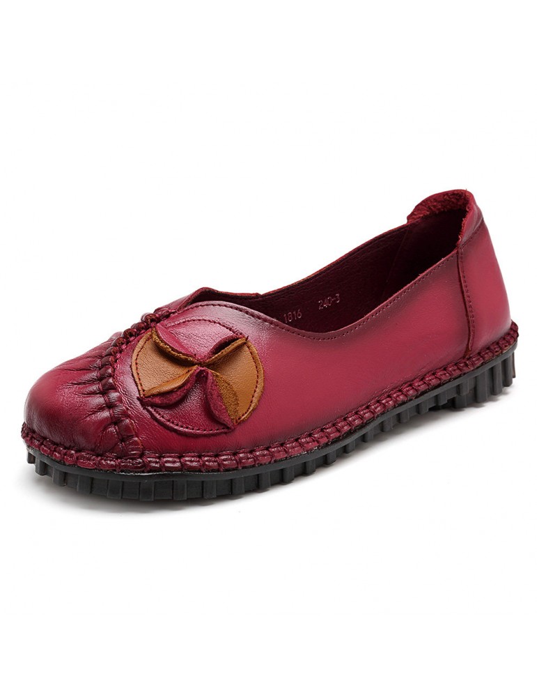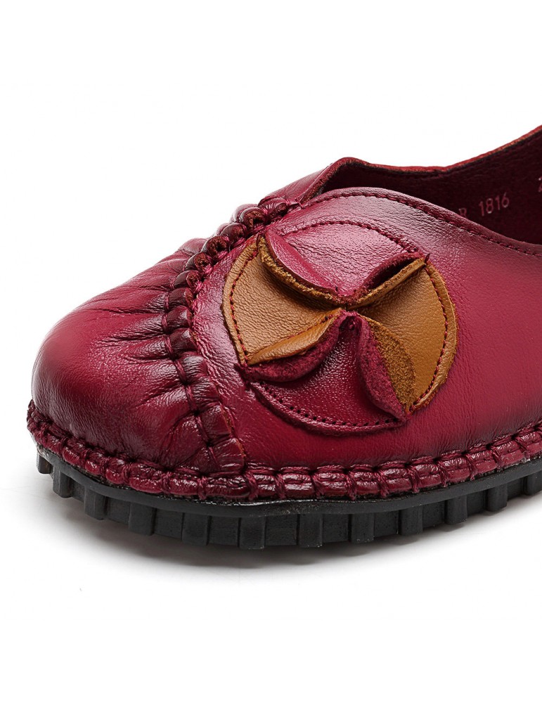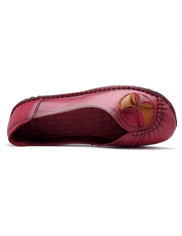 Big Size Women Soft Comfy Genuine Leather Flower Flats Shoes