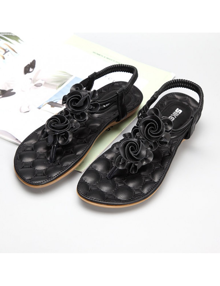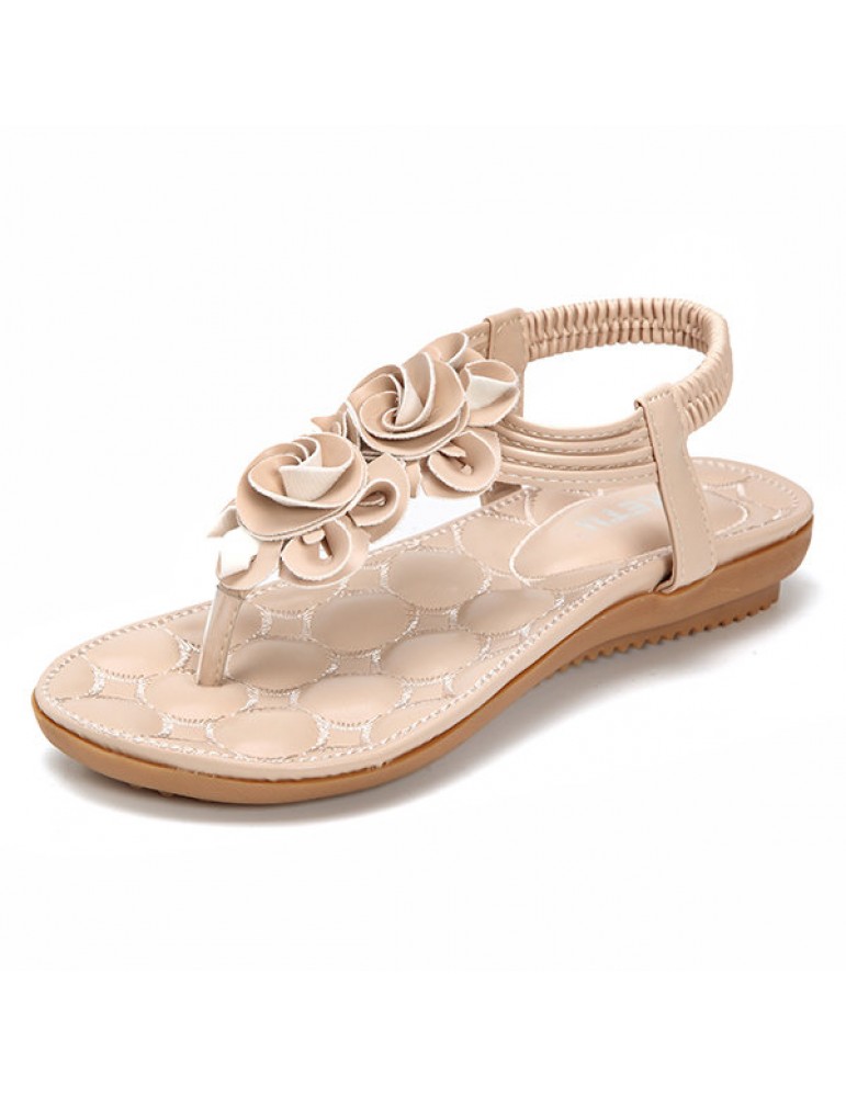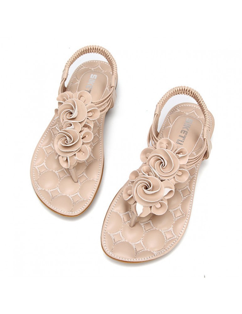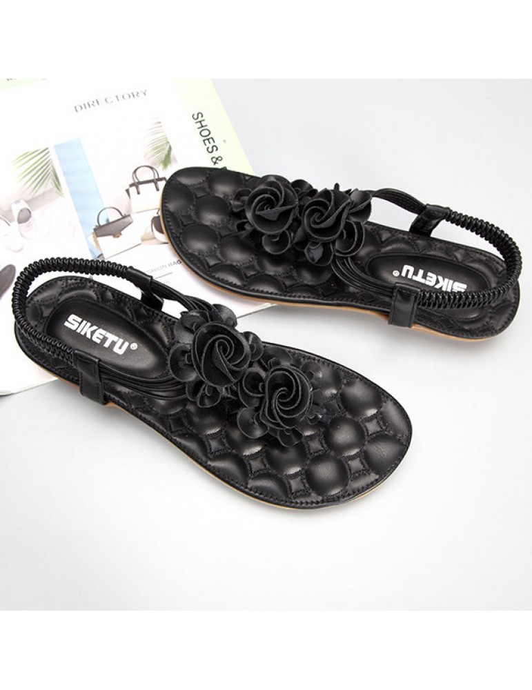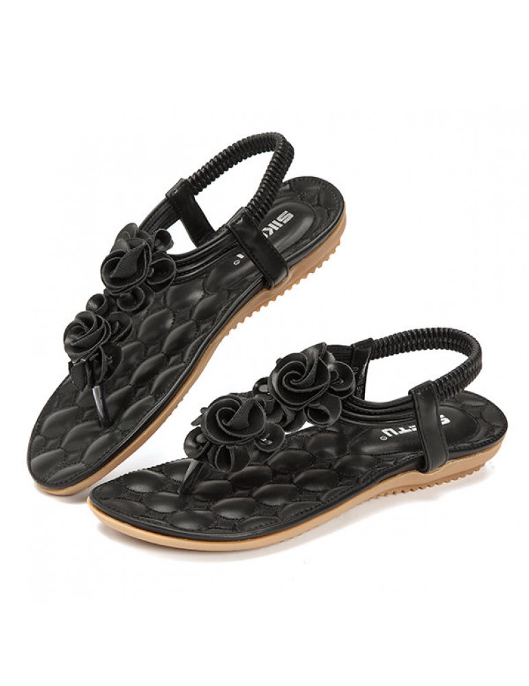 Flower Bohemia Clip Toe Elastic Flat Sandals For Women
