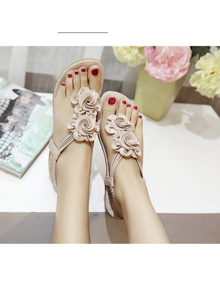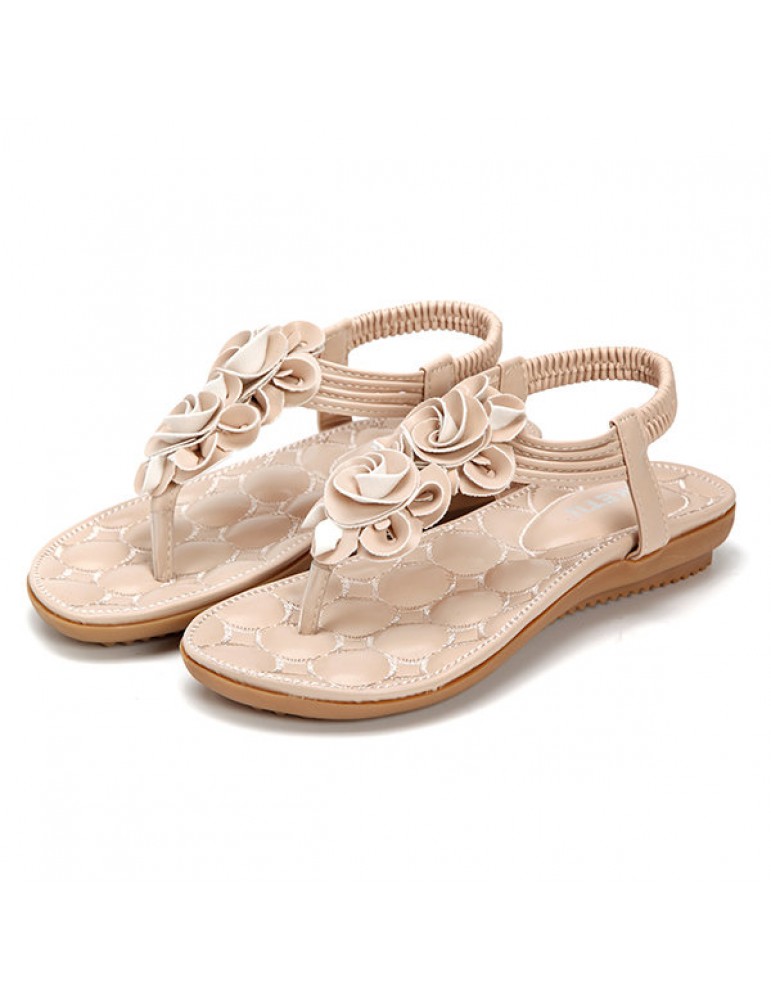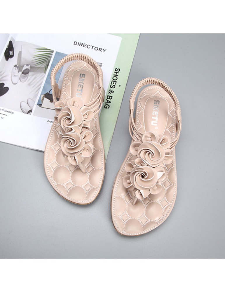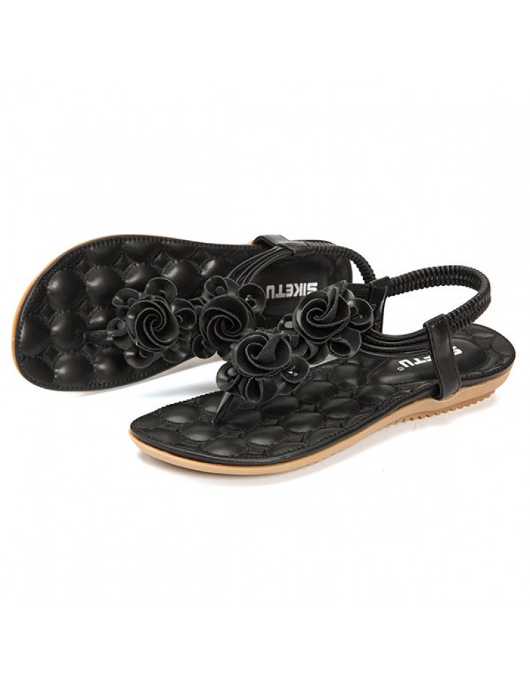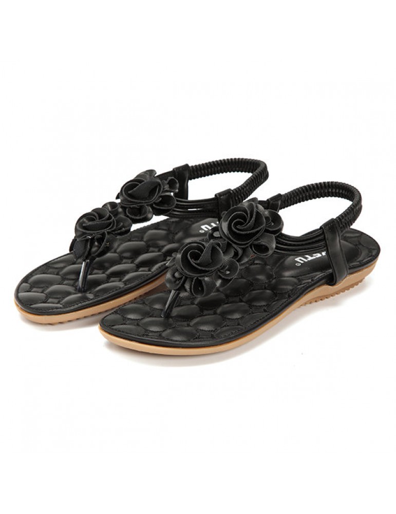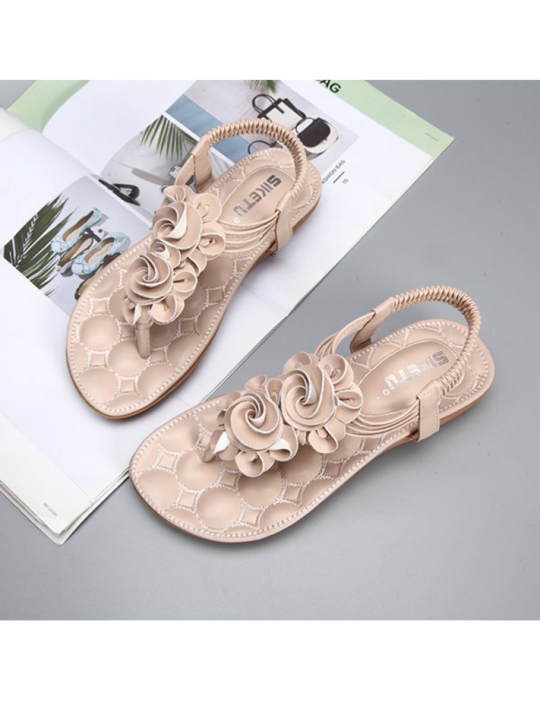 Flower Bohemia Clip Toe Elastic Flat Sandals For Women