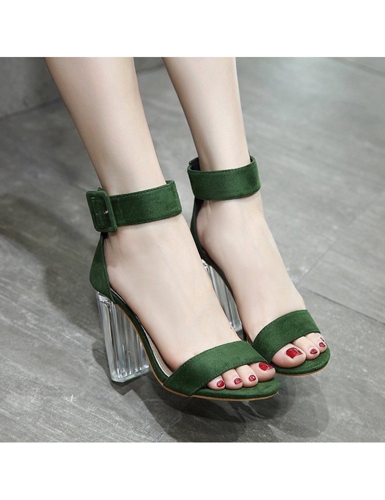 Buckle Transparent Chunky Block Heel Peep Toe Sandals
