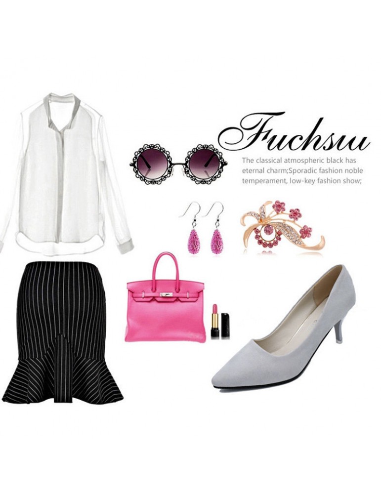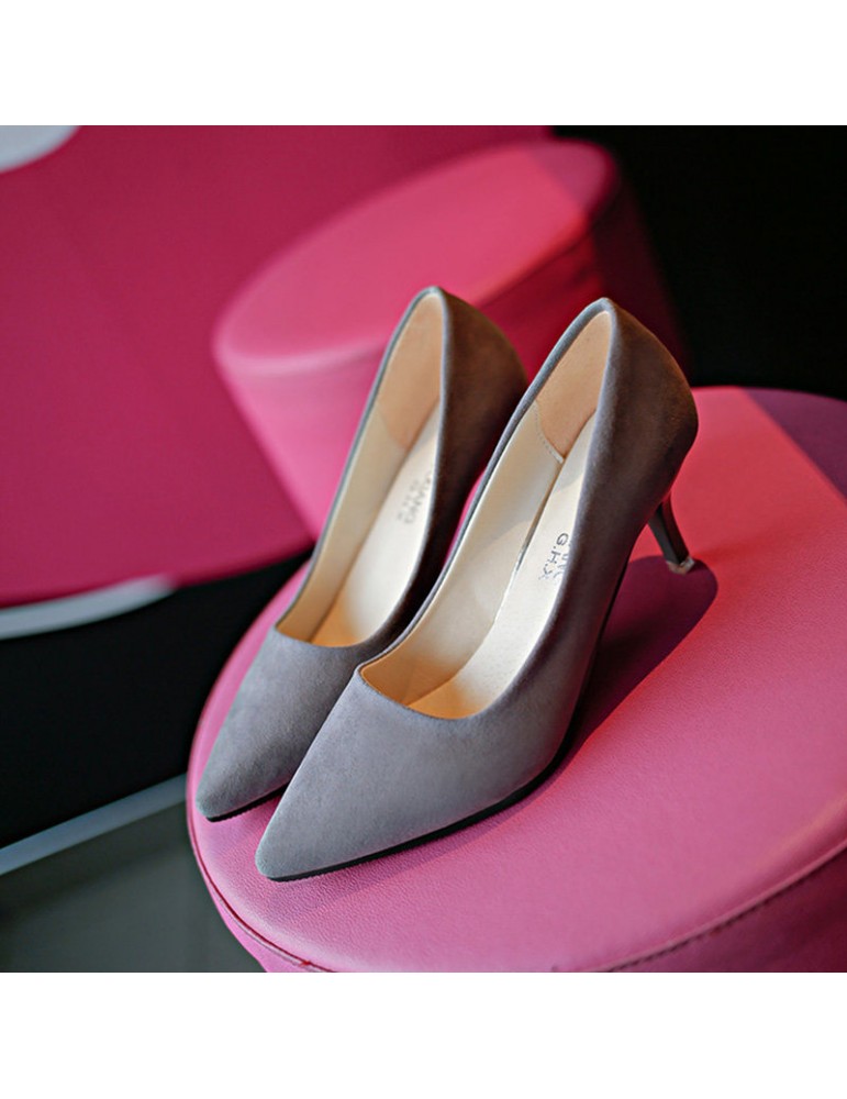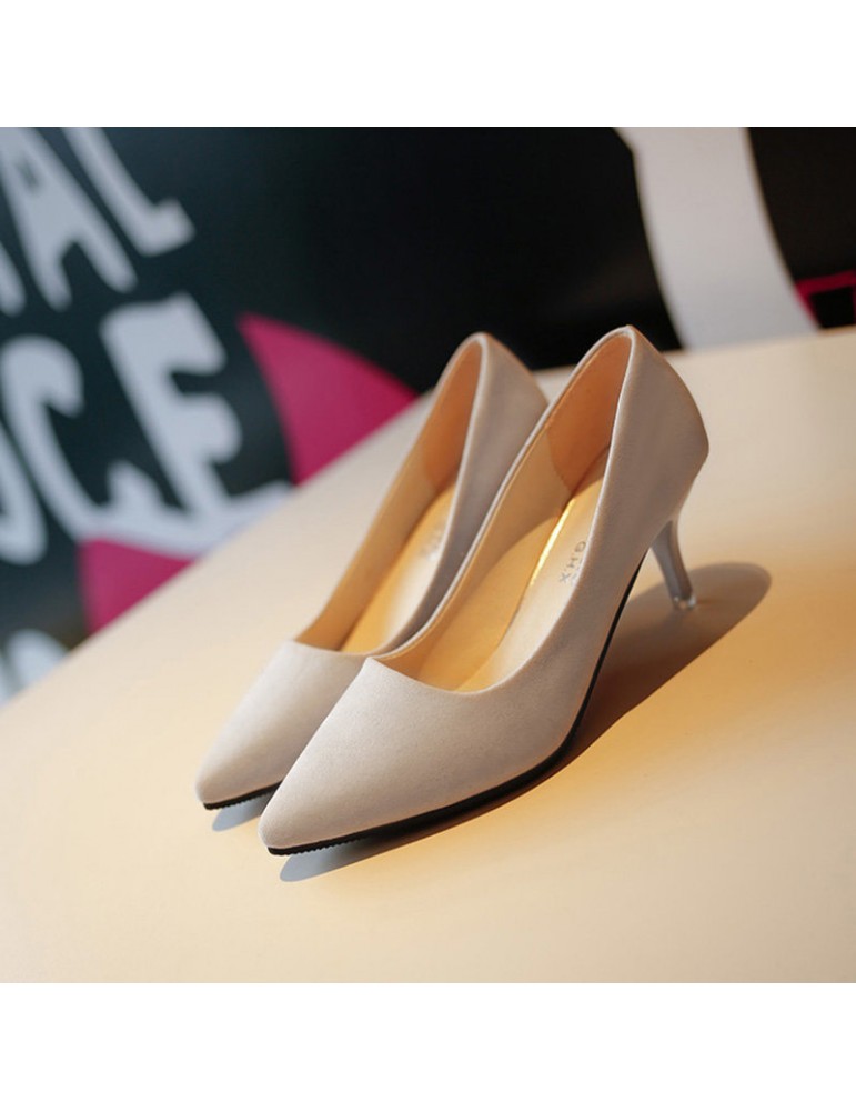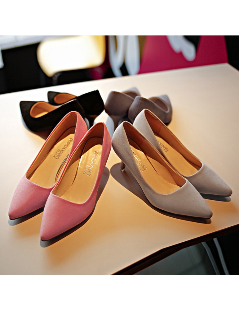 Pointed Toe Pure Color Slip On Kitten Heel Pumps