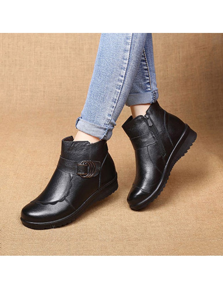 Black Warm Fur Lining Casual Winter Boots
