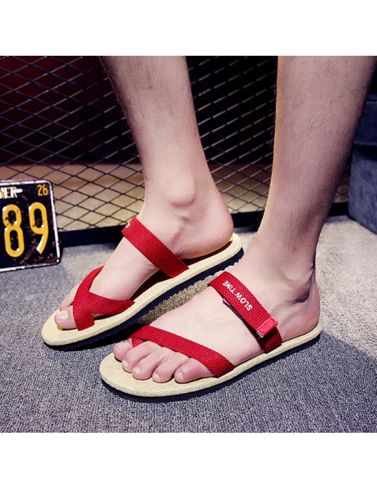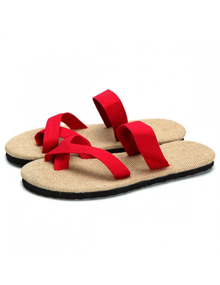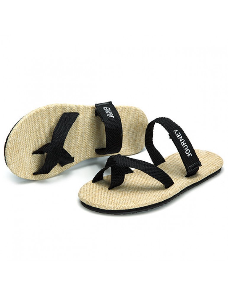 Big Size Flax Hook Loop Clip Toe Beach Casual Sandals