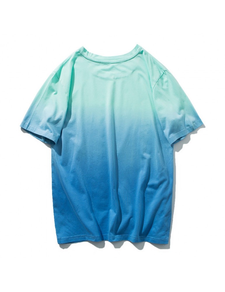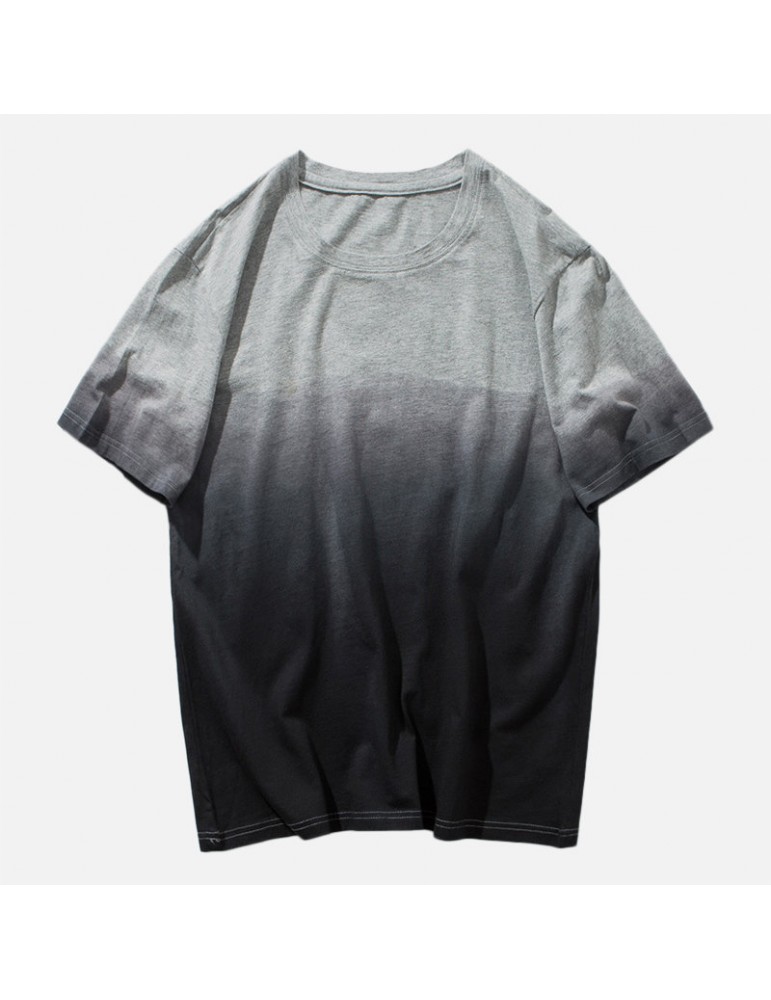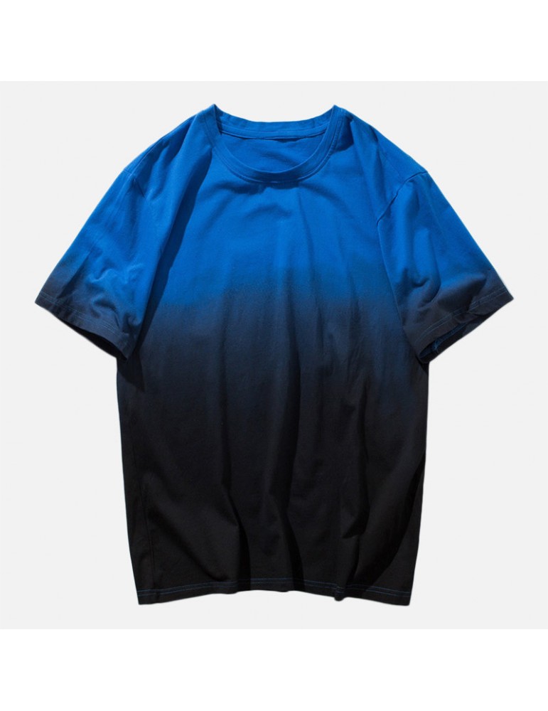 Mens Gradient Ramp Colour O neck Short Sleeve Loose Casual T shirt
