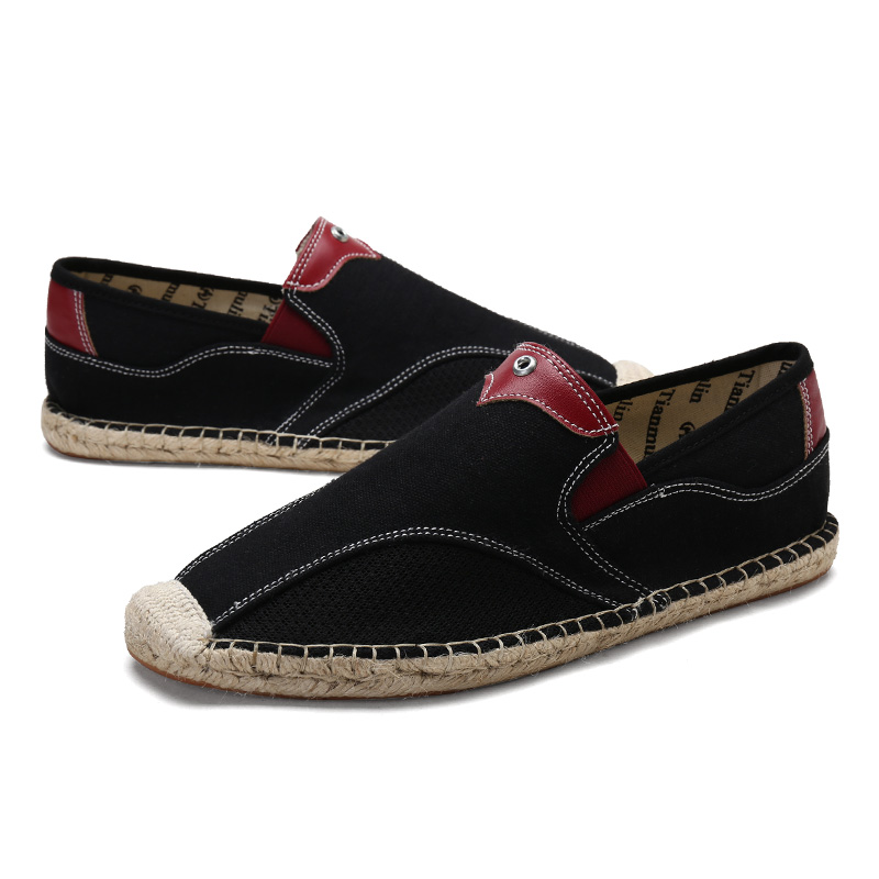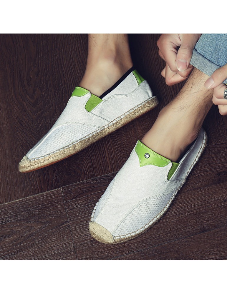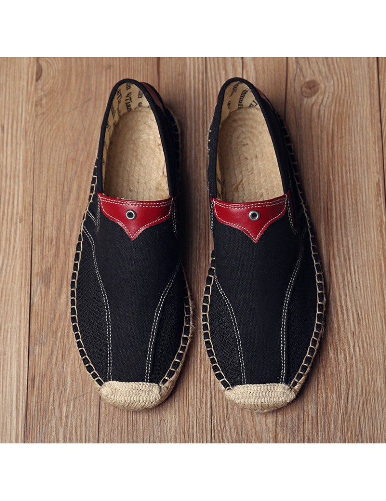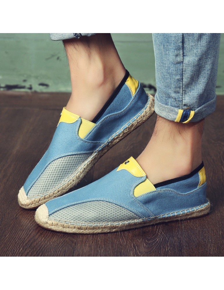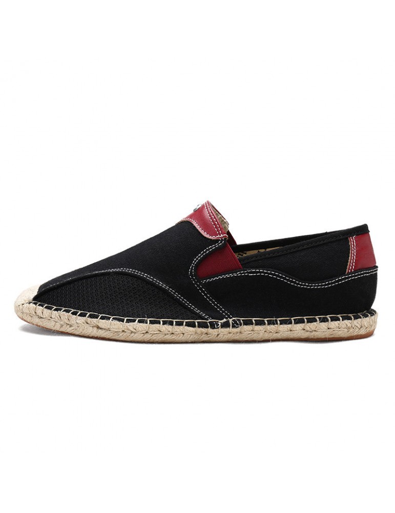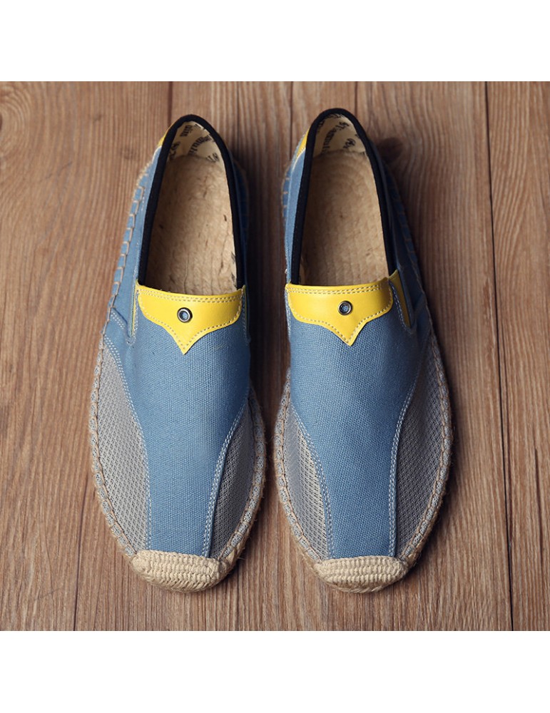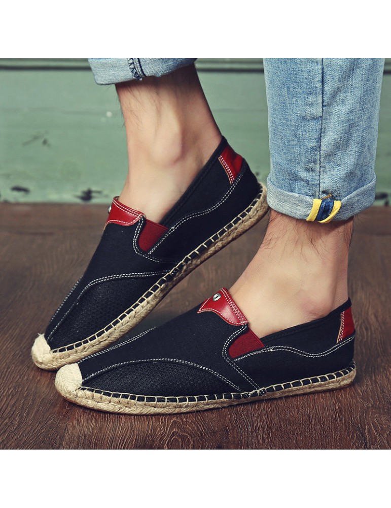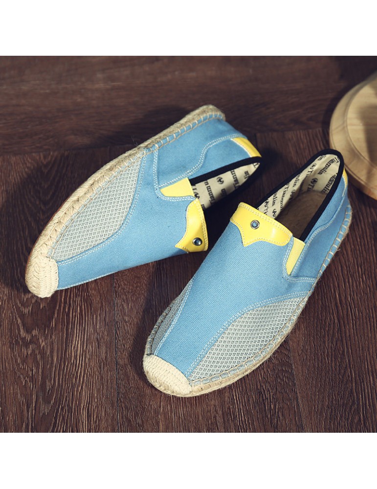 Men Linen Color Blocking Flat Sli On Breathable Espadrilles