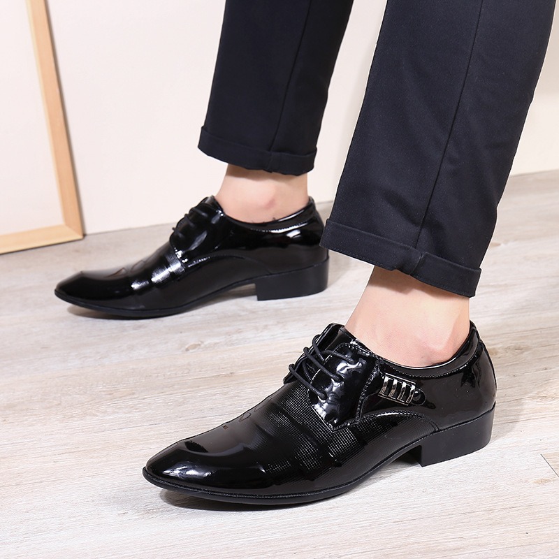 Men Stylish Leather Slip Resistant Metal Decoration Formal Dress Shoes