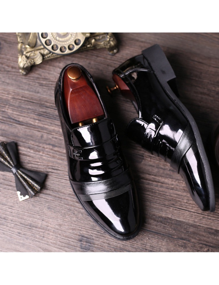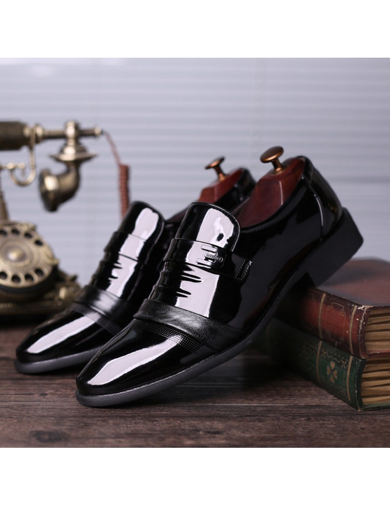 Men Pure Color Splicing Slip On Casual Business Formal Shoes