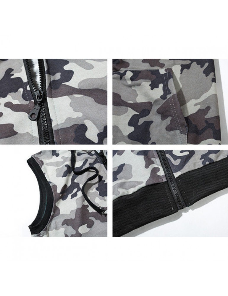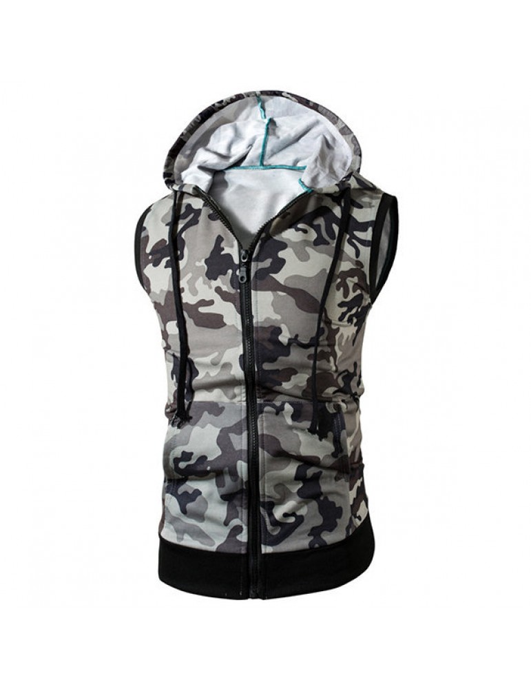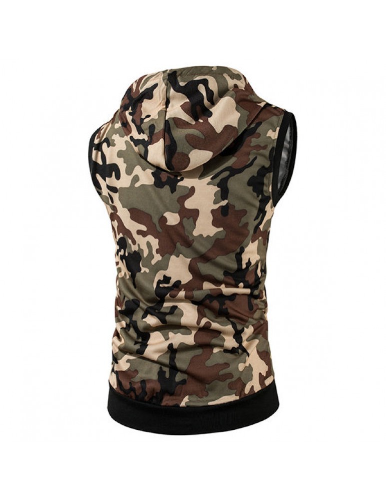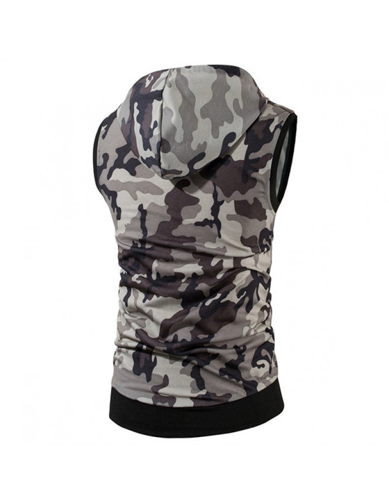 Mens Summer Camo Printed Casual Tank Tops Stylish Sleeveless Hooded Vest