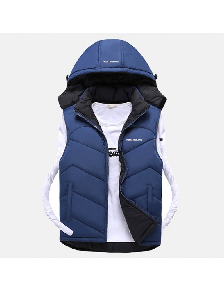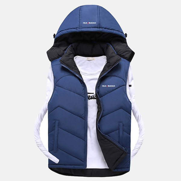 Outdoor Down Padded Reversible Detachable Hooded Sport Coat Vest for Men