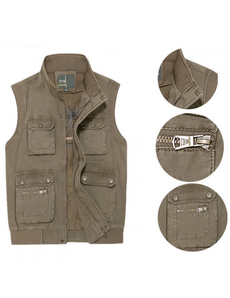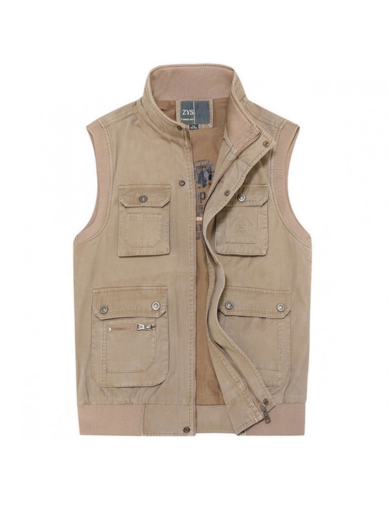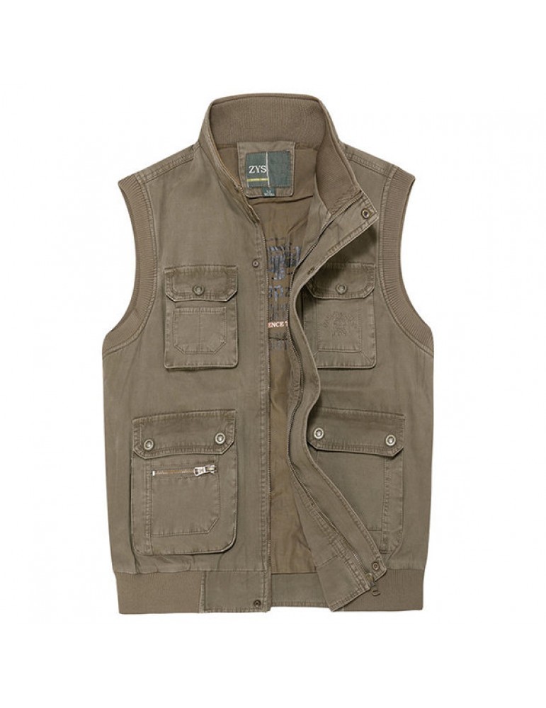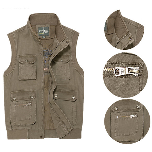 Plus Size Outdoor Casual Multi-Pocket Fishing Photographic Stand Collar Waistcoat for Men