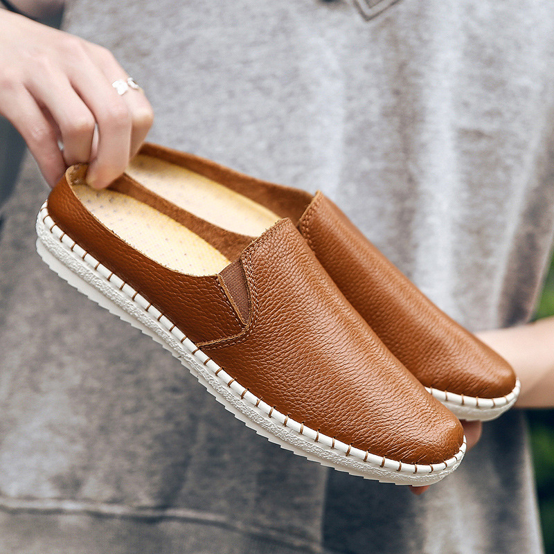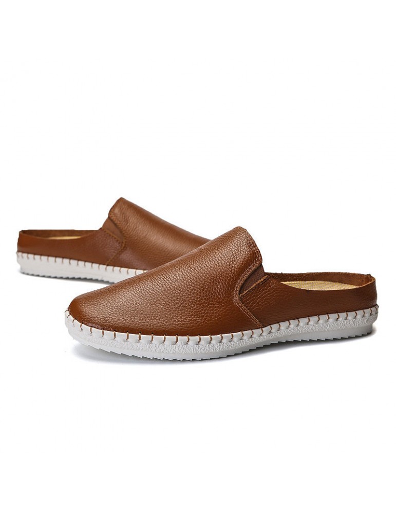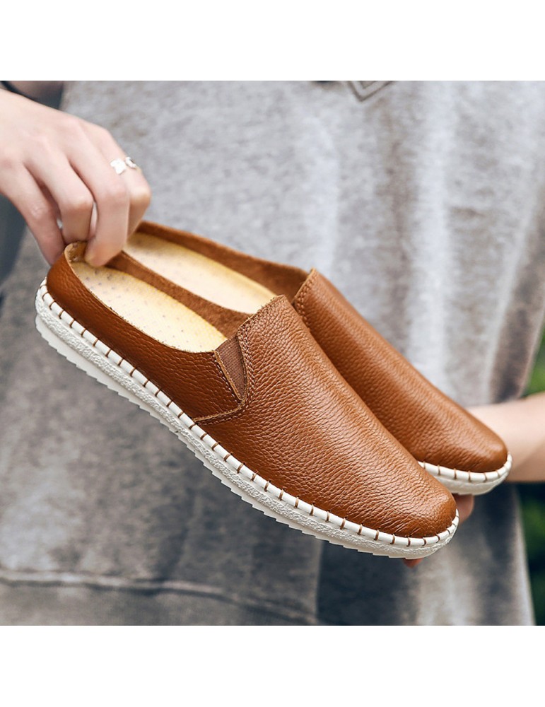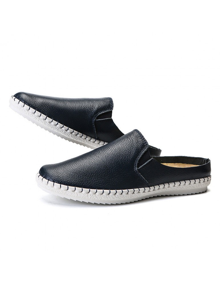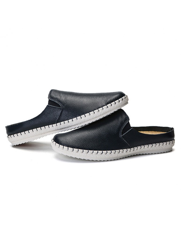 Men Hand Stitching Genuine Cow Leather Comfy Soft Backless Loafers
