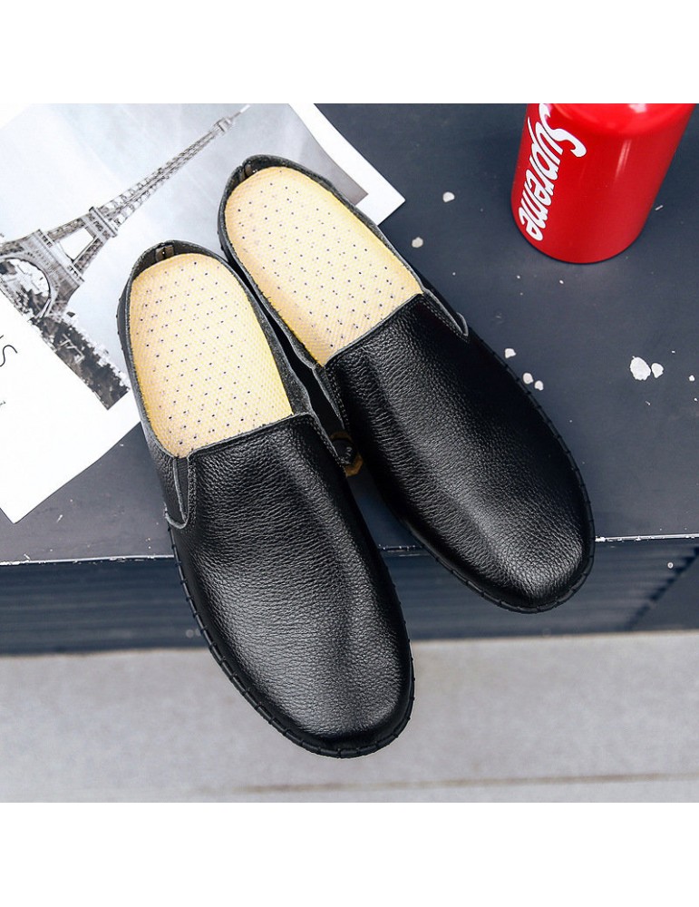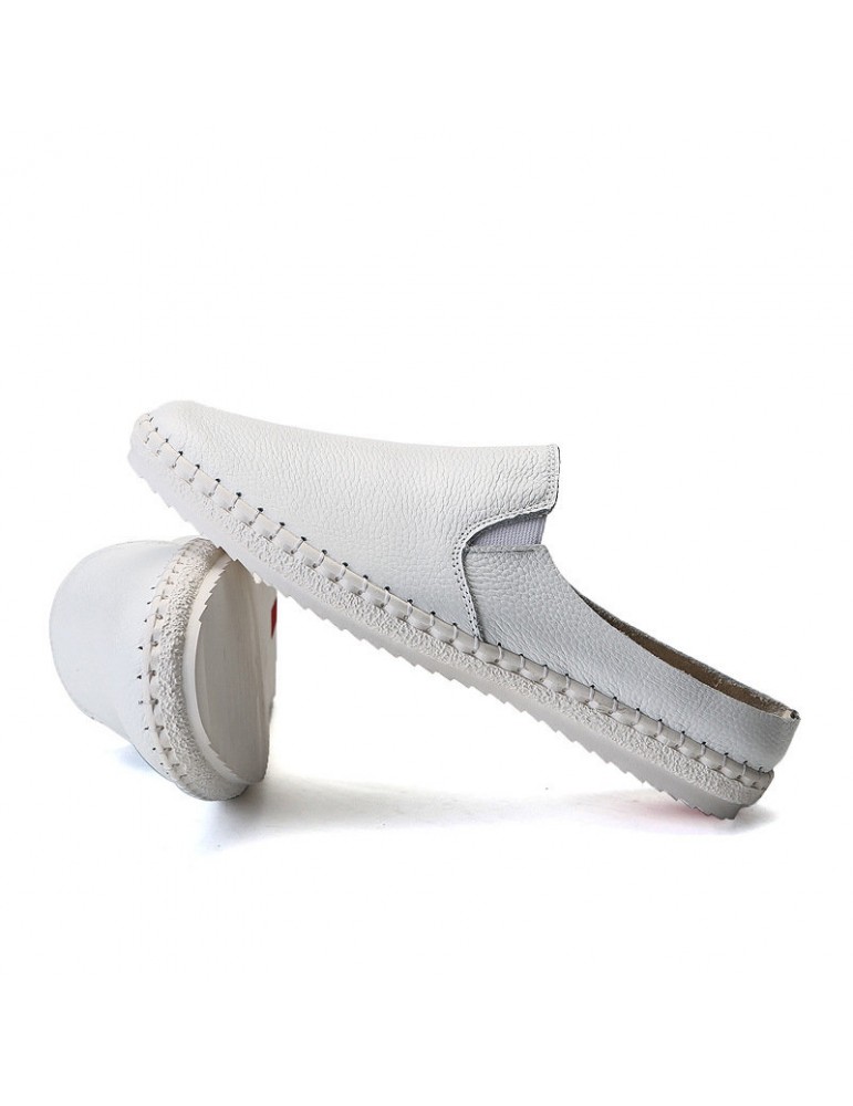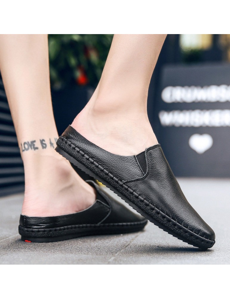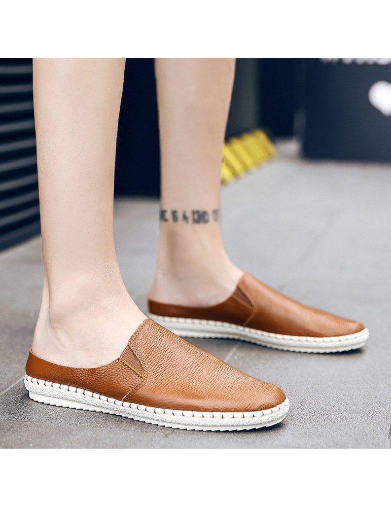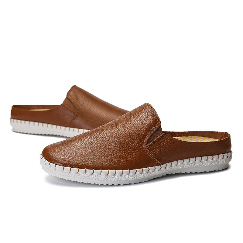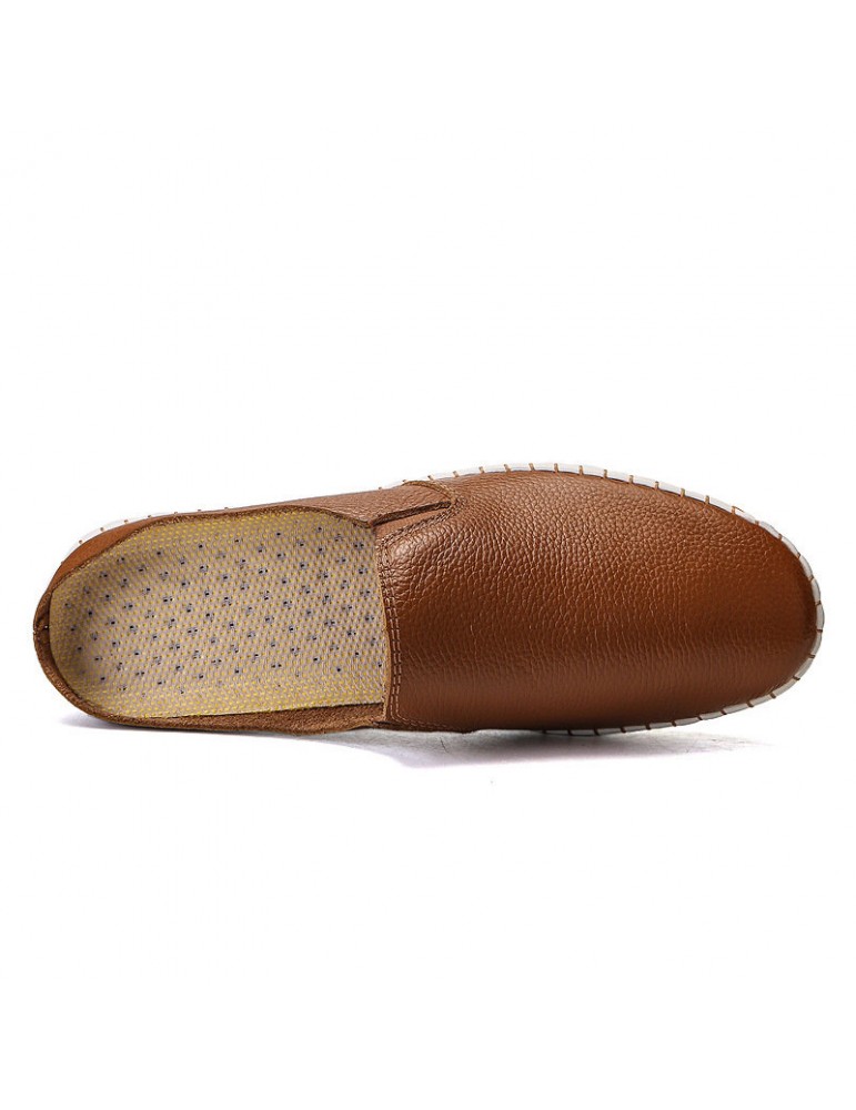 Men Hand Stitching Genuine Cow Leather Comfy Soft Backless Loafers