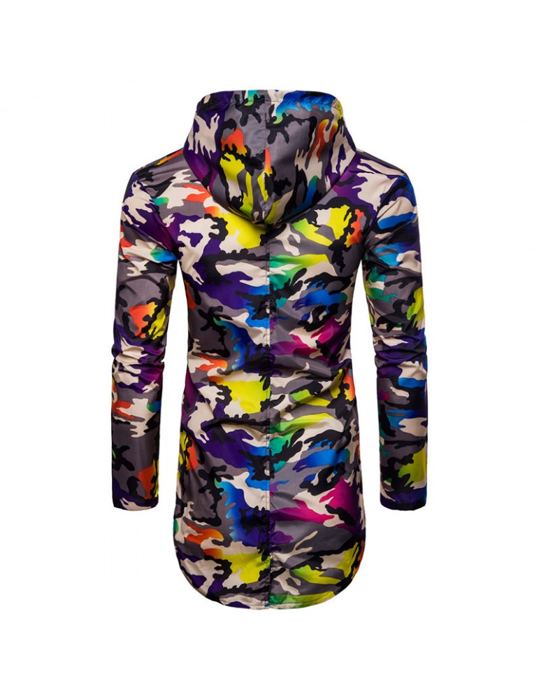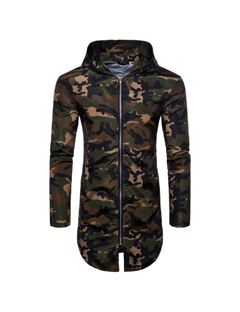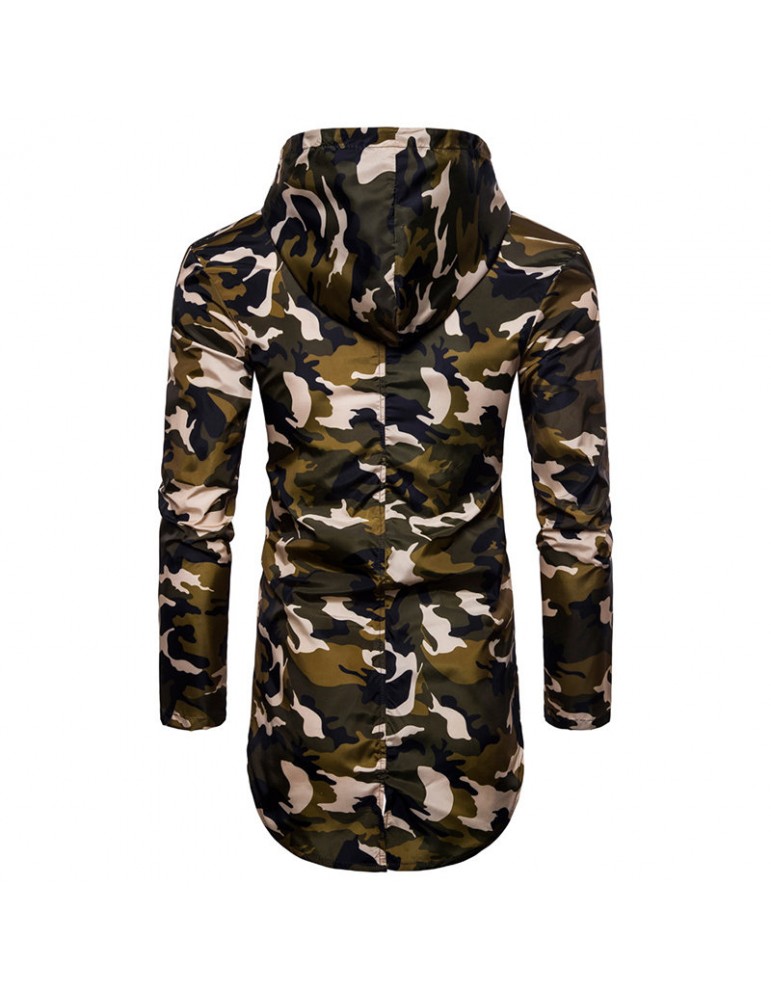 Outdoor Sunscreen Thin Mid Long Camouflage Printing Hooded Jacket for Men