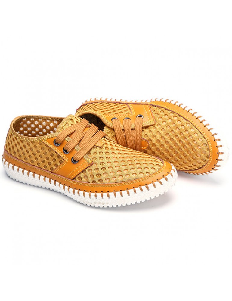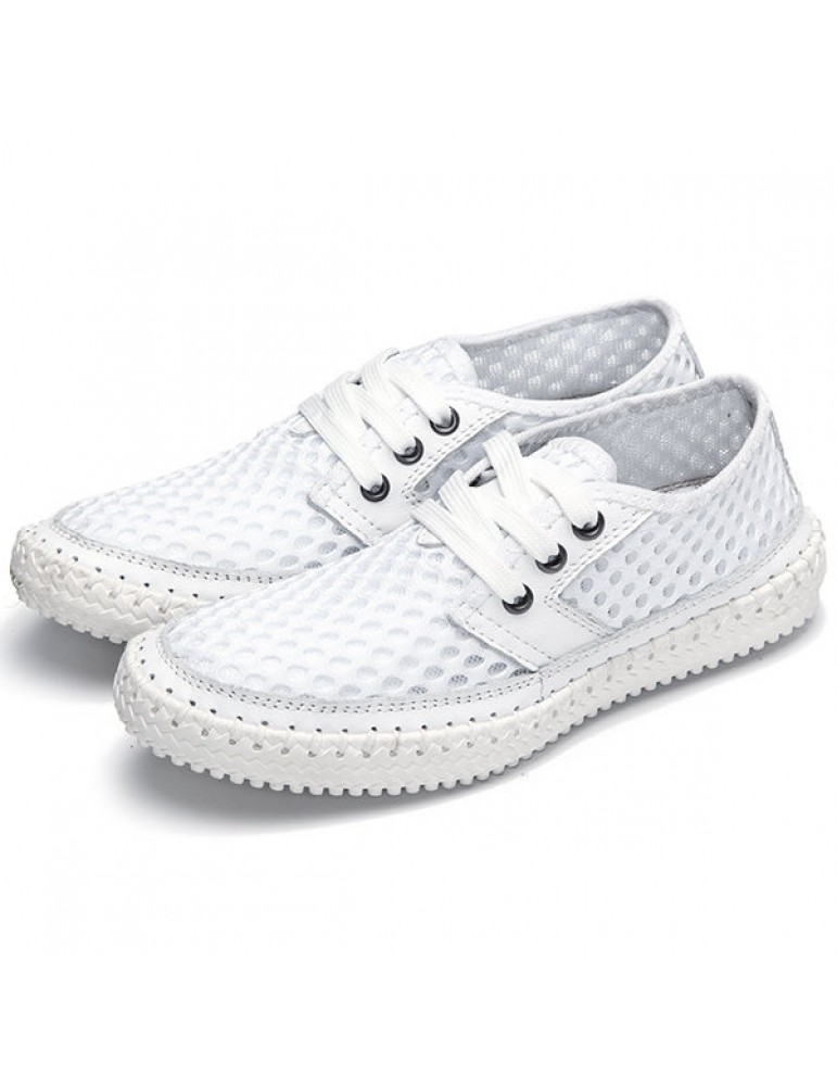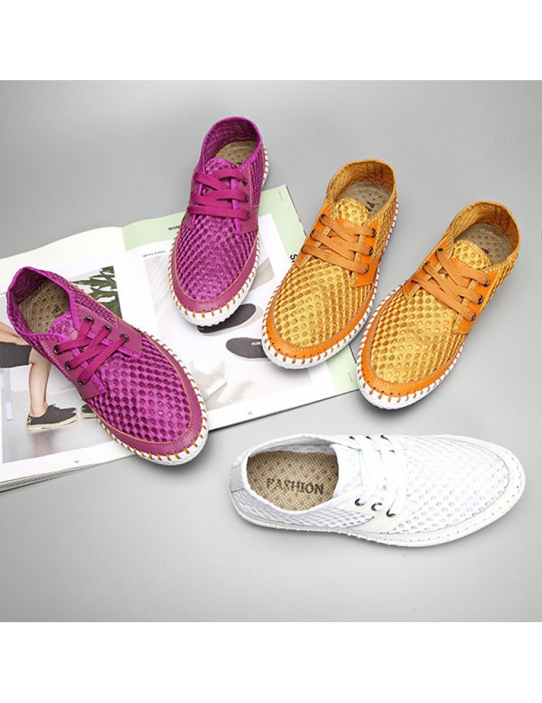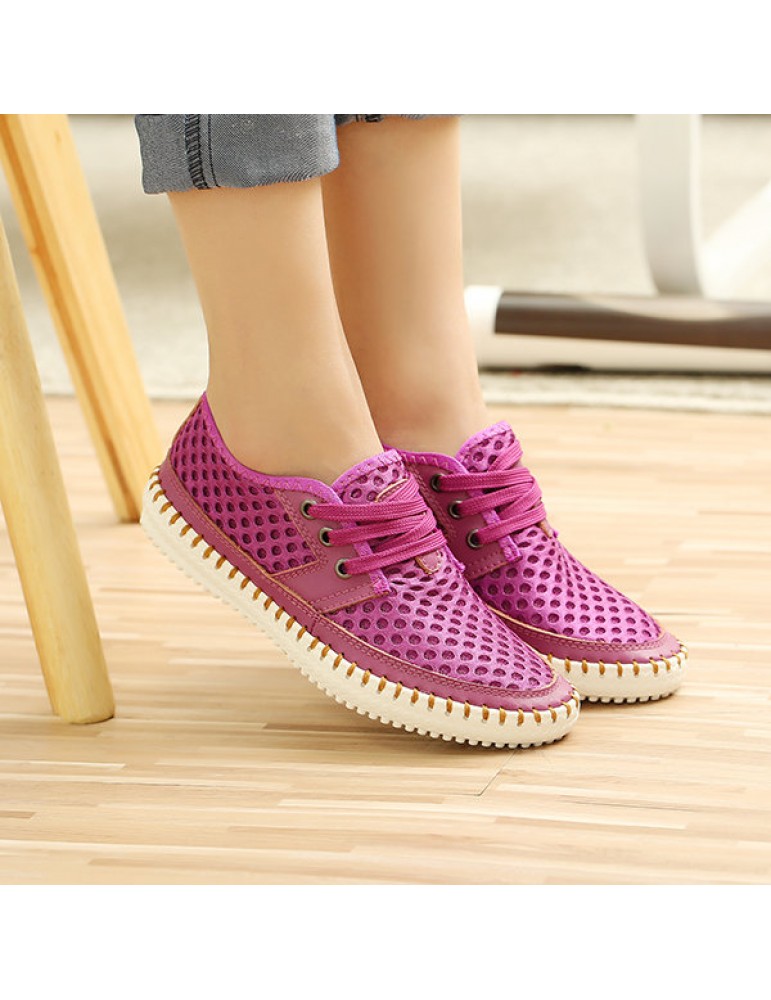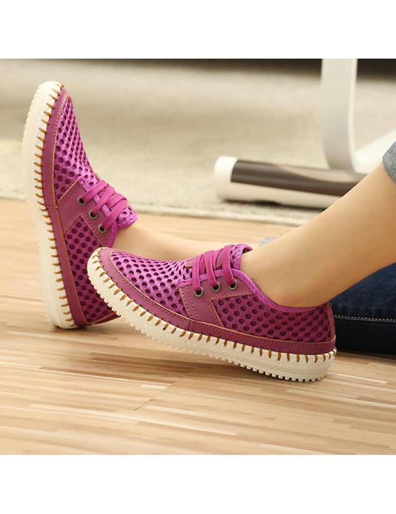 Breathable Mesh Lace Up Soft Sole Flat Casual Shoes For Women