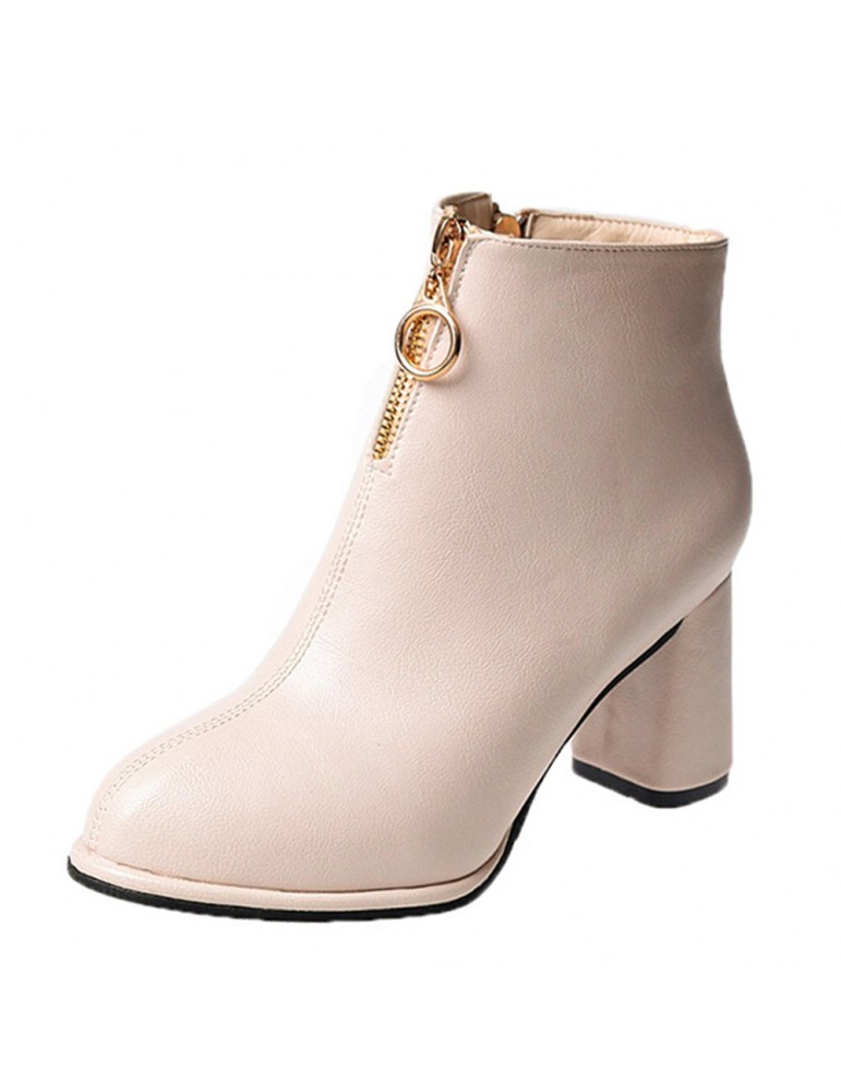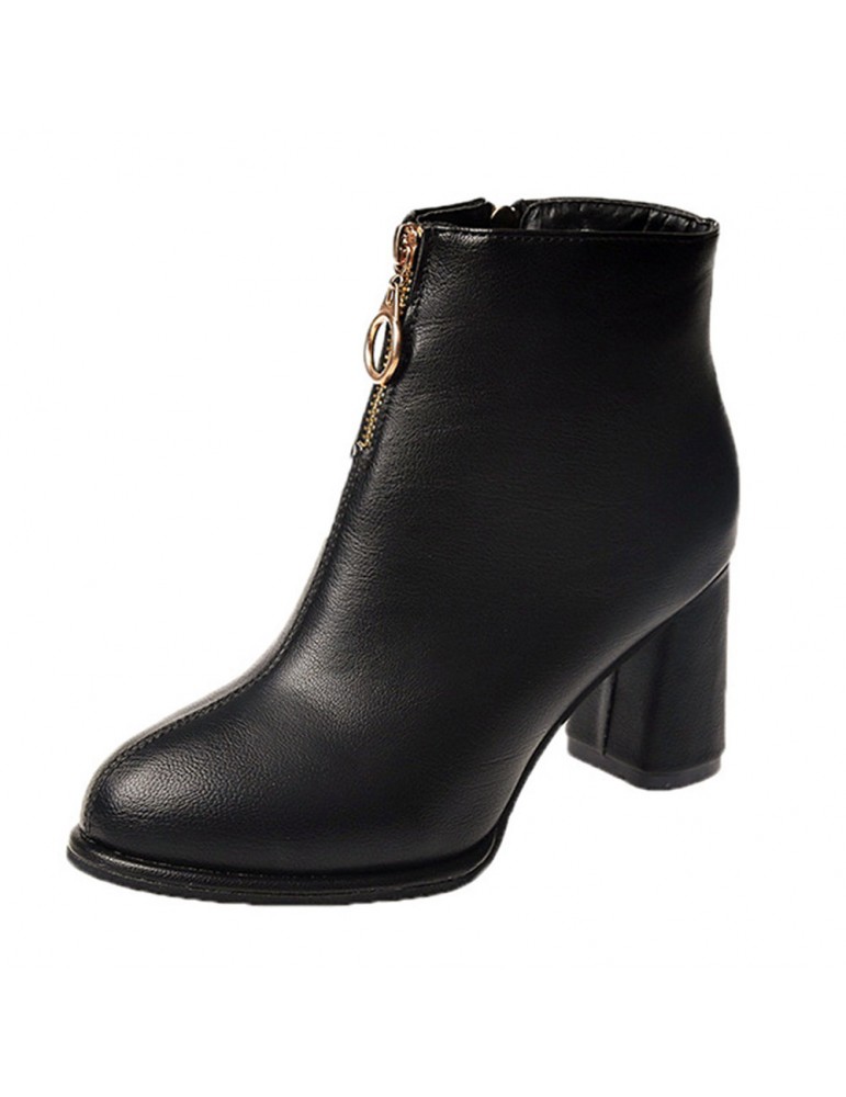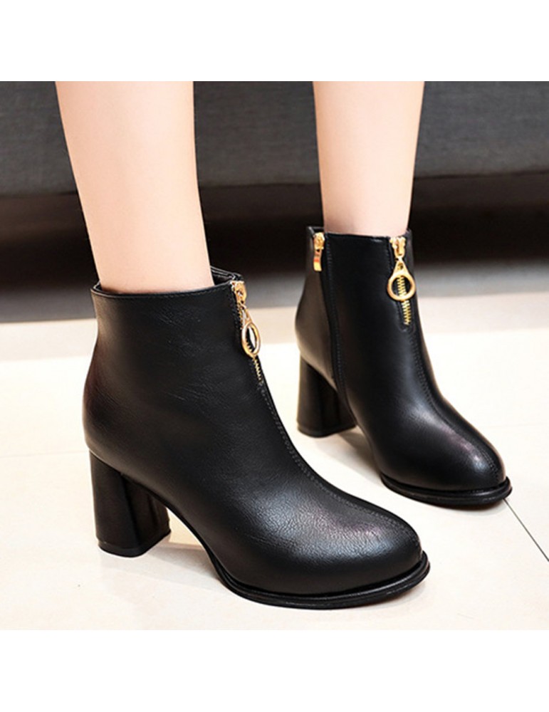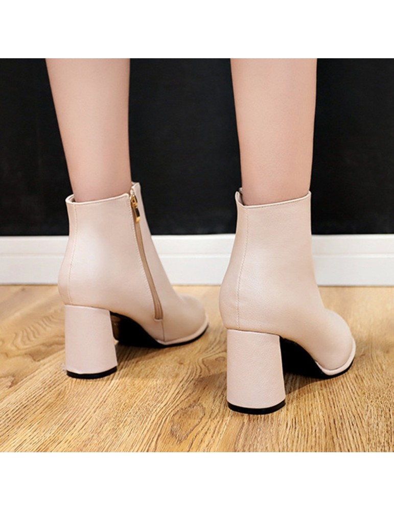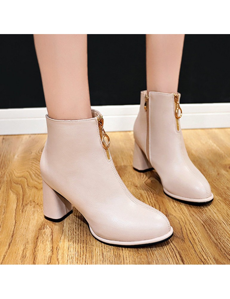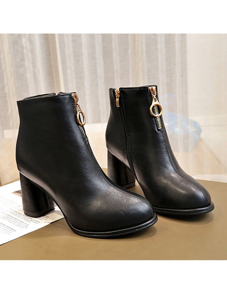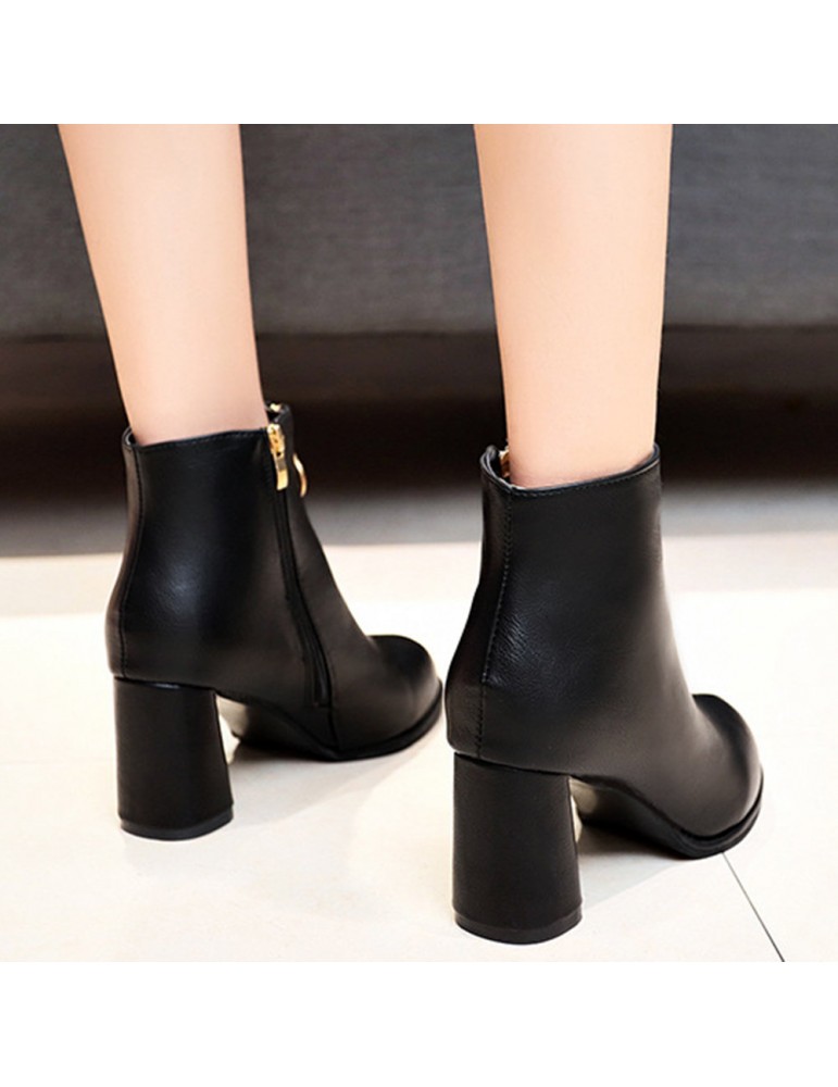Round Toe Side Zipper High-heeled Thick Short Ankle Boots