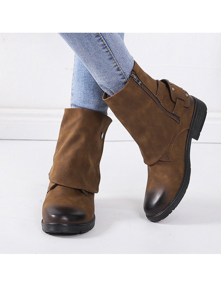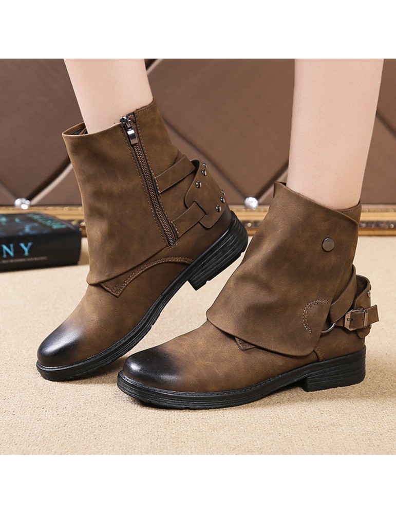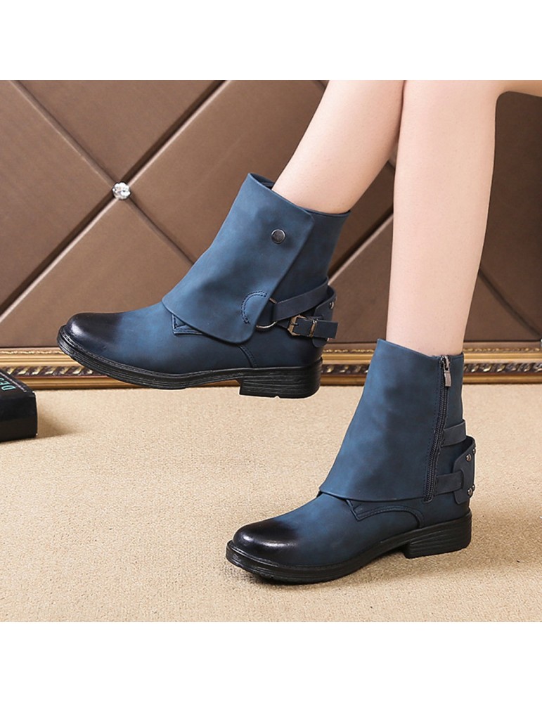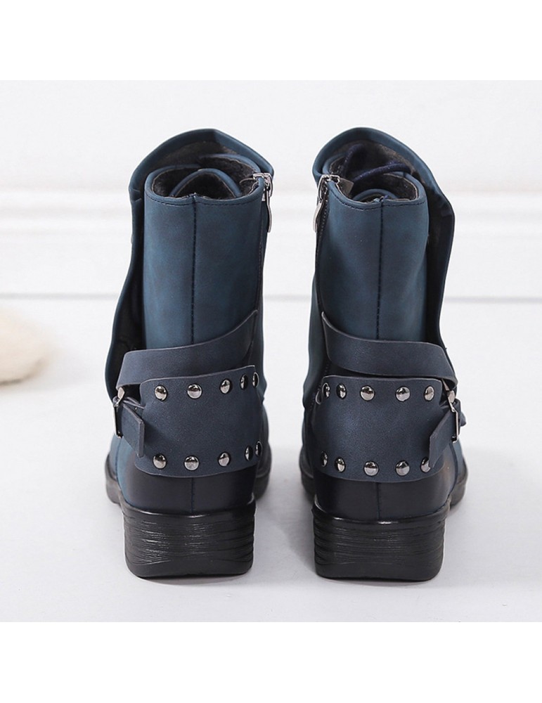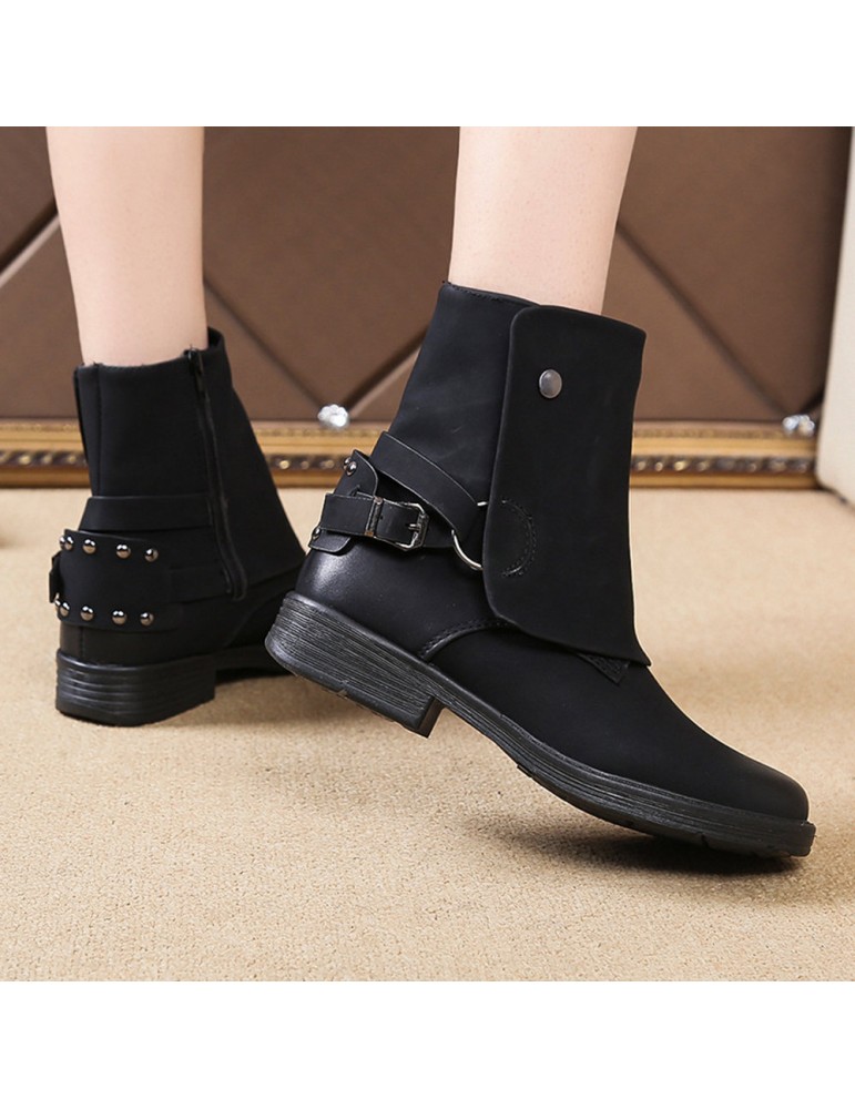 Splicing Round Toe Metal Rivet Flat Boots For Women