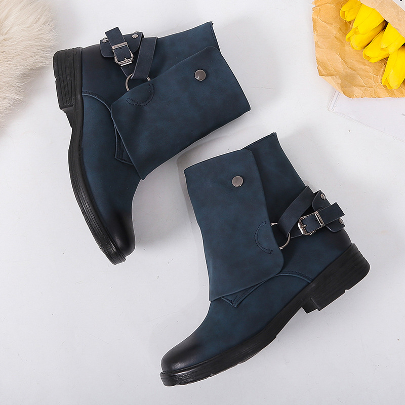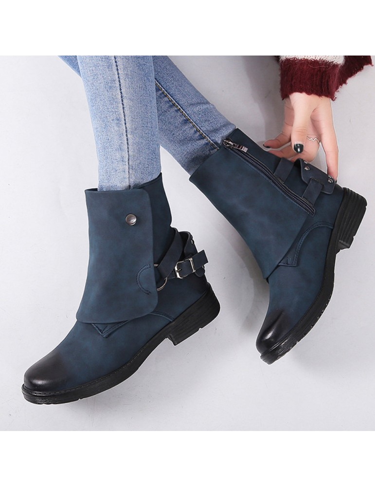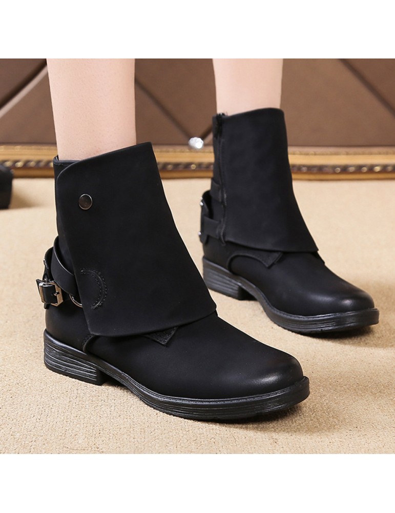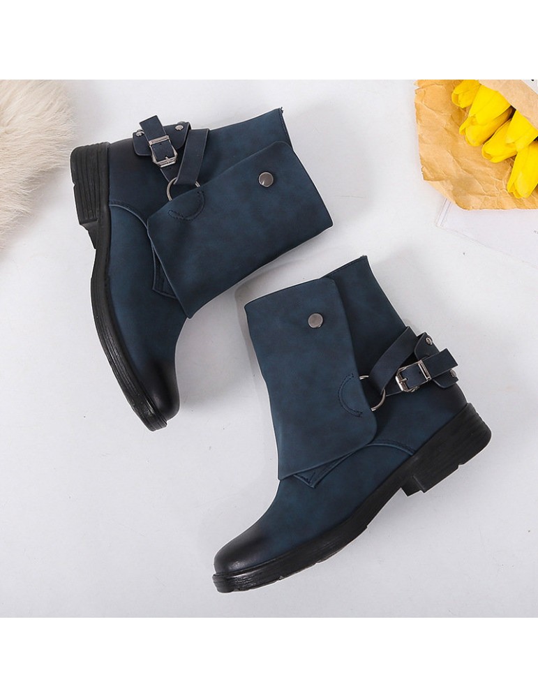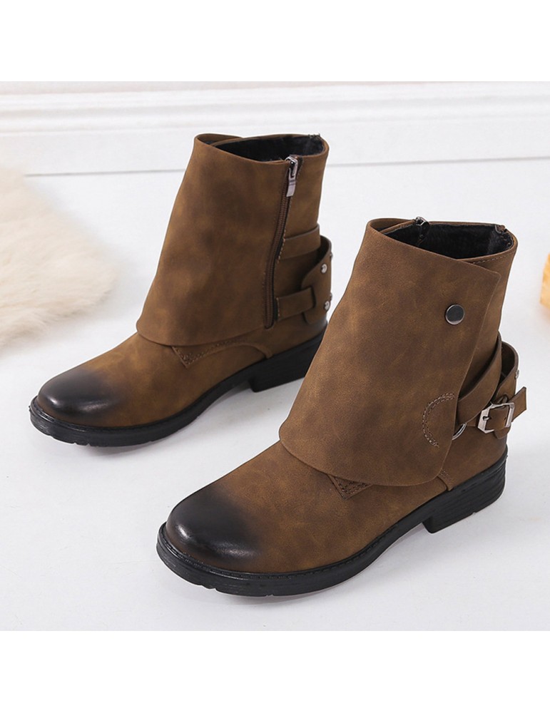 Splicing Round Toe Metal Rivet Flat Boots For Women