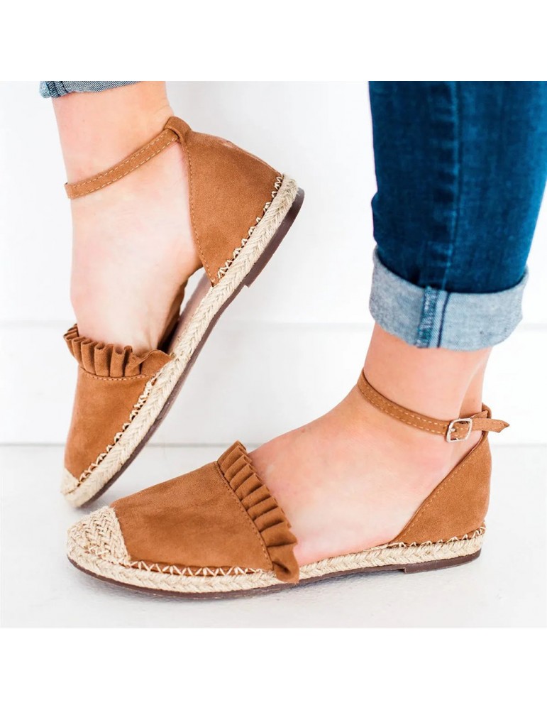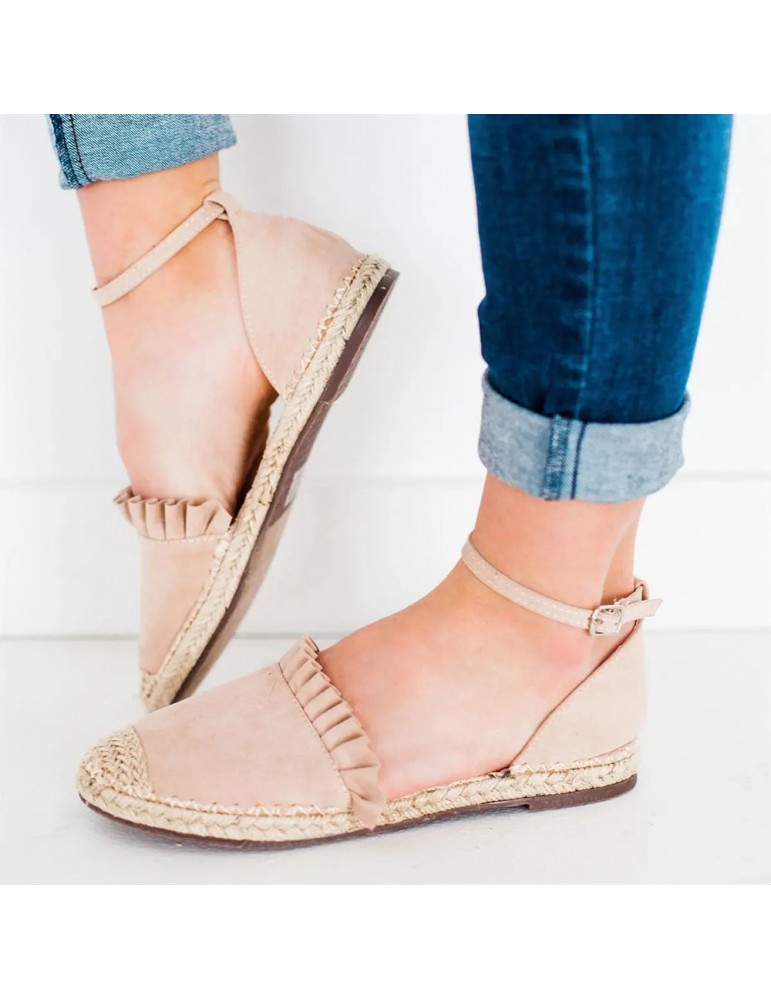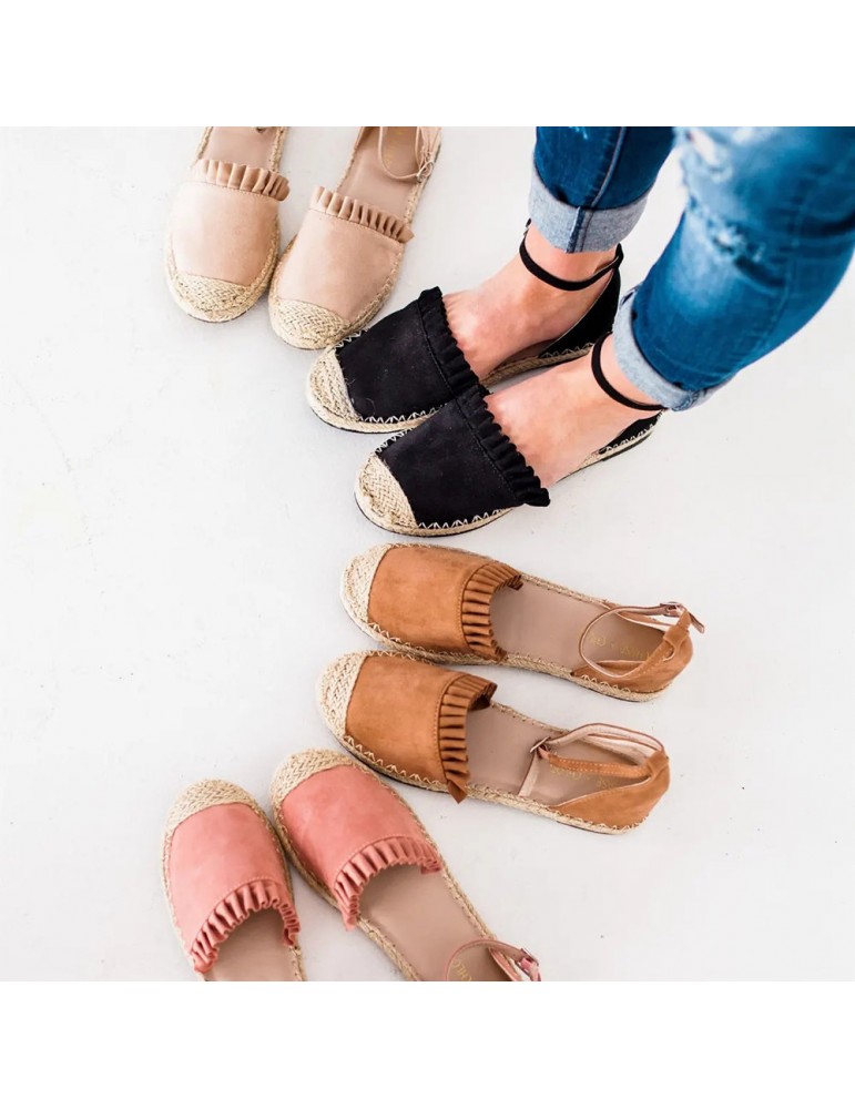Big Size Women Comfy Straw Stitching Strappy Buckle Espadrille Sandals