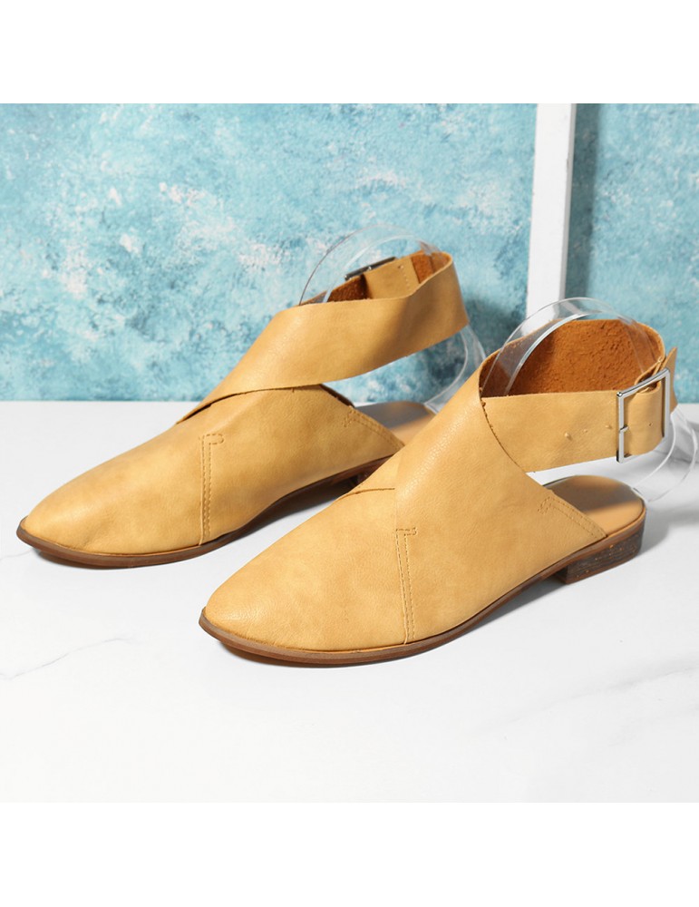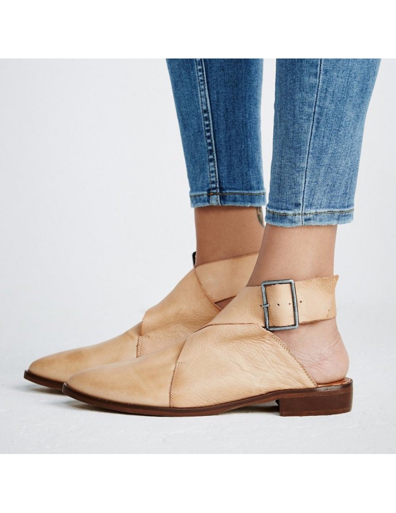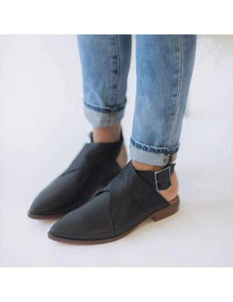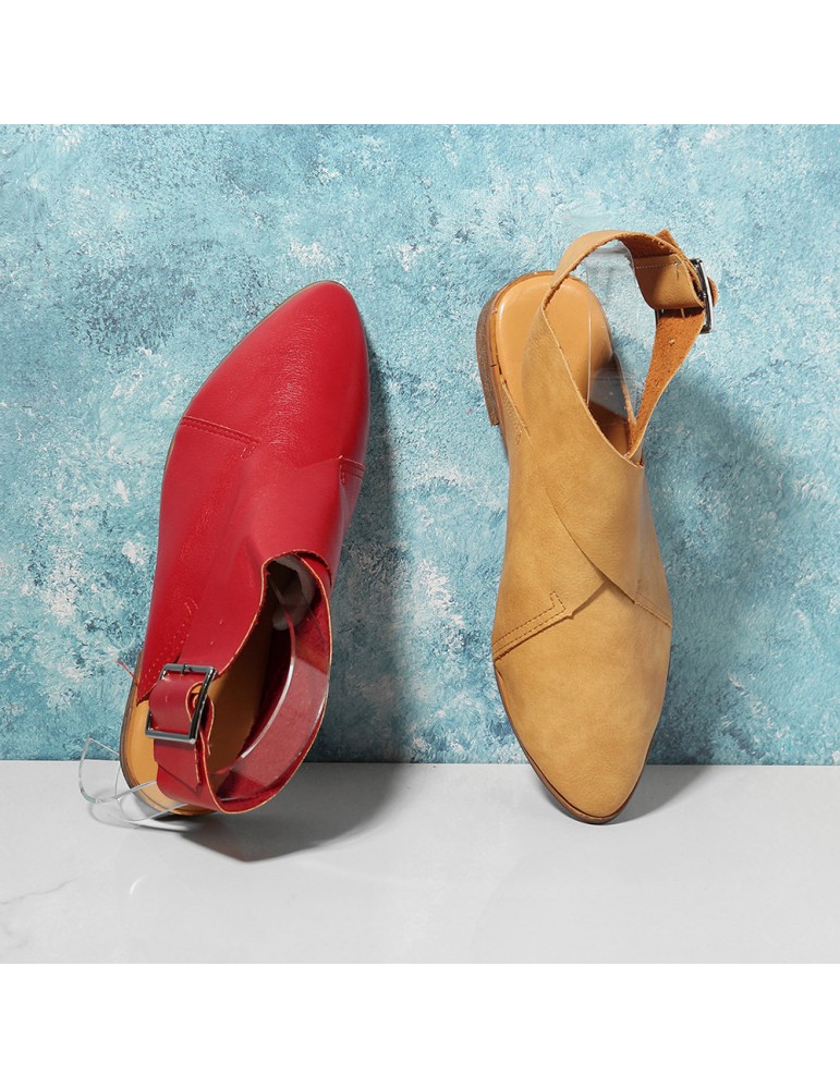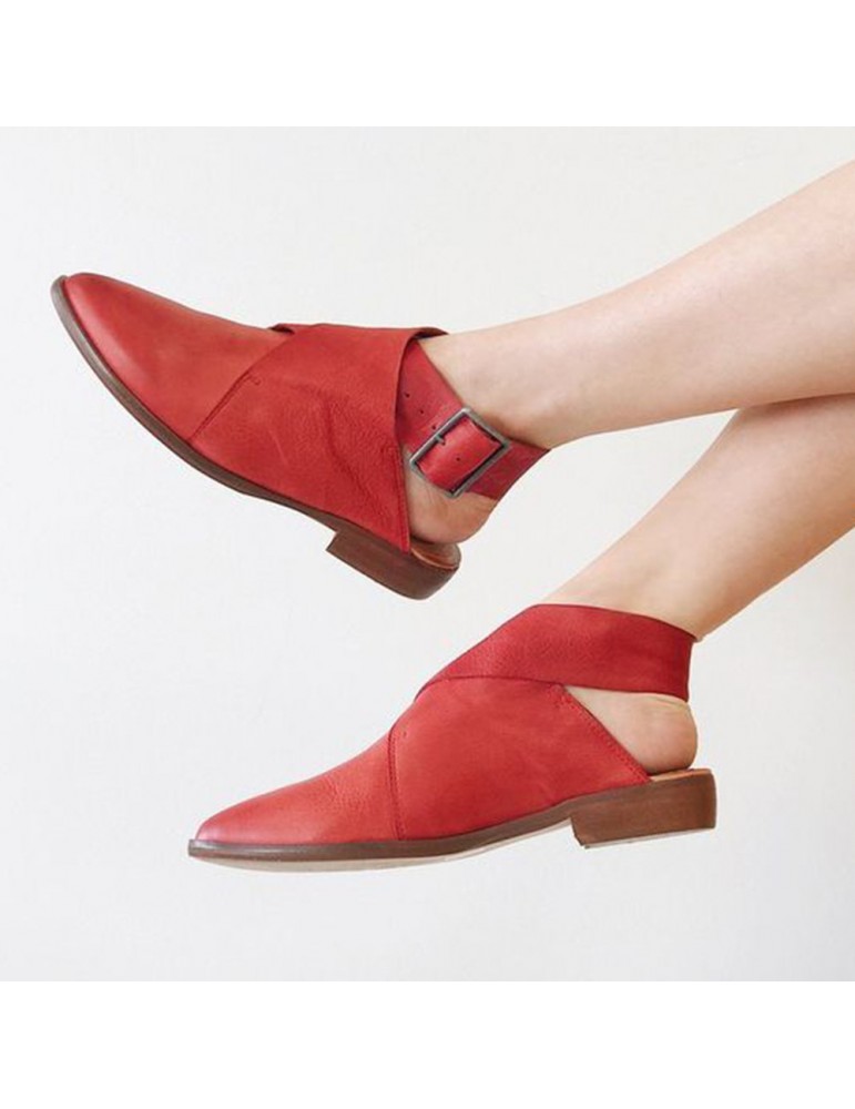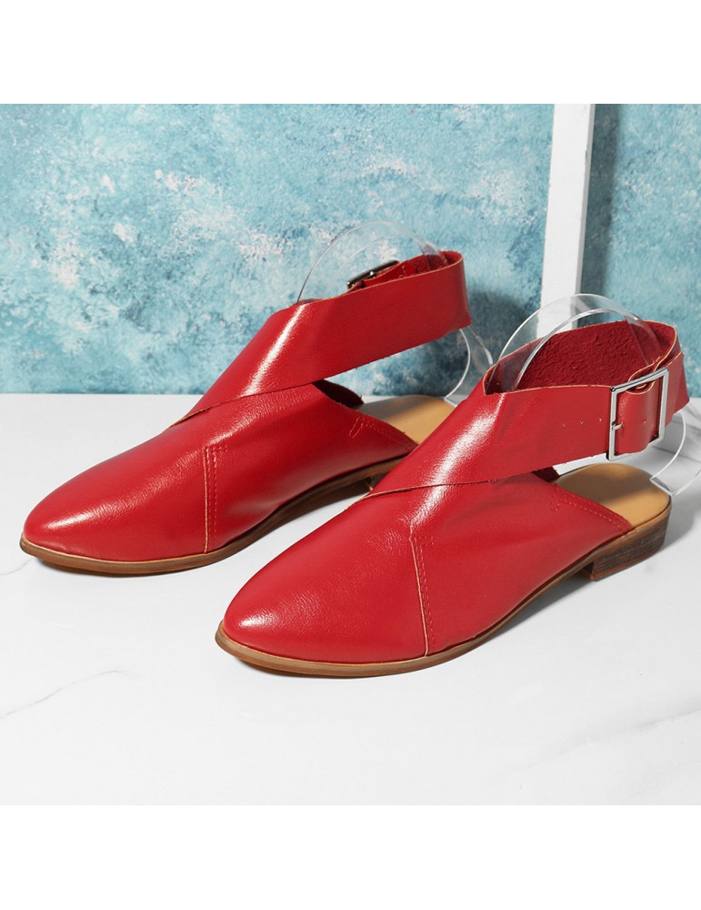 Large Size Women Casual Pointed Closed Toe Belt Buckle Flats
