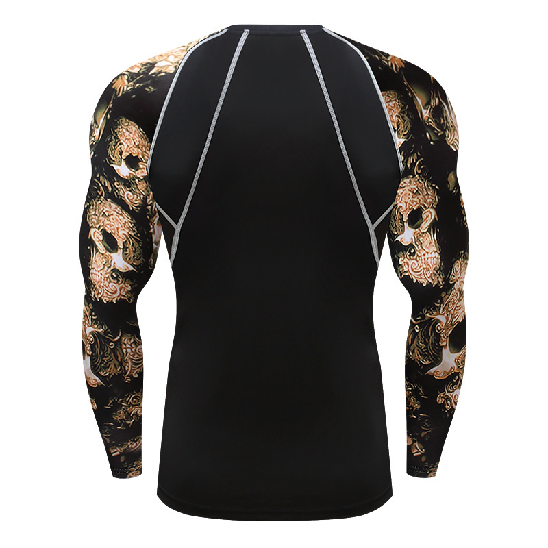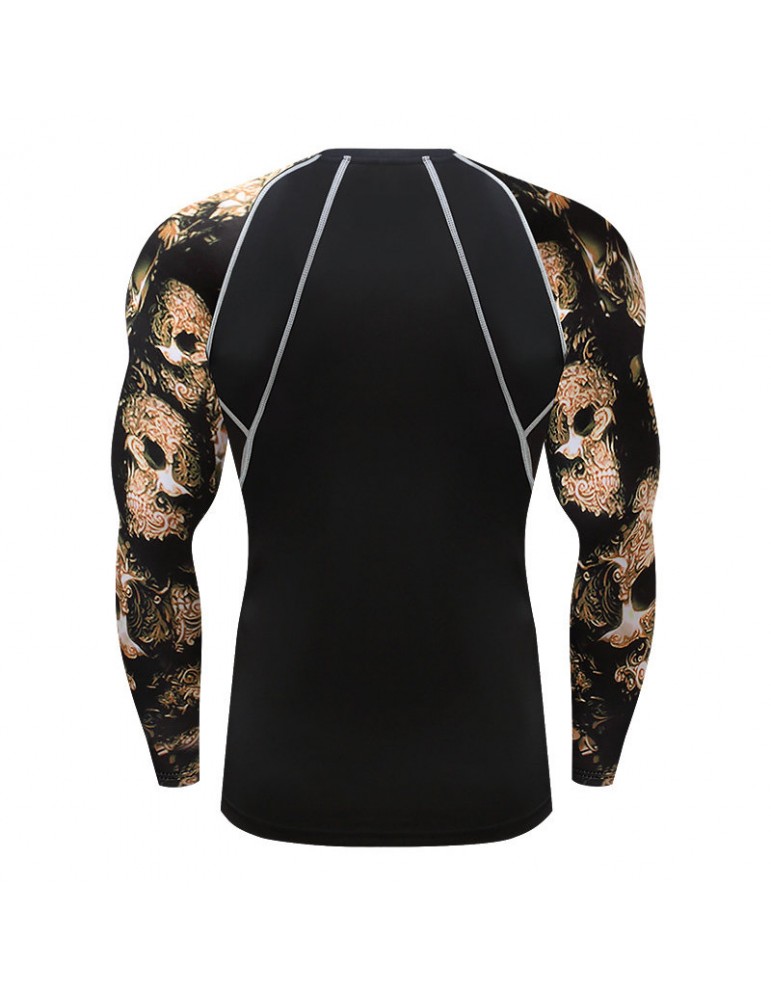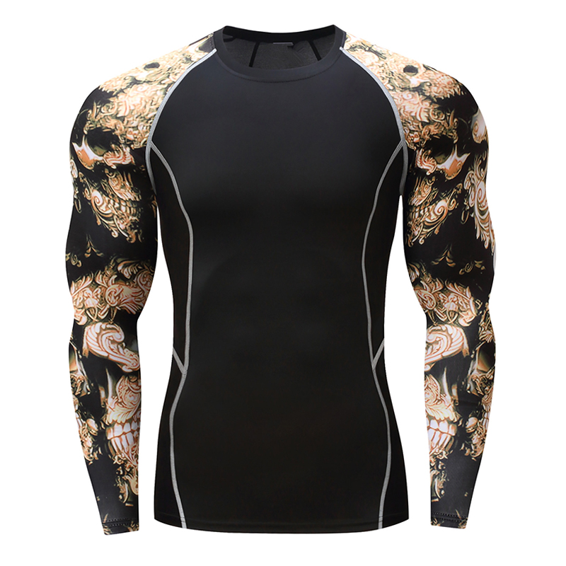 Mens Elastic Sport Training Running Gym Breathable Quick Drying Printing Sleeve Casual Skinny Tops