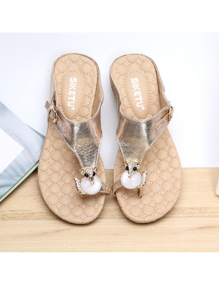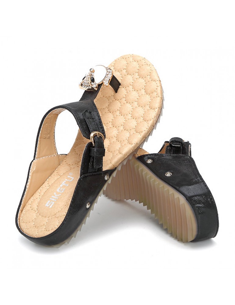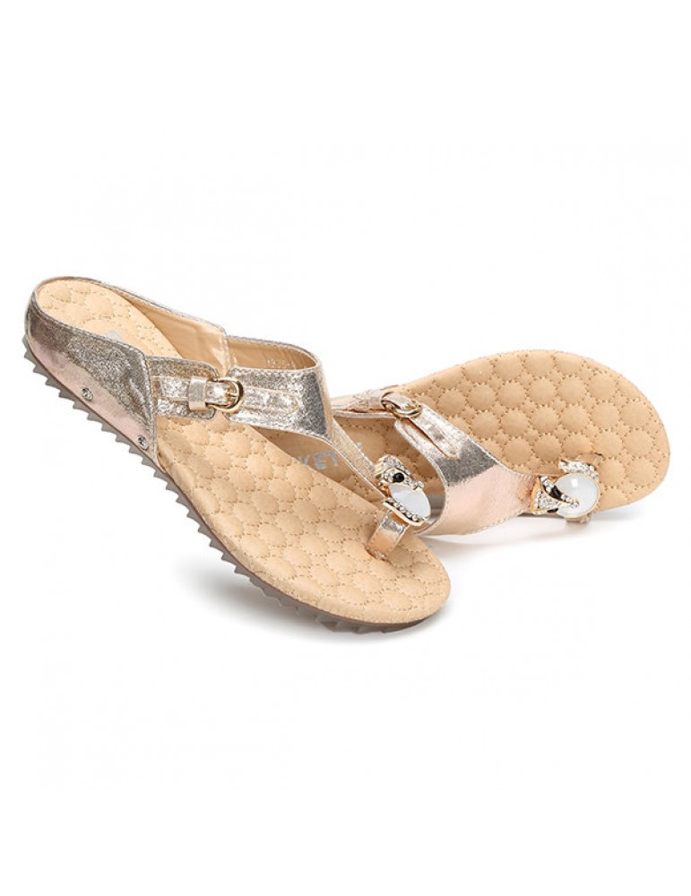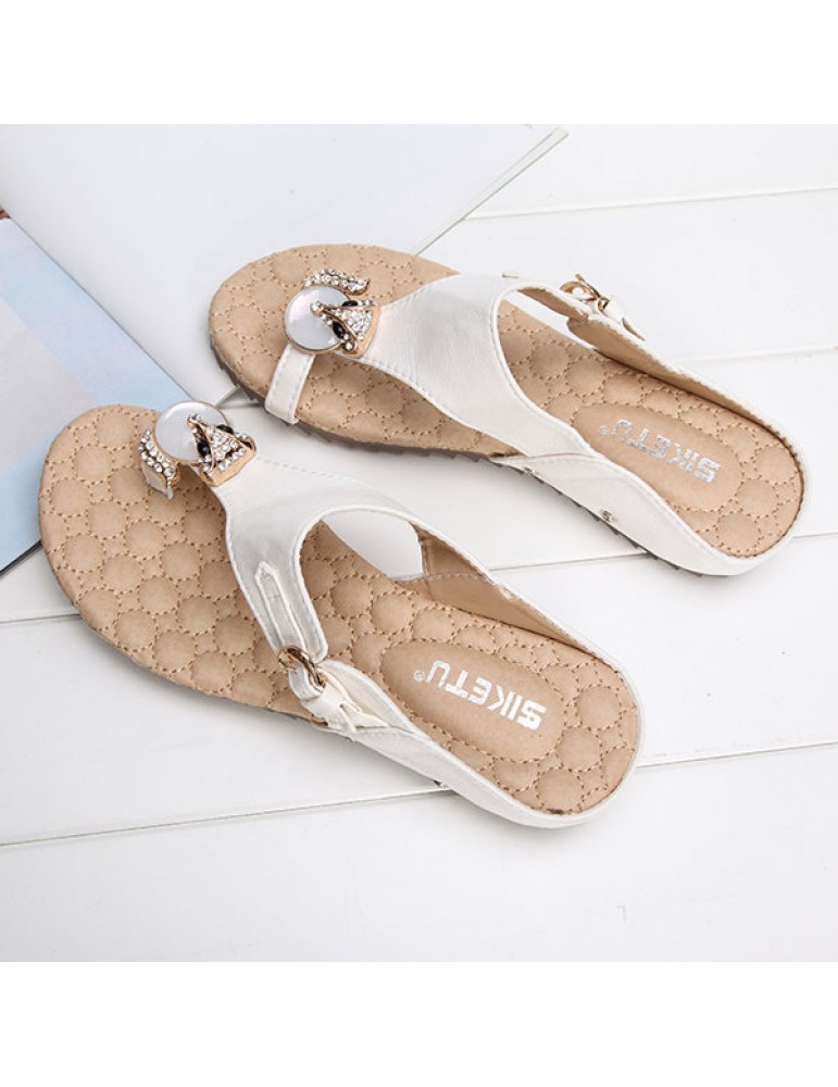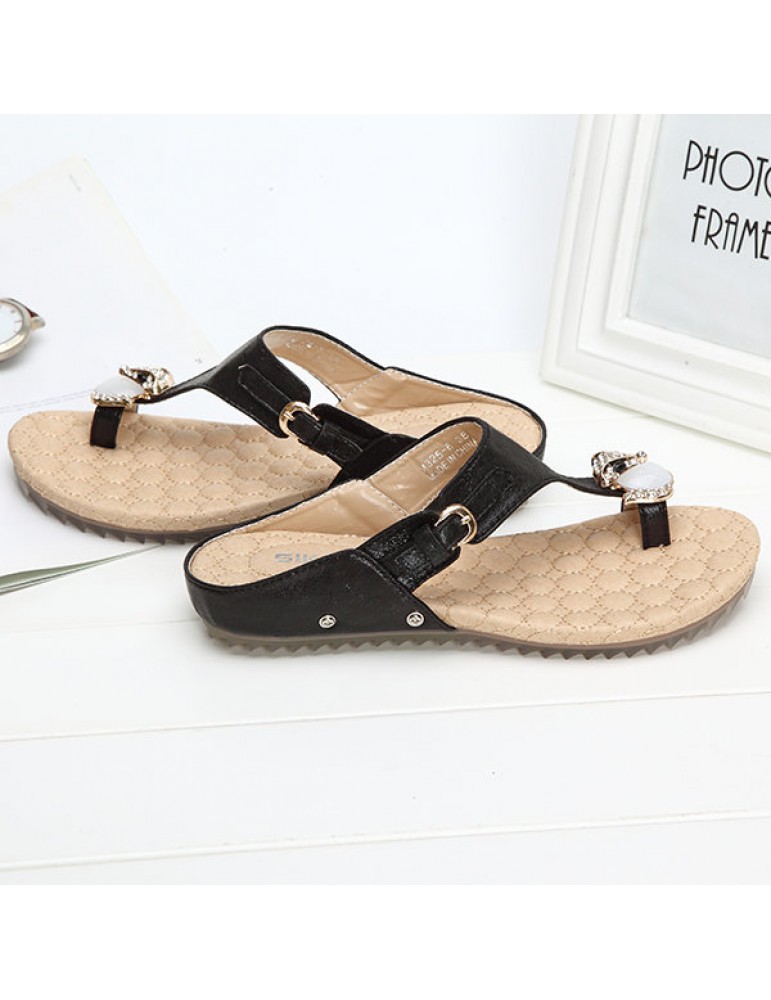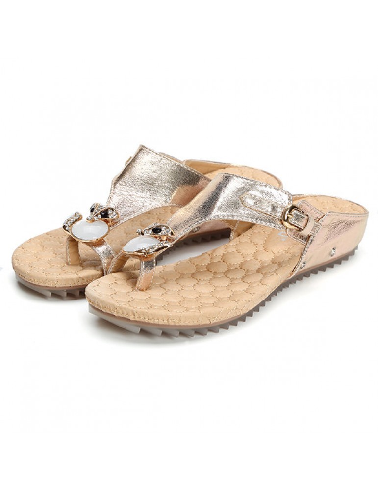 Rhinestones Buckle Comfortable Clip Toe Flip Flops Flat Sandals