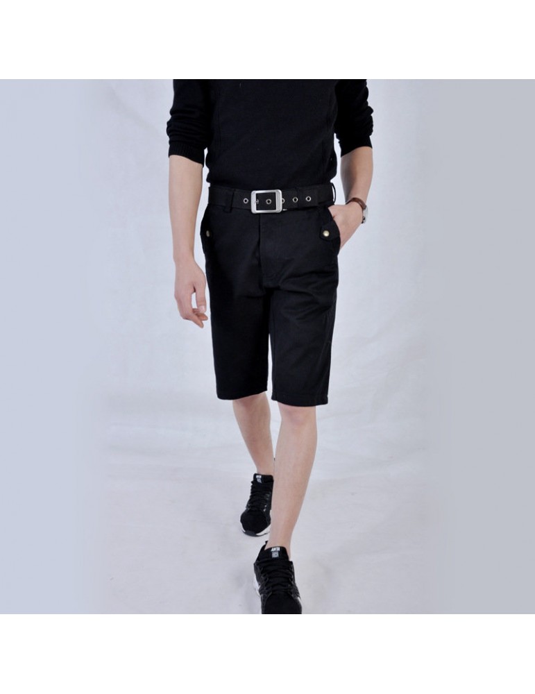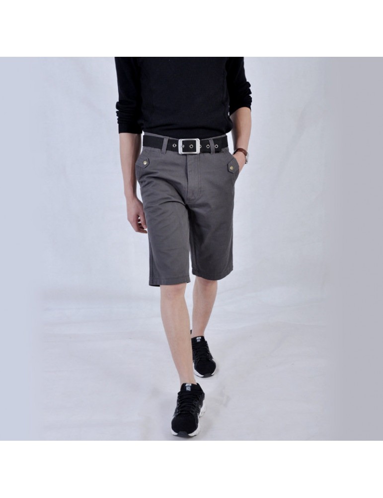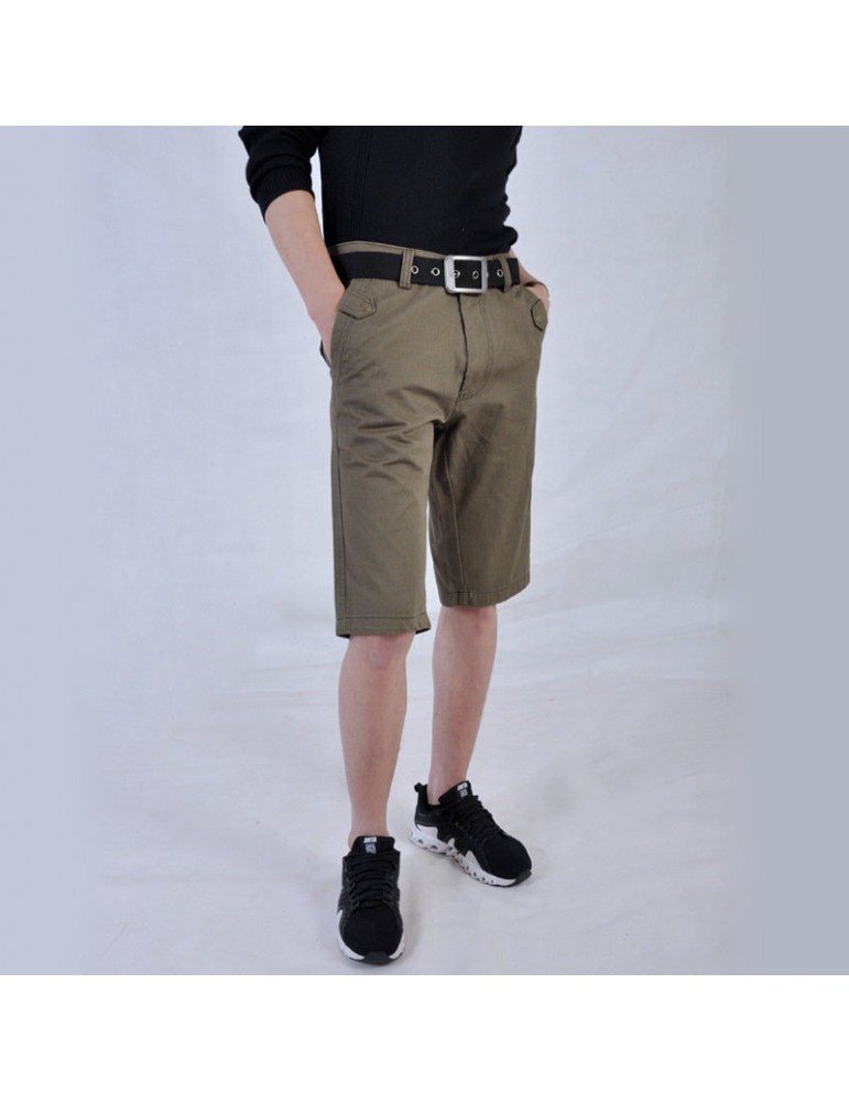Mens Summer 100%Cotton Breathable Solid Color Knee Length Regular Fit Casual Shorts