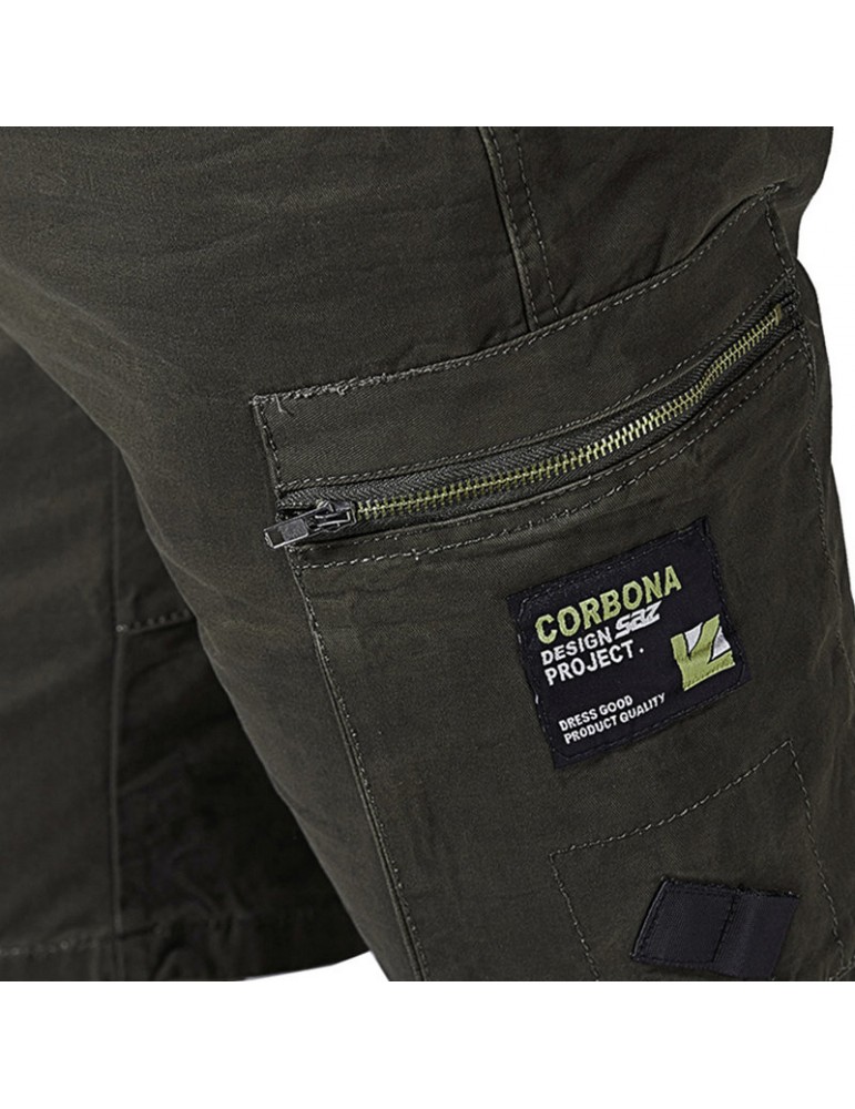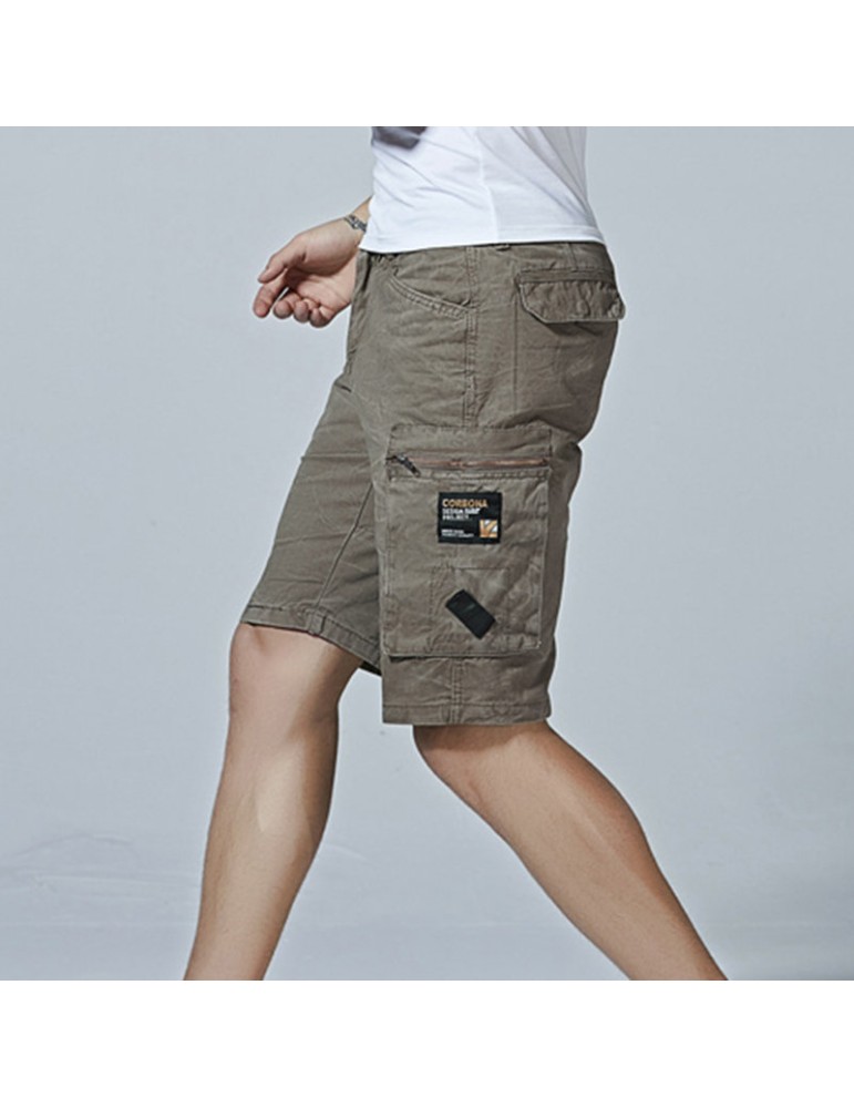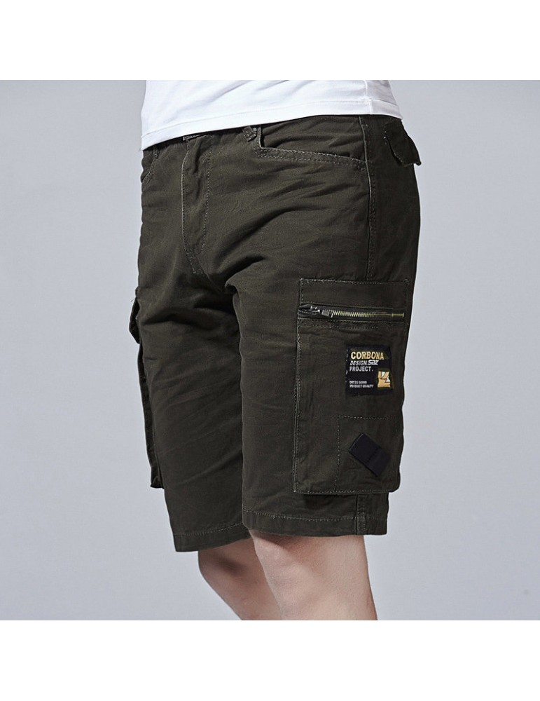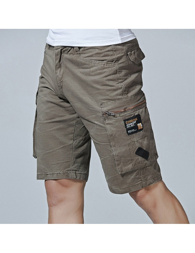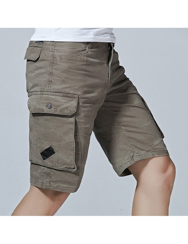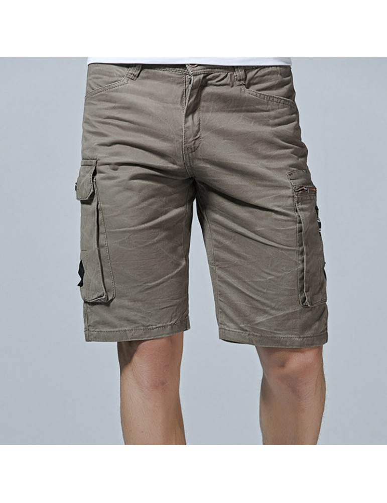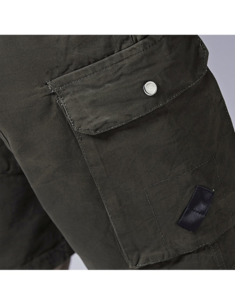 Mesn Outdoor Multi-pocket Cargo Shorts Solid Color Knee Length Casual Cotton Shorts