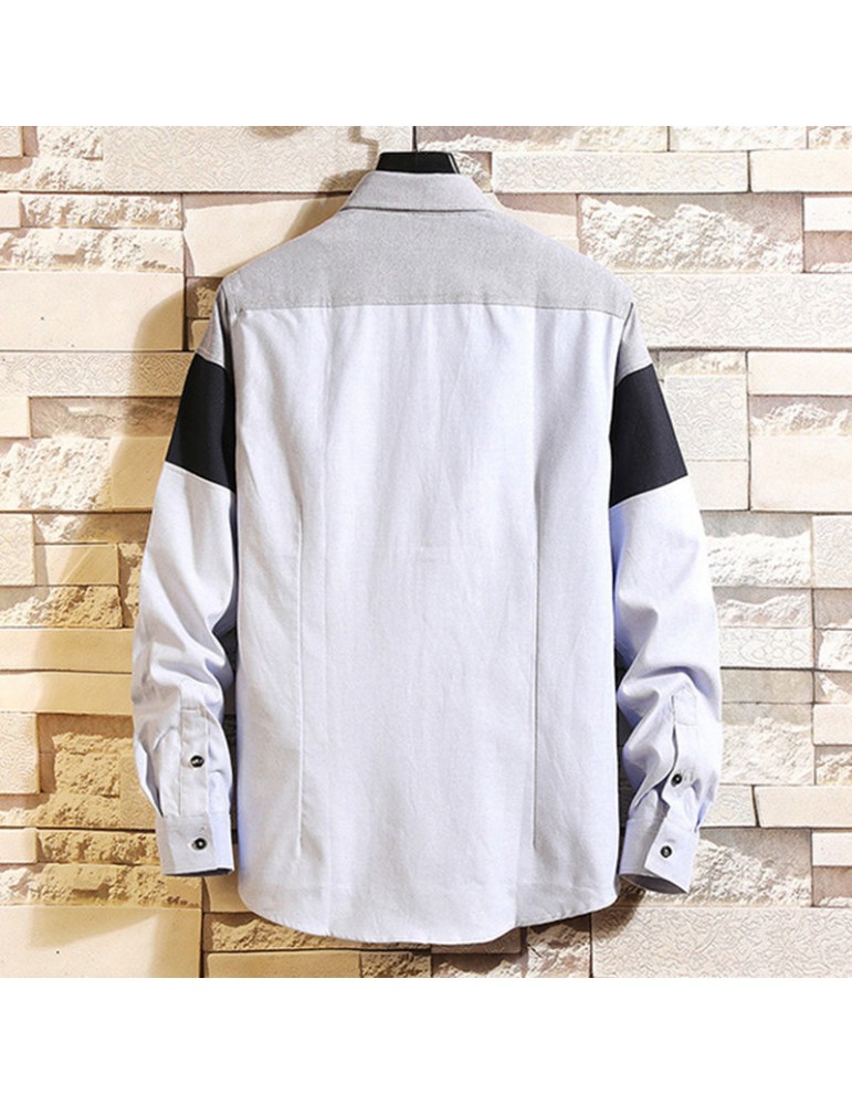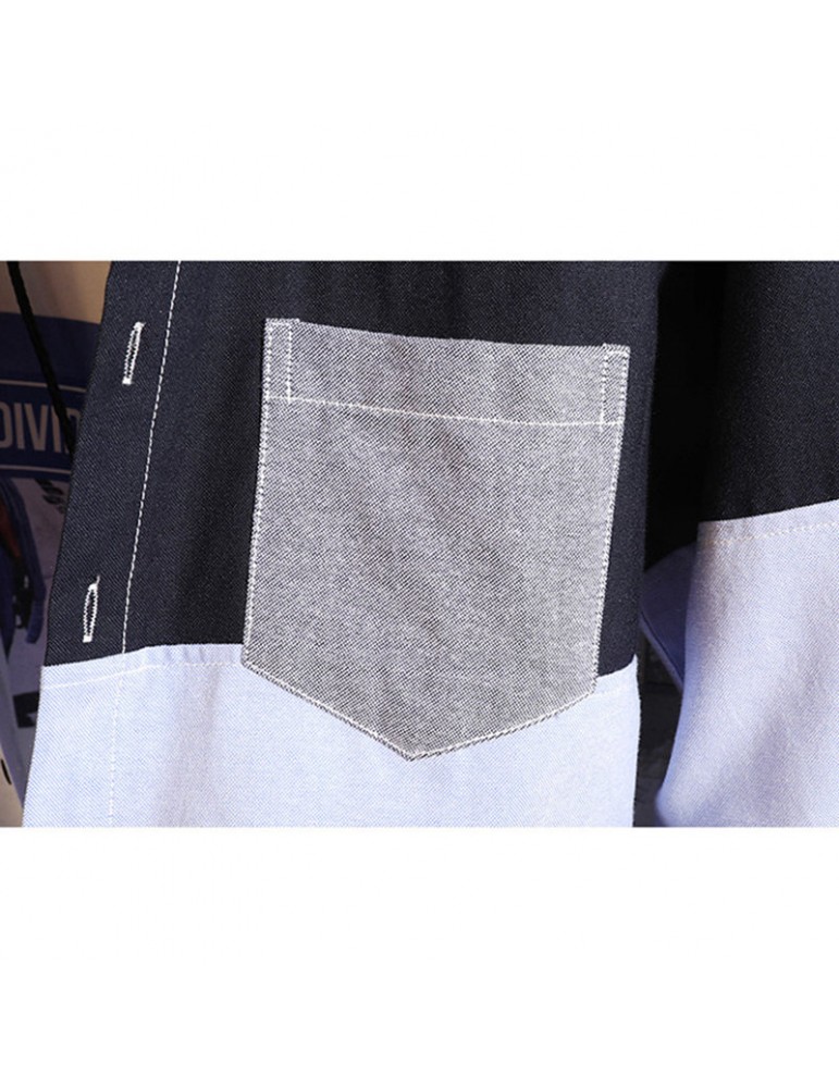Men's Patchwork Long Sleeve Chest Pocket Turn Down Collar Casual Shirt