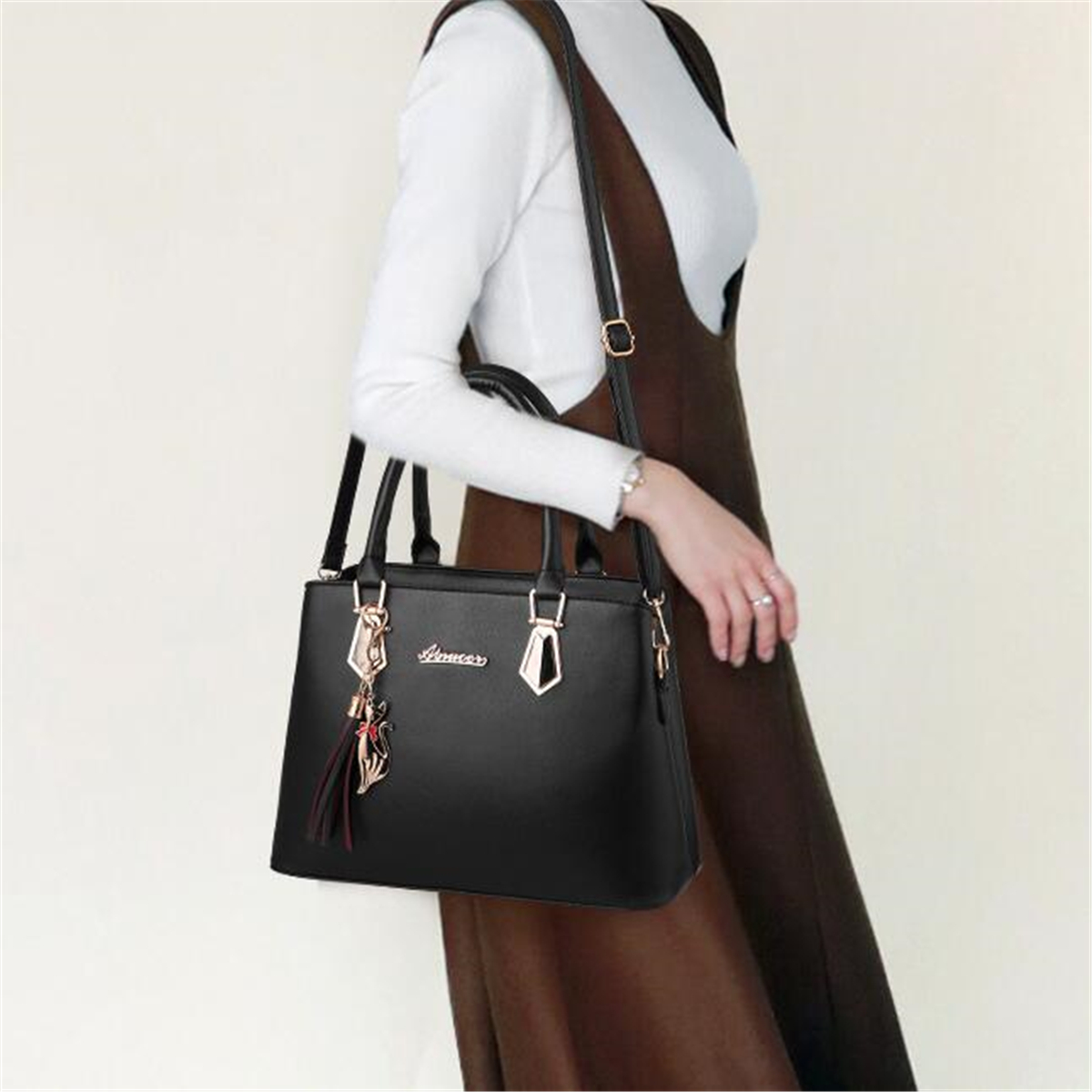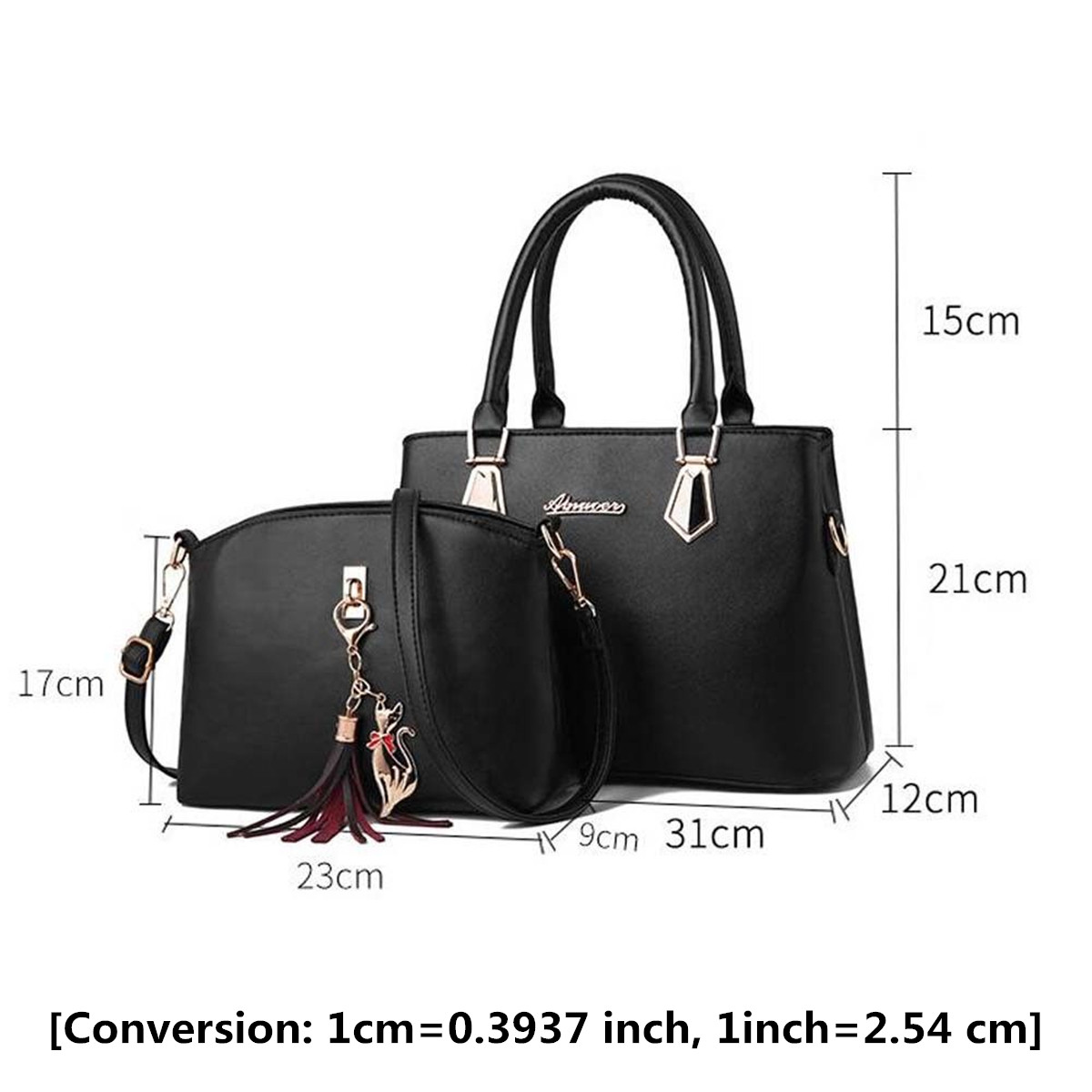 Women Faux Leather 2pcs Leisure Plain Handbag Shoulder Bag