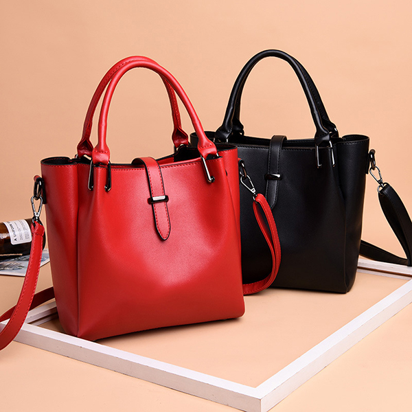 Women Genuine Leather Multi-layer Handbag Large Capacity Crossbody Bag Solid Bucket Bag