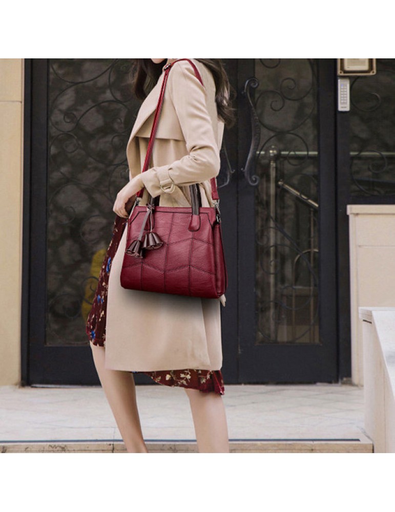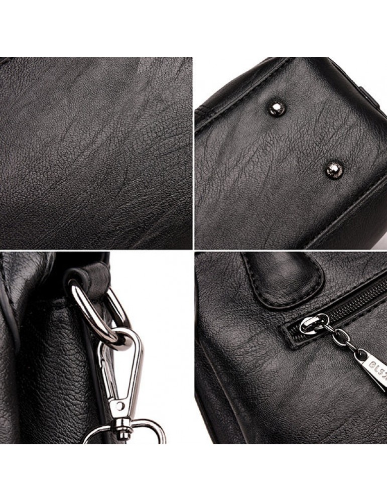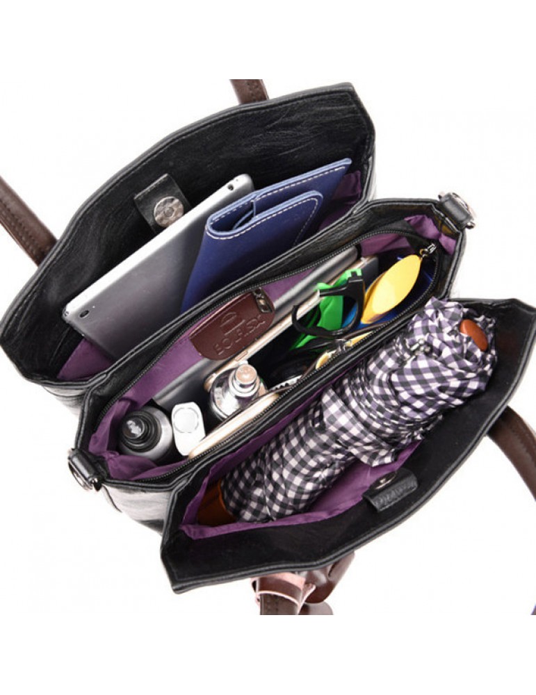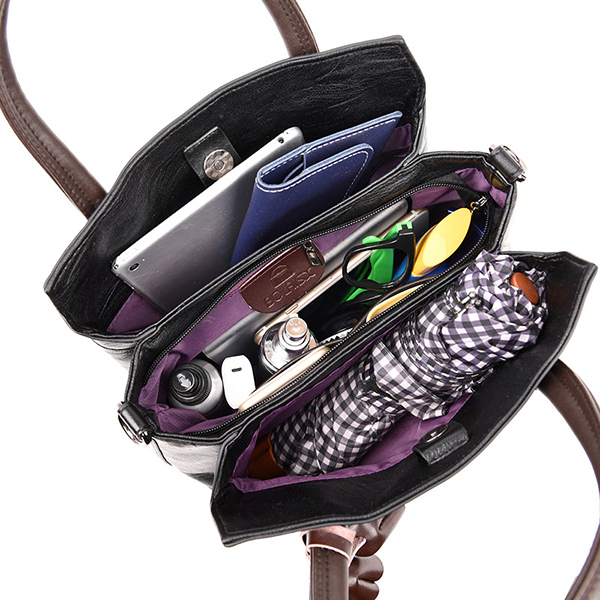 Women Stitching 3 Layer Handbag Large Capacity Solid Leisure Crossbody Bag