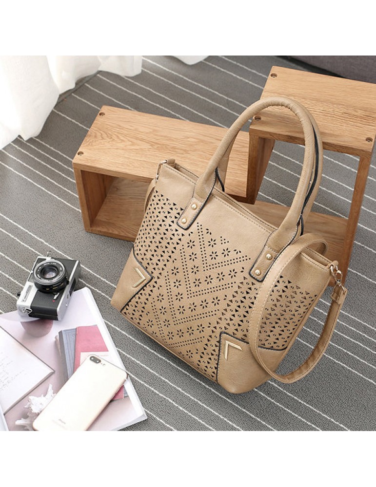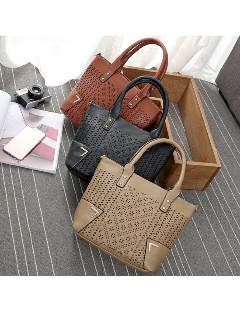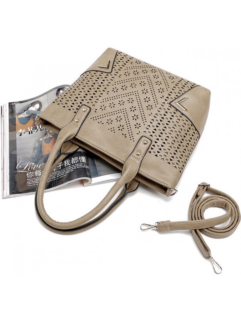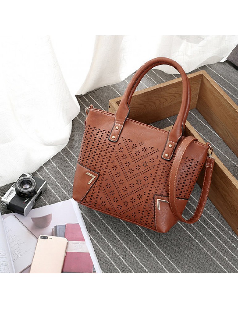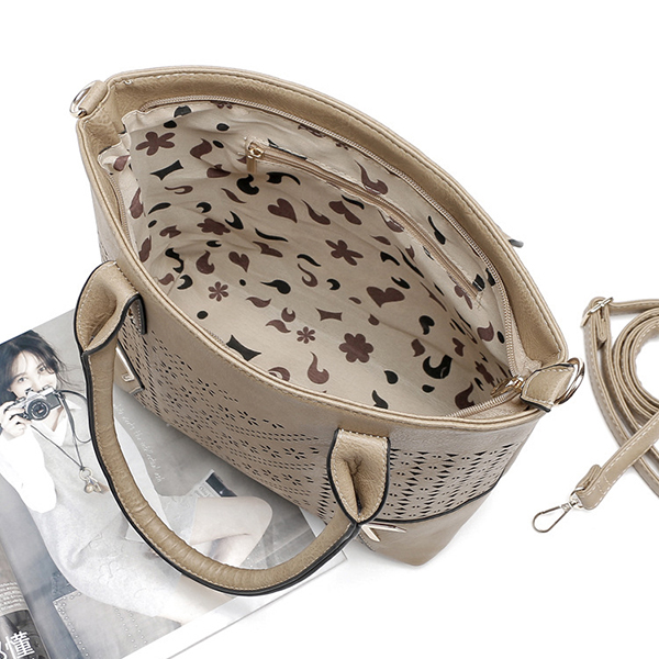 Women Hollow Out PU Leather Handbag Large Capacity Crossbody Bag