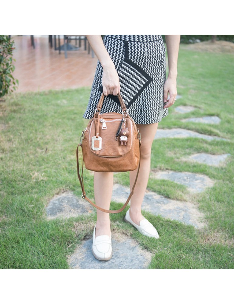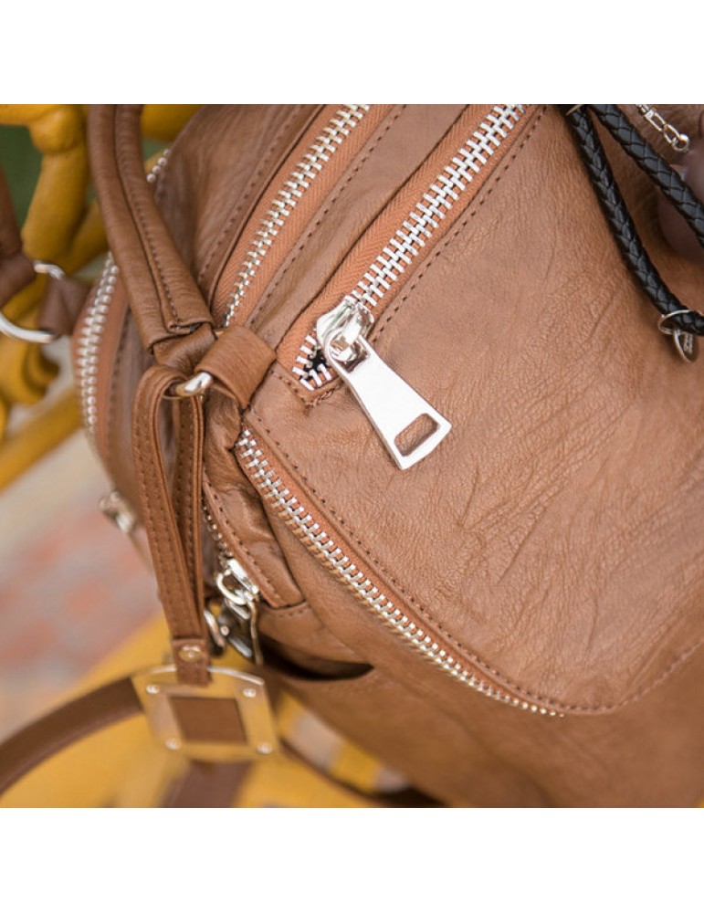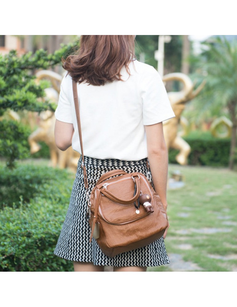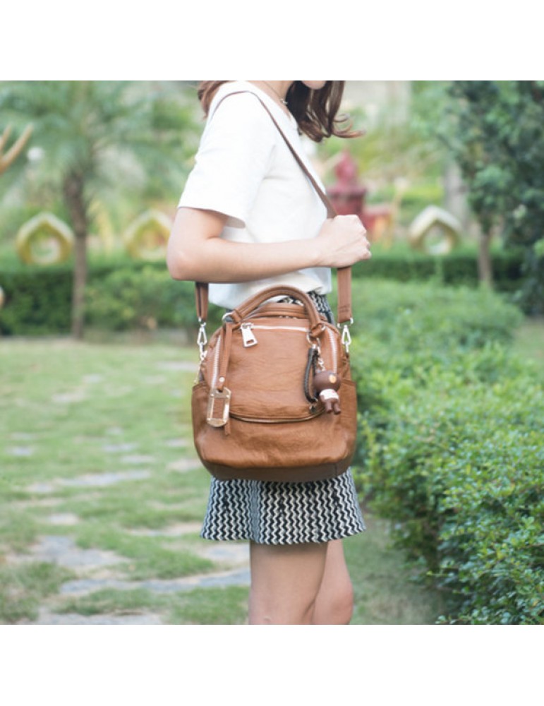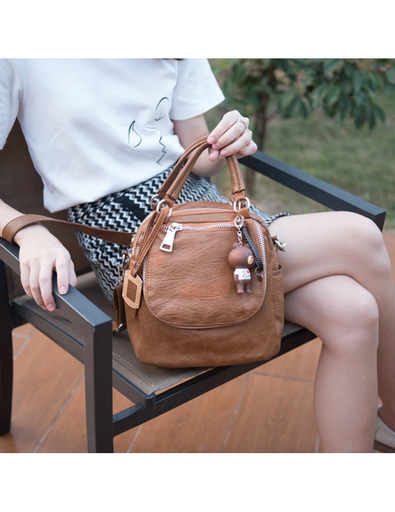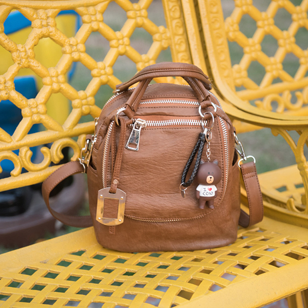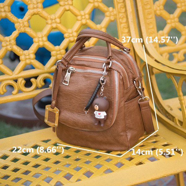 Women Solid Double Layer Multi-function Backpack Casual Crossbody Bag