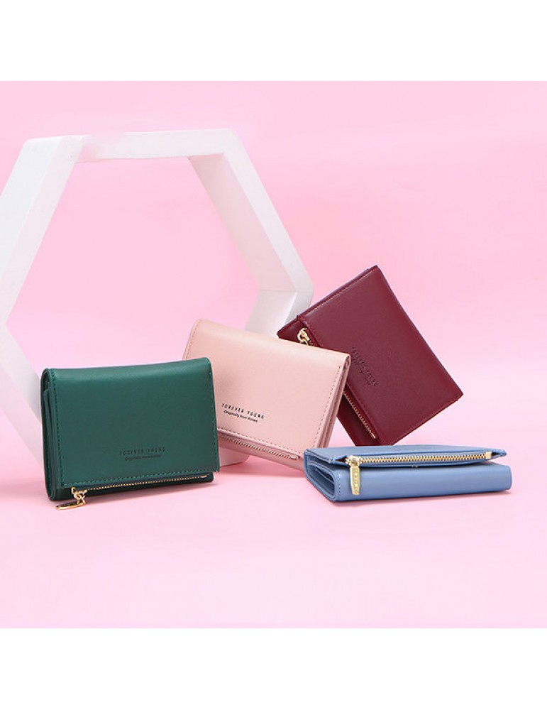 Women Bifold Faux Leather Short Wallet 6 Card Slot Casual Coin Purse