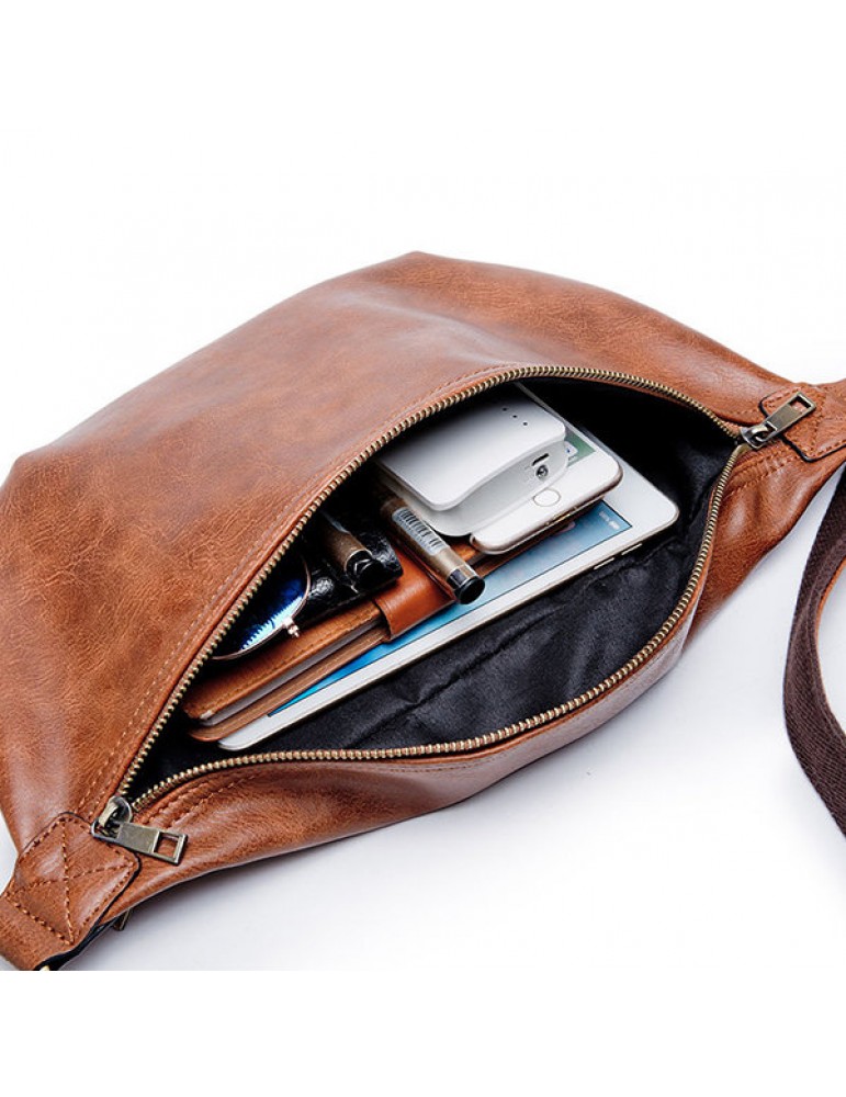 Vintage PU Leather Casual Sling Bag Waist Bag Crossbody Bag For Men