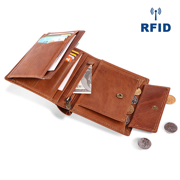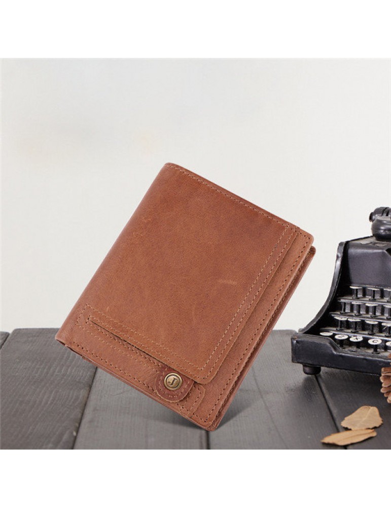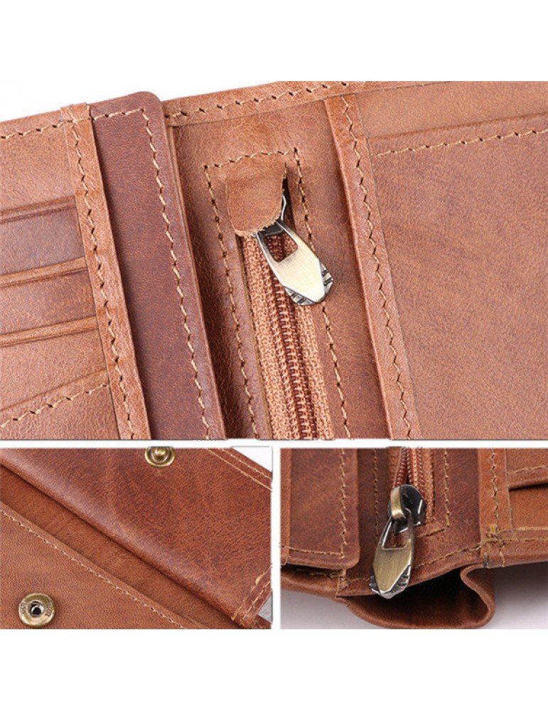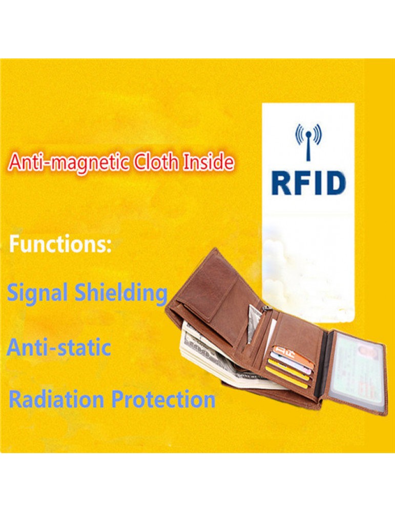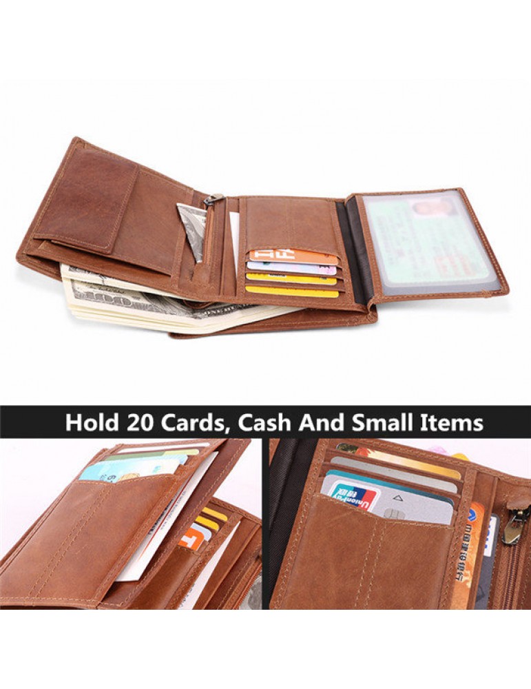 Men Genuine Leather RFID Anti-magnetic Vintage Outdoor Casual 20 Card Slots Wallet