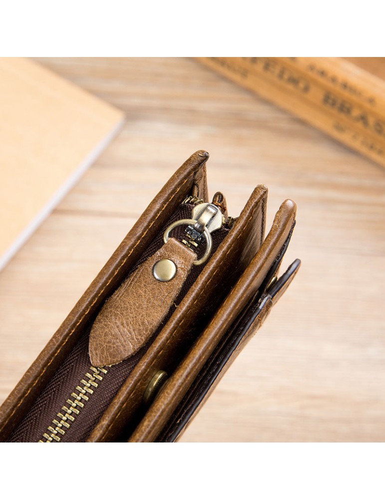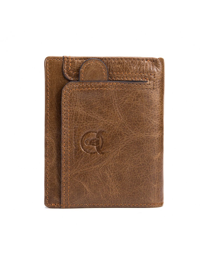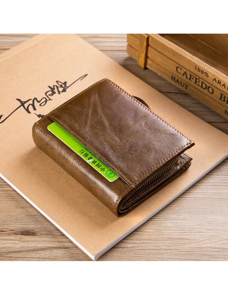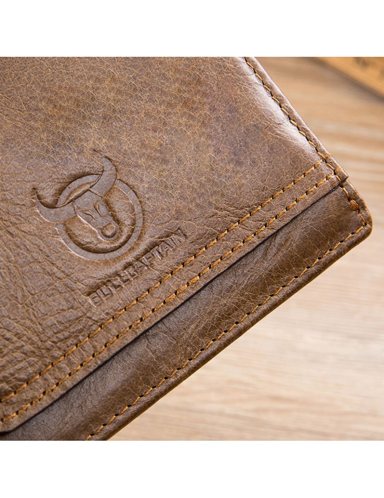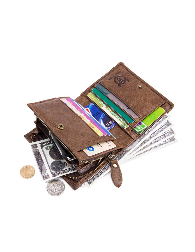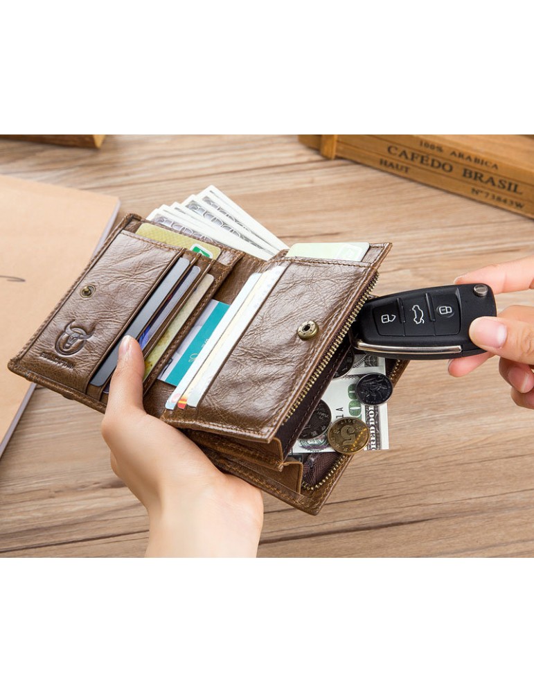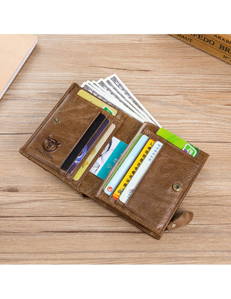 Bullcaptain Vintage Cowhide Short Wallets Zipper Card Holder Coin Purse