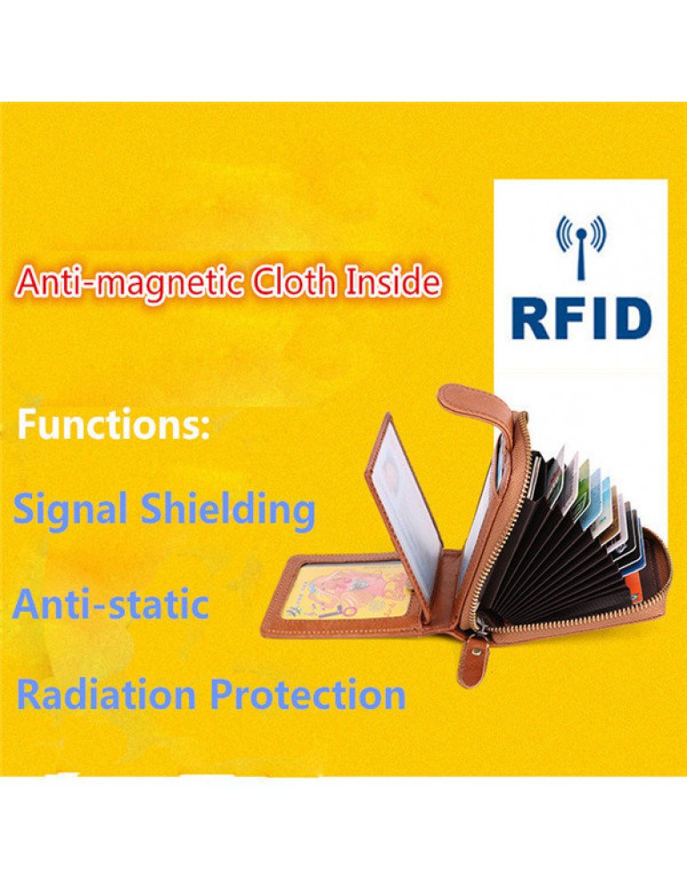 Men Genuine Leather RFID Anti-magnetic Vintage Casual 15 Card Slots Wallet