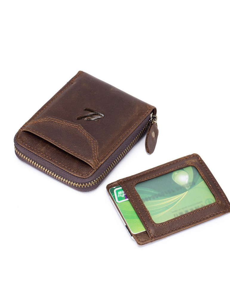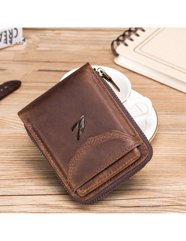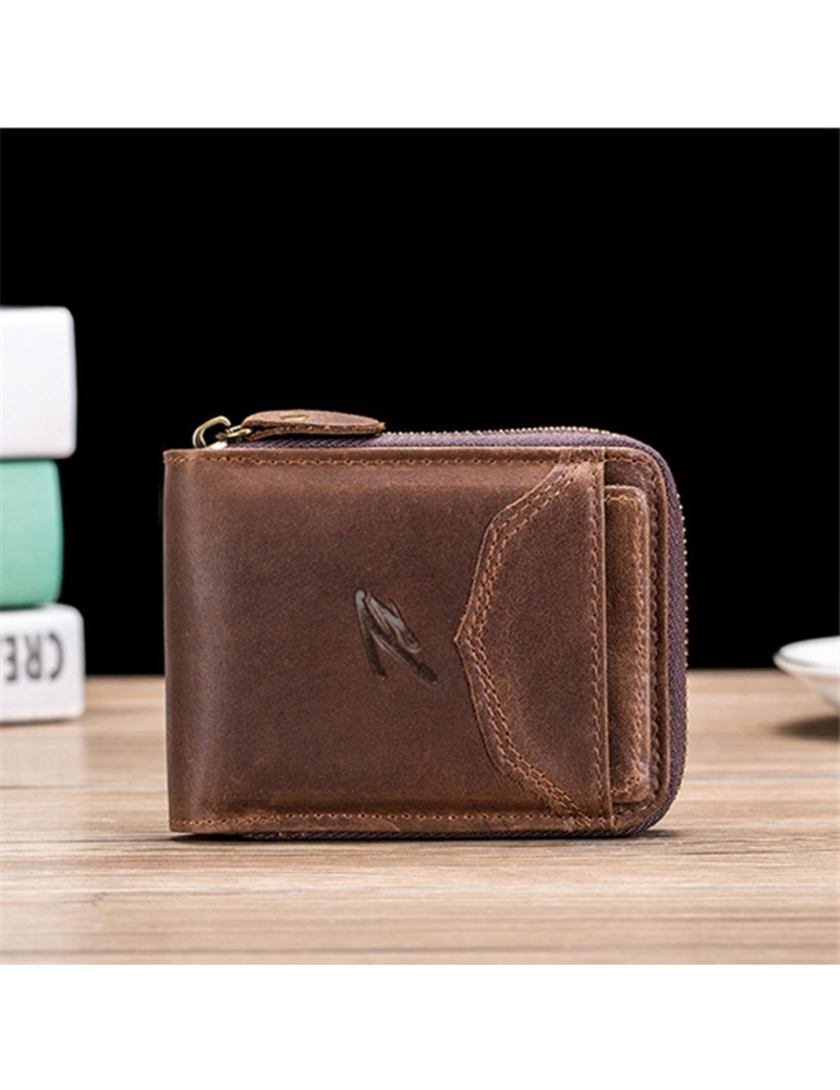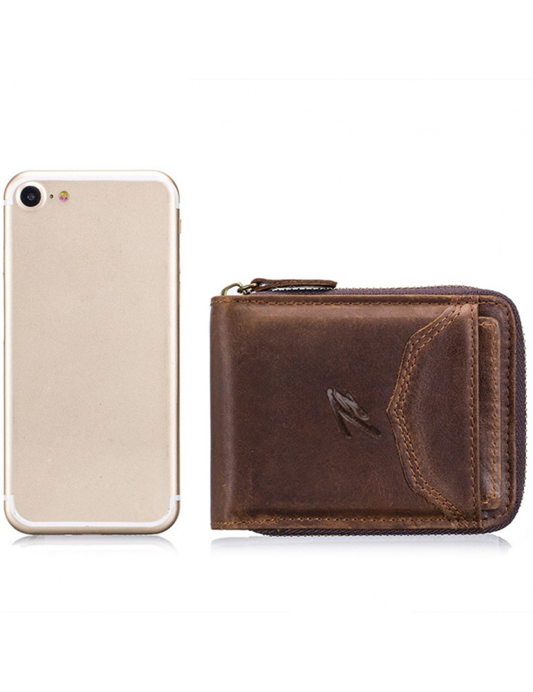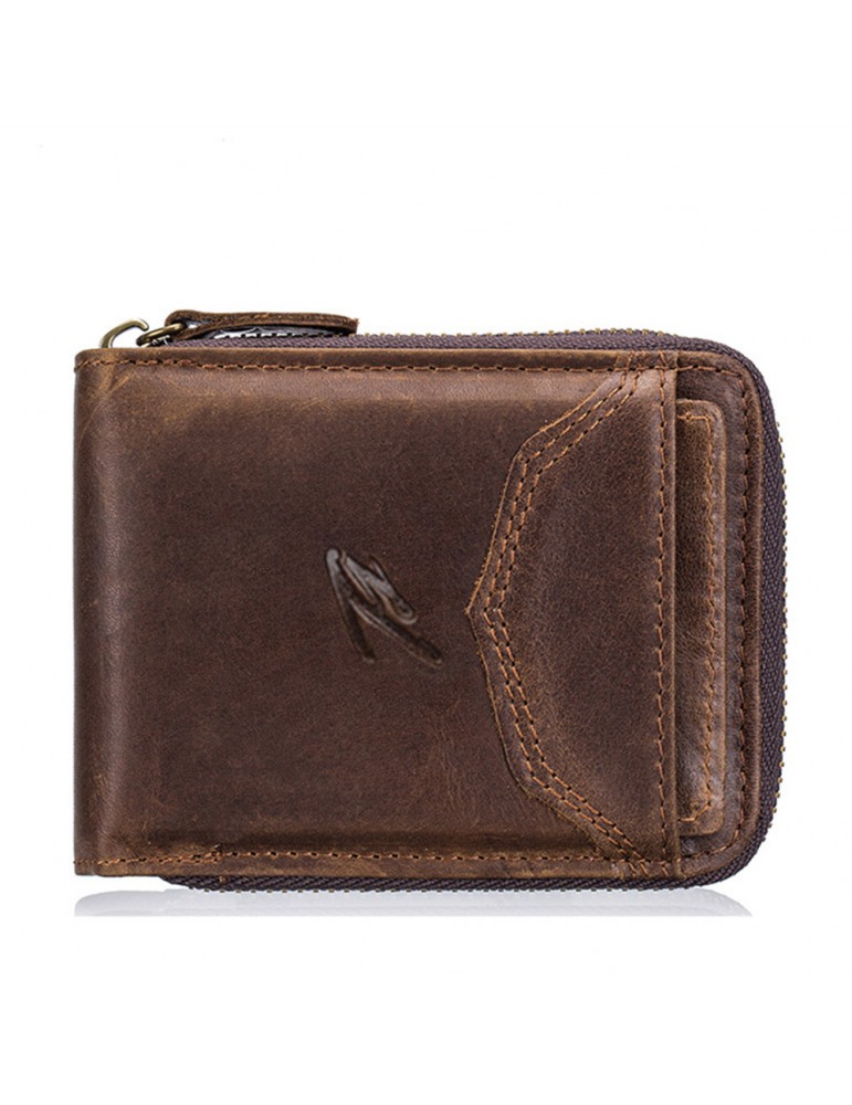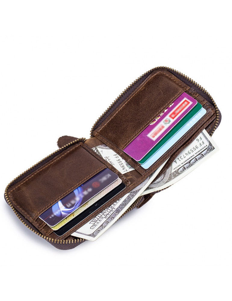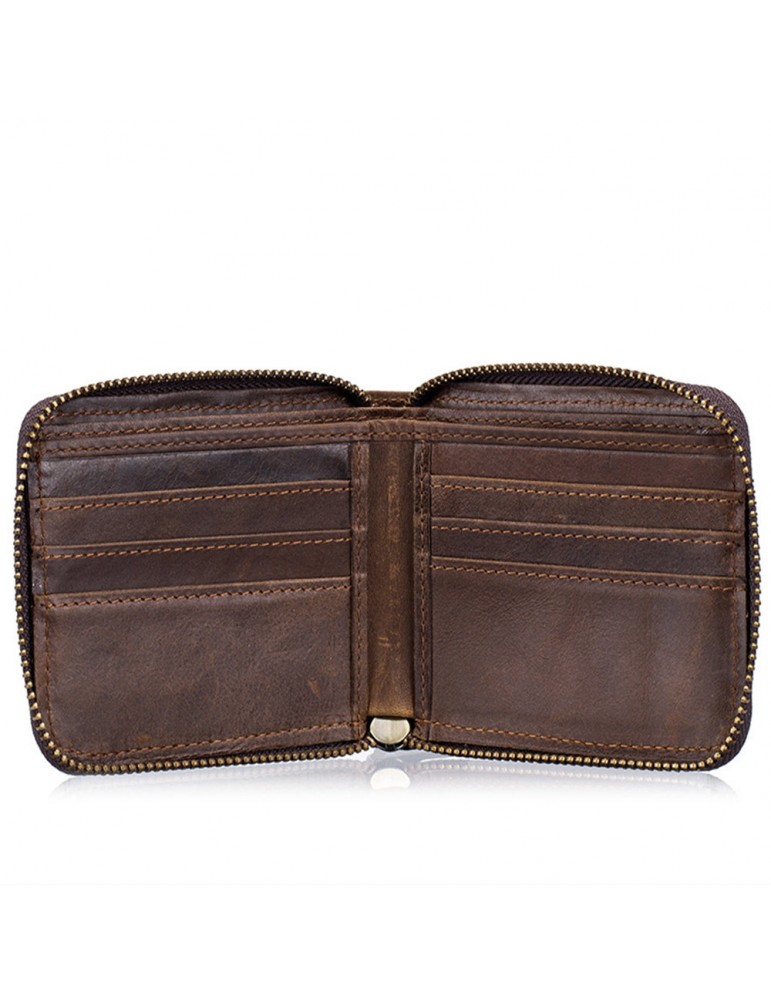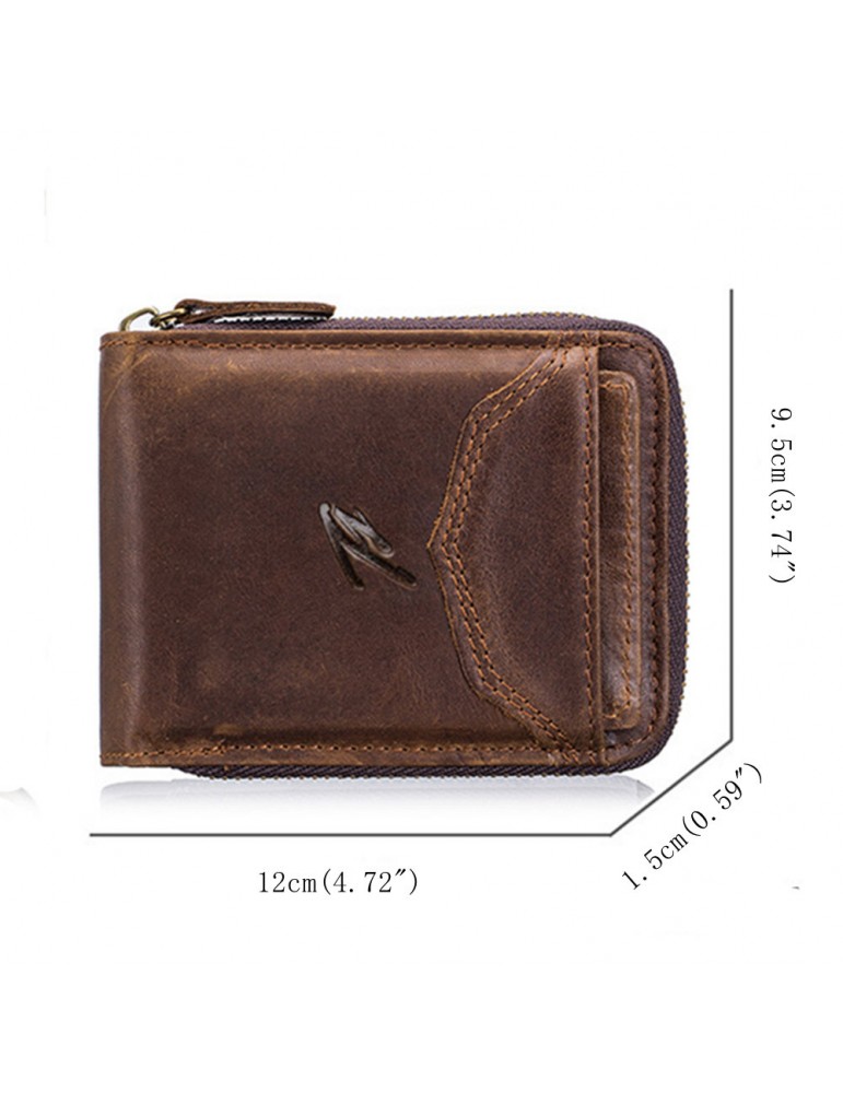 Genuine Leather Retro Multifunction Wallet Casual Coin Zipper Bags For Men