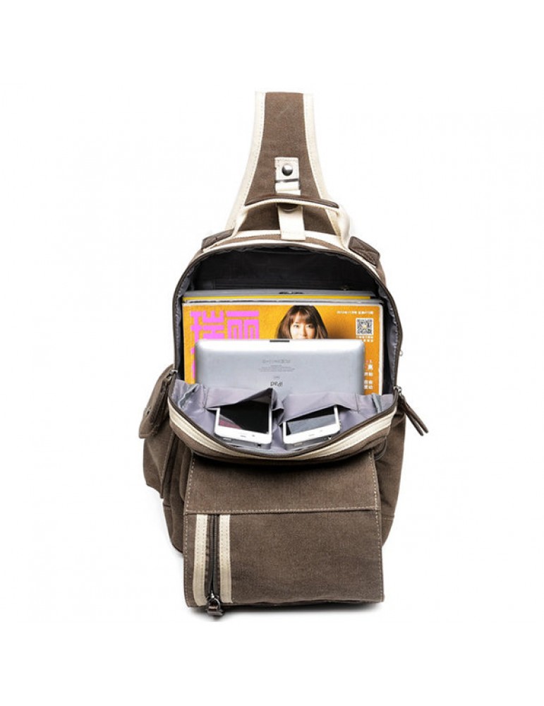 Men Canvas Multi-pocket Laptop Bag Casual Shoulder Bags Chest Bags