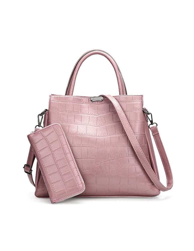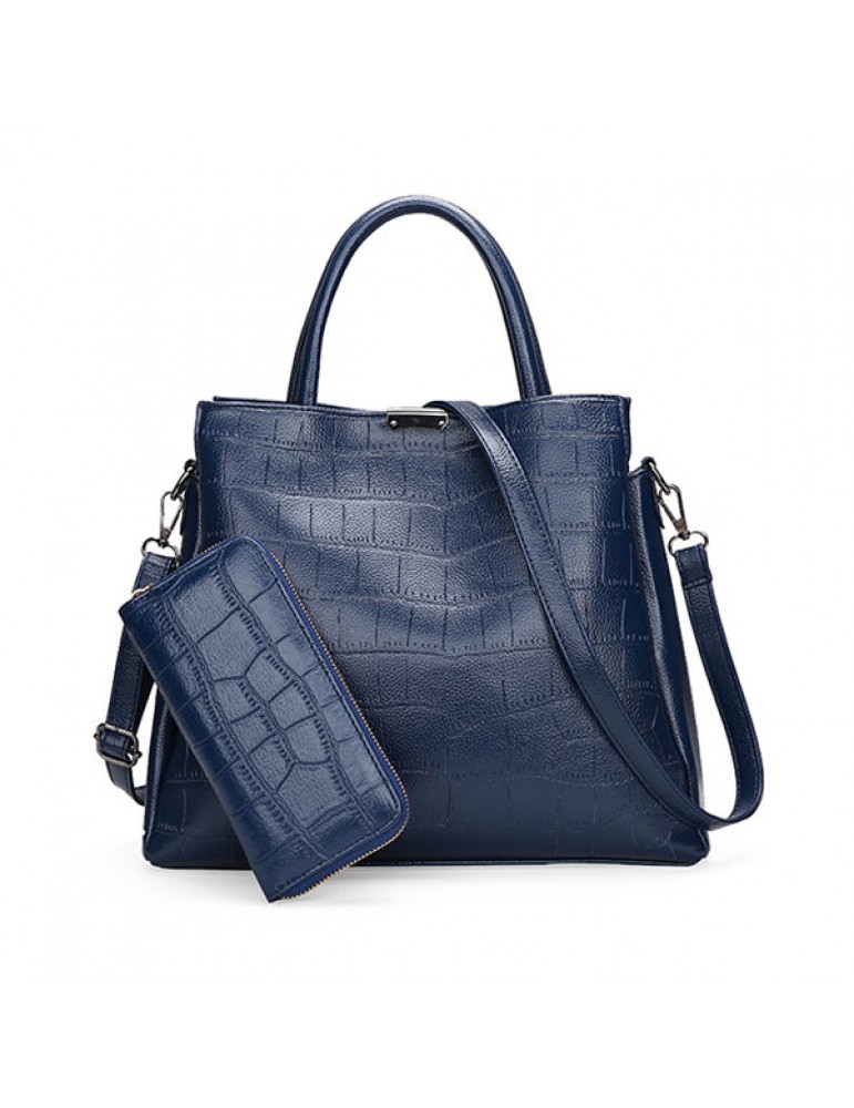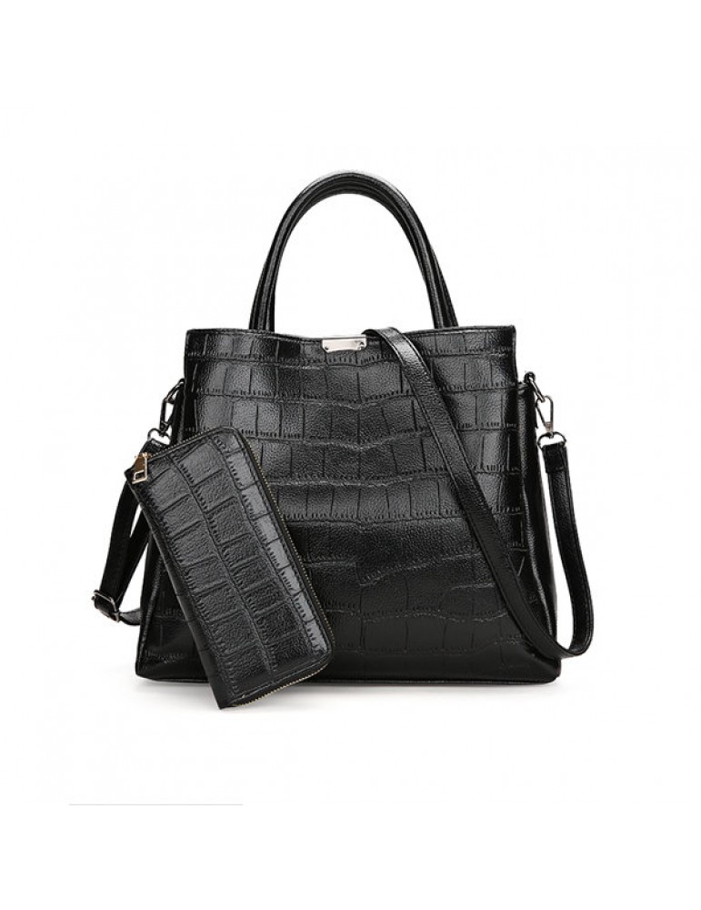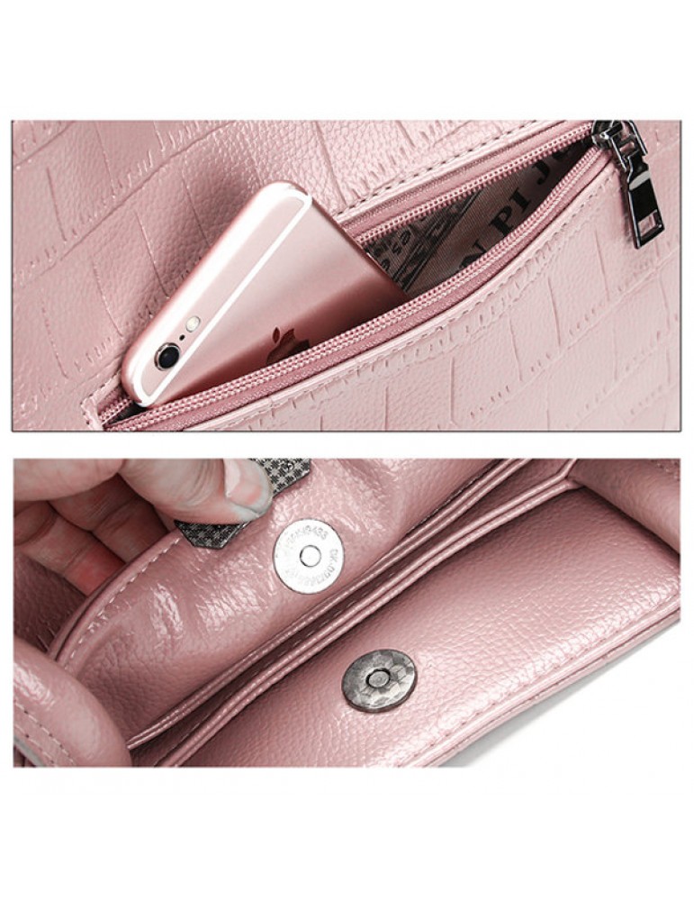 Women 2PCS PU Leather Crocodile Portable Handbag Evening Bag