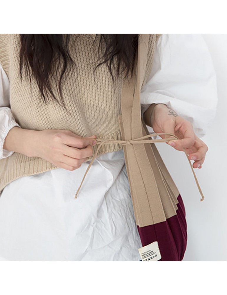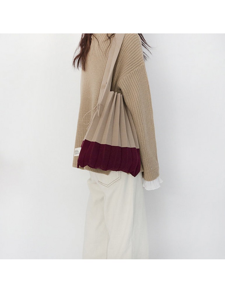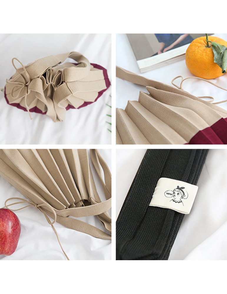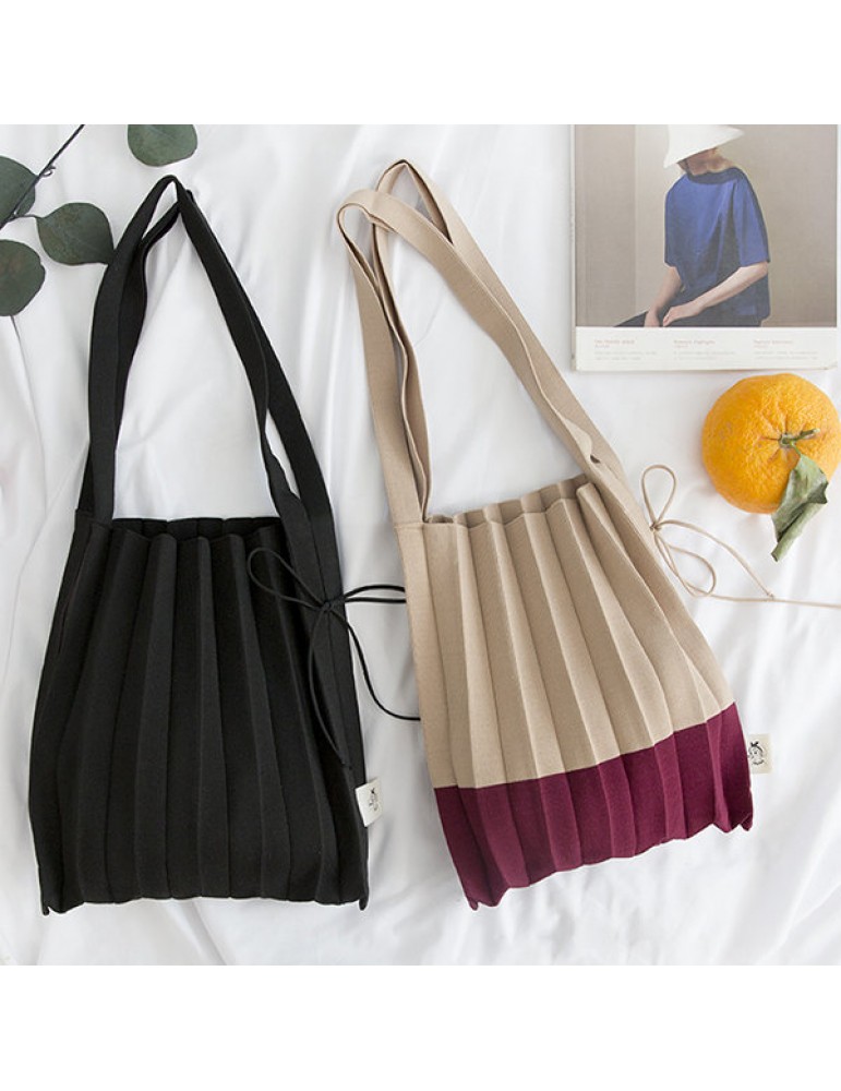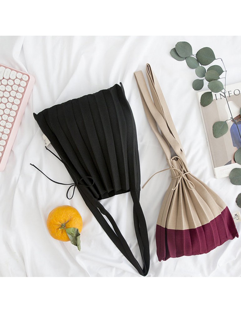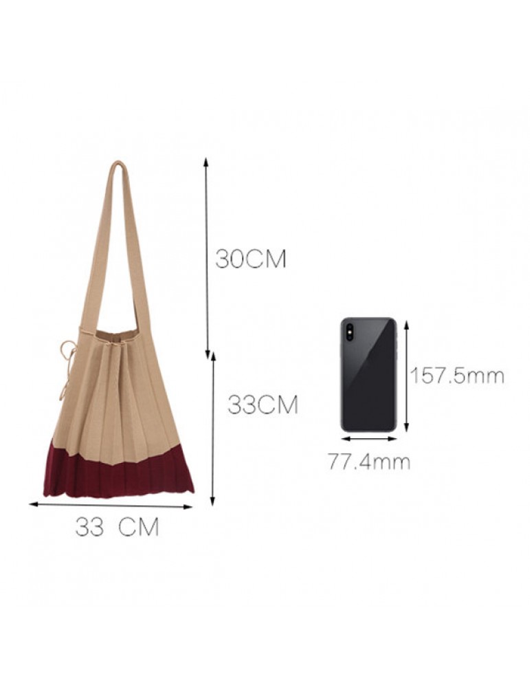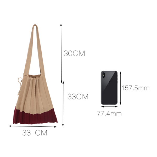 Women Organ Fold Handbag Patchwork Knitting Shoulder Bag
